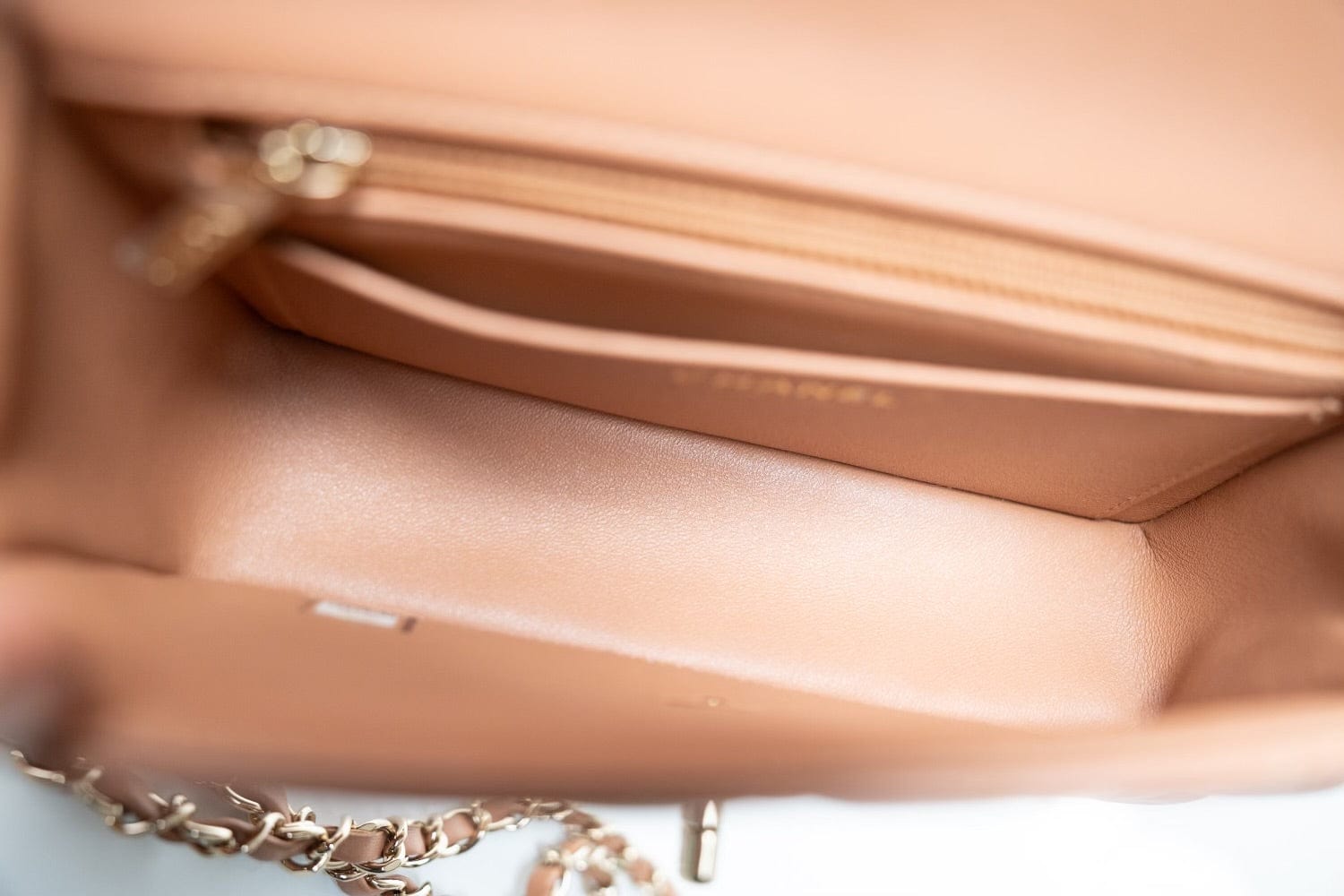 21P Light Caramel Lambskin Quilted Mini Rectangular Single Flap LGHW