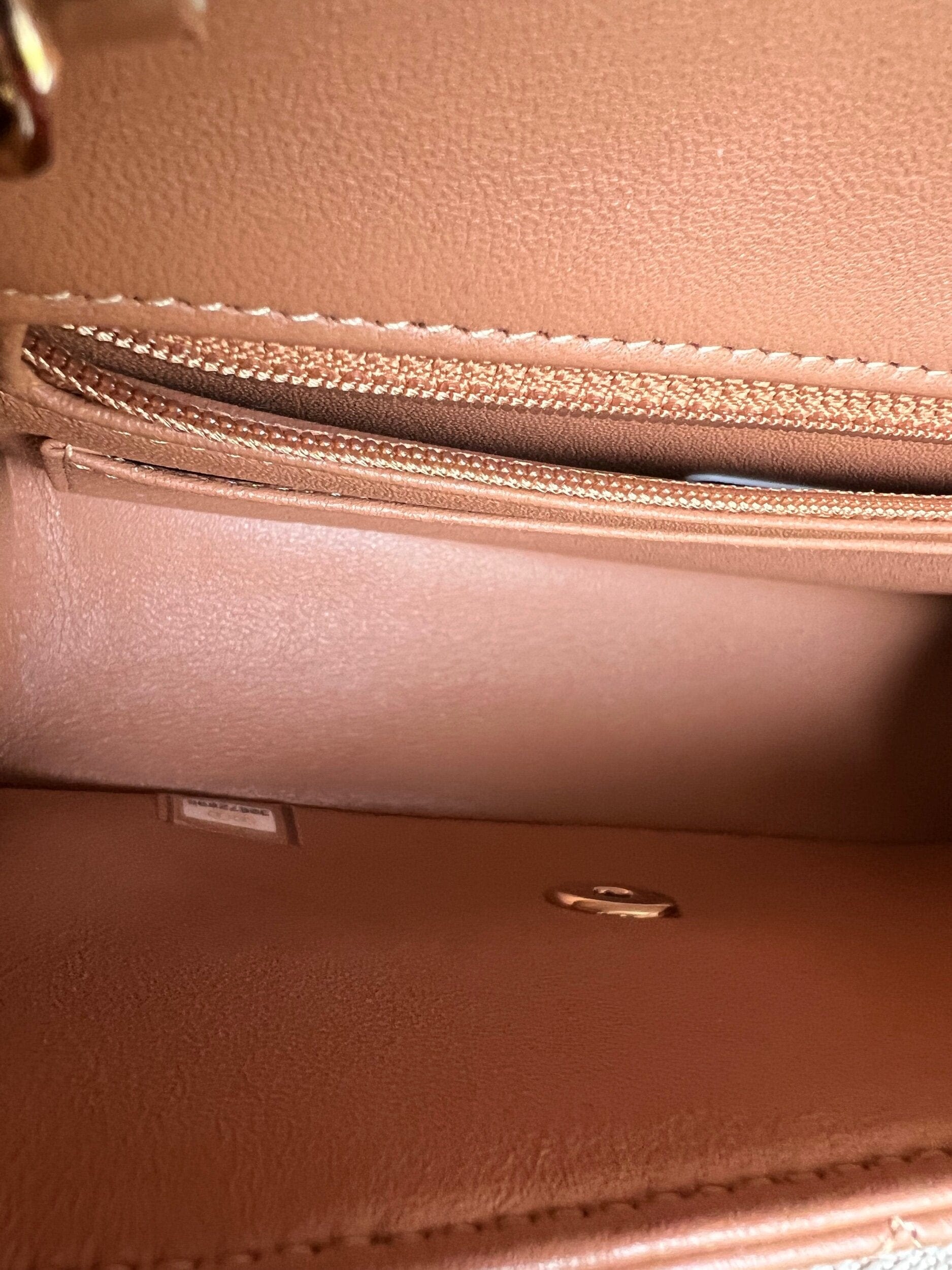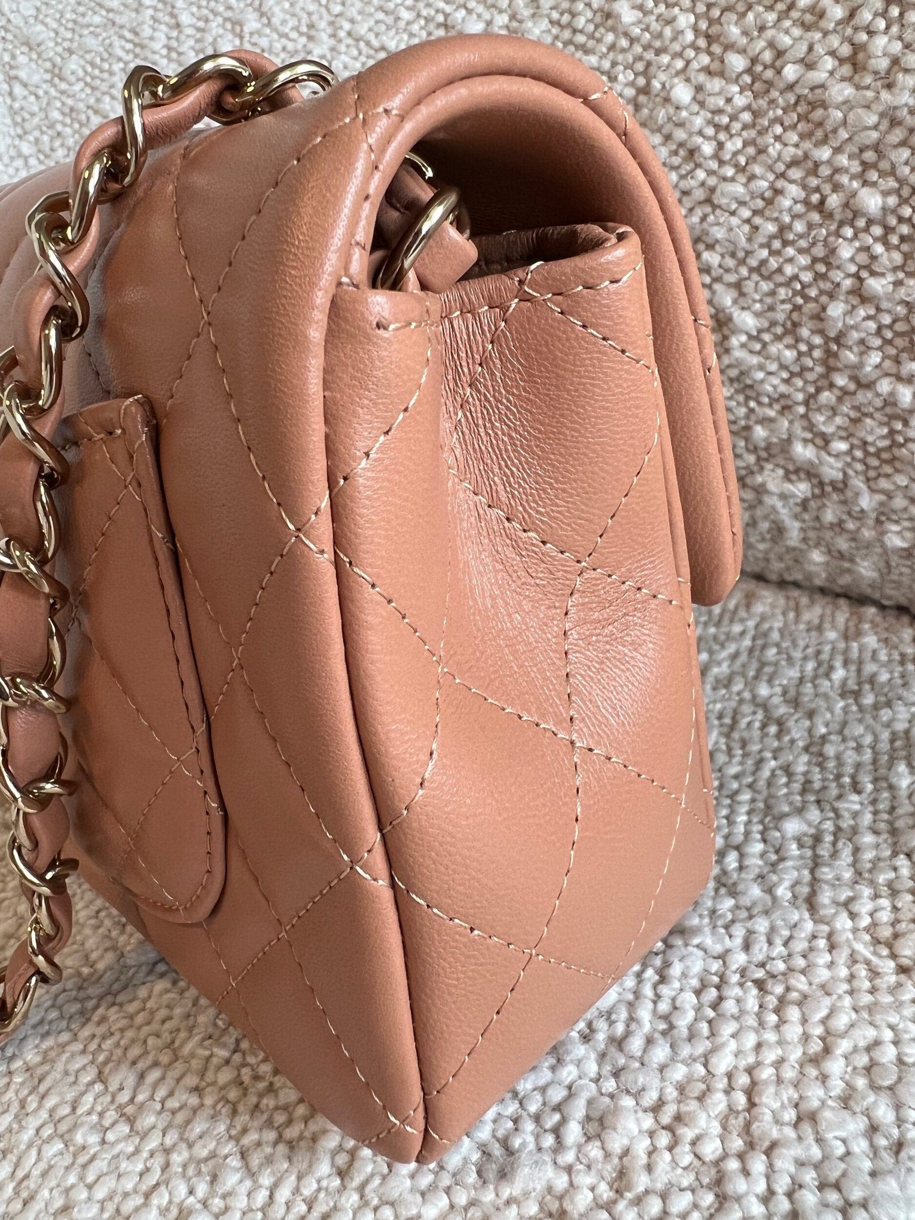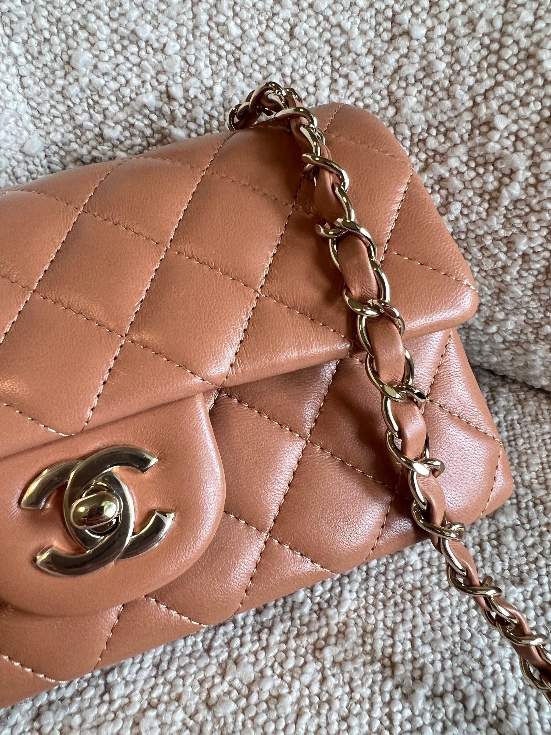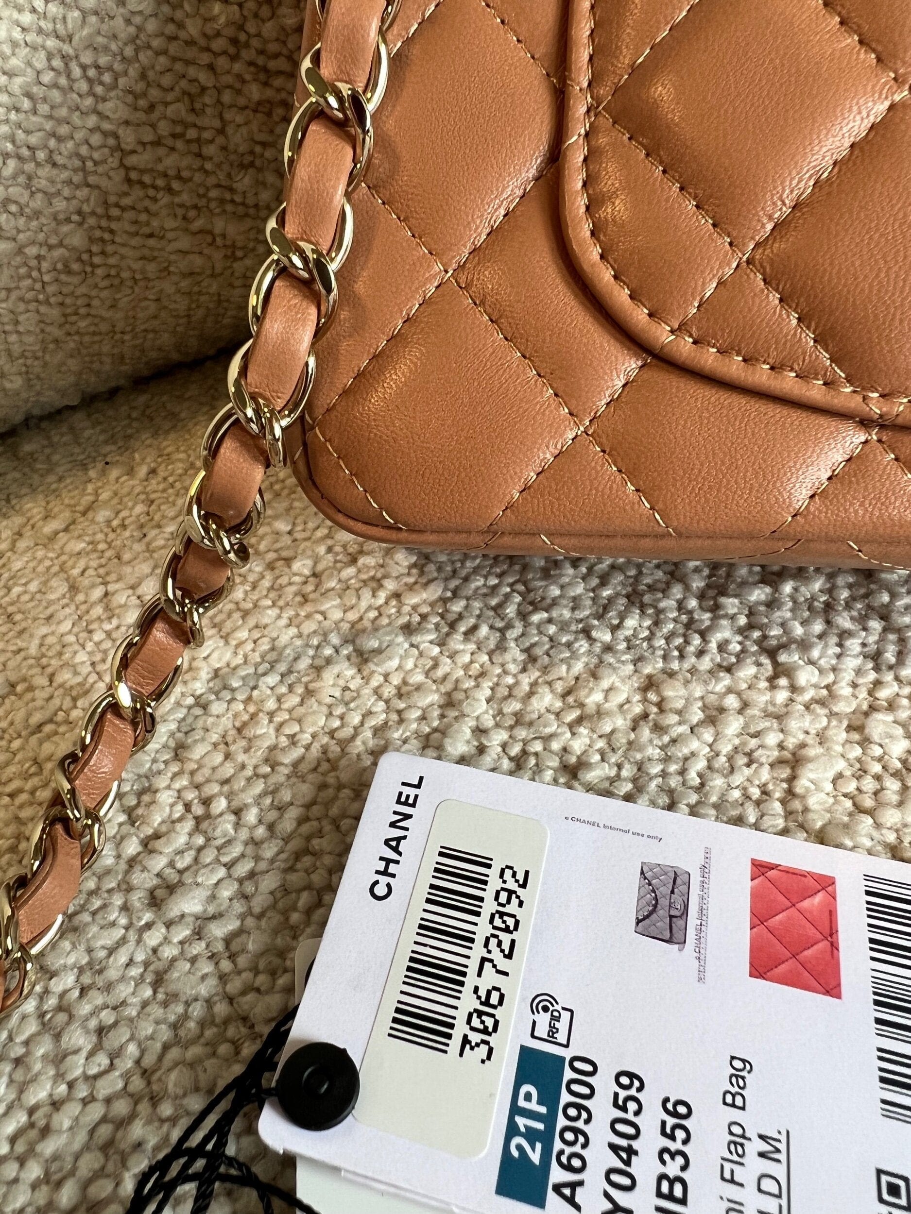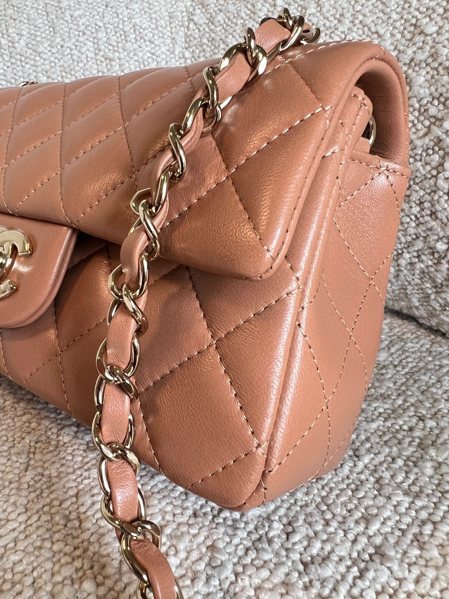 21P Mini Rectangular Caramel Lambskin Quilted Flap LGHW