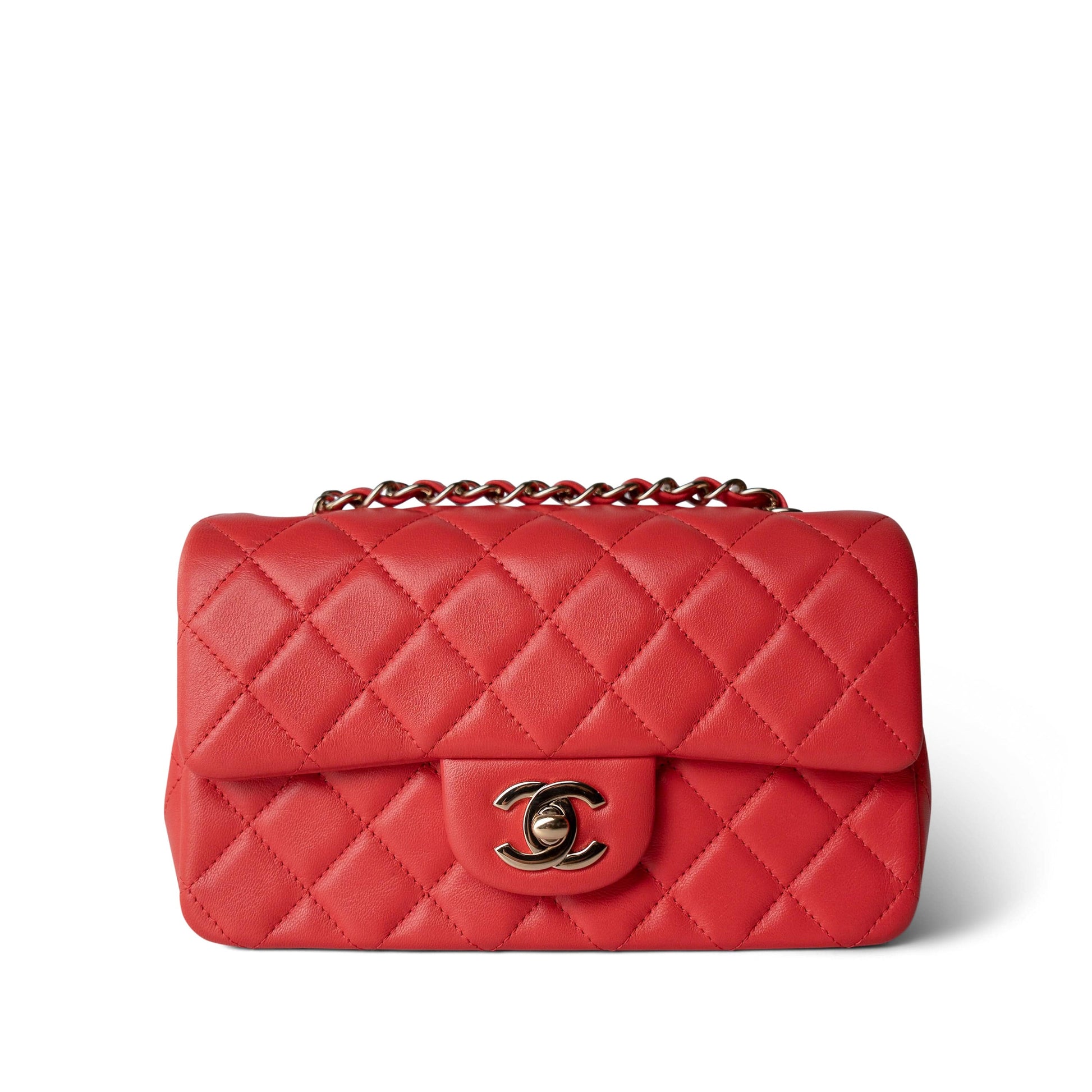 21P Red Lambskin Quilted Mini Rectangular Single Flap