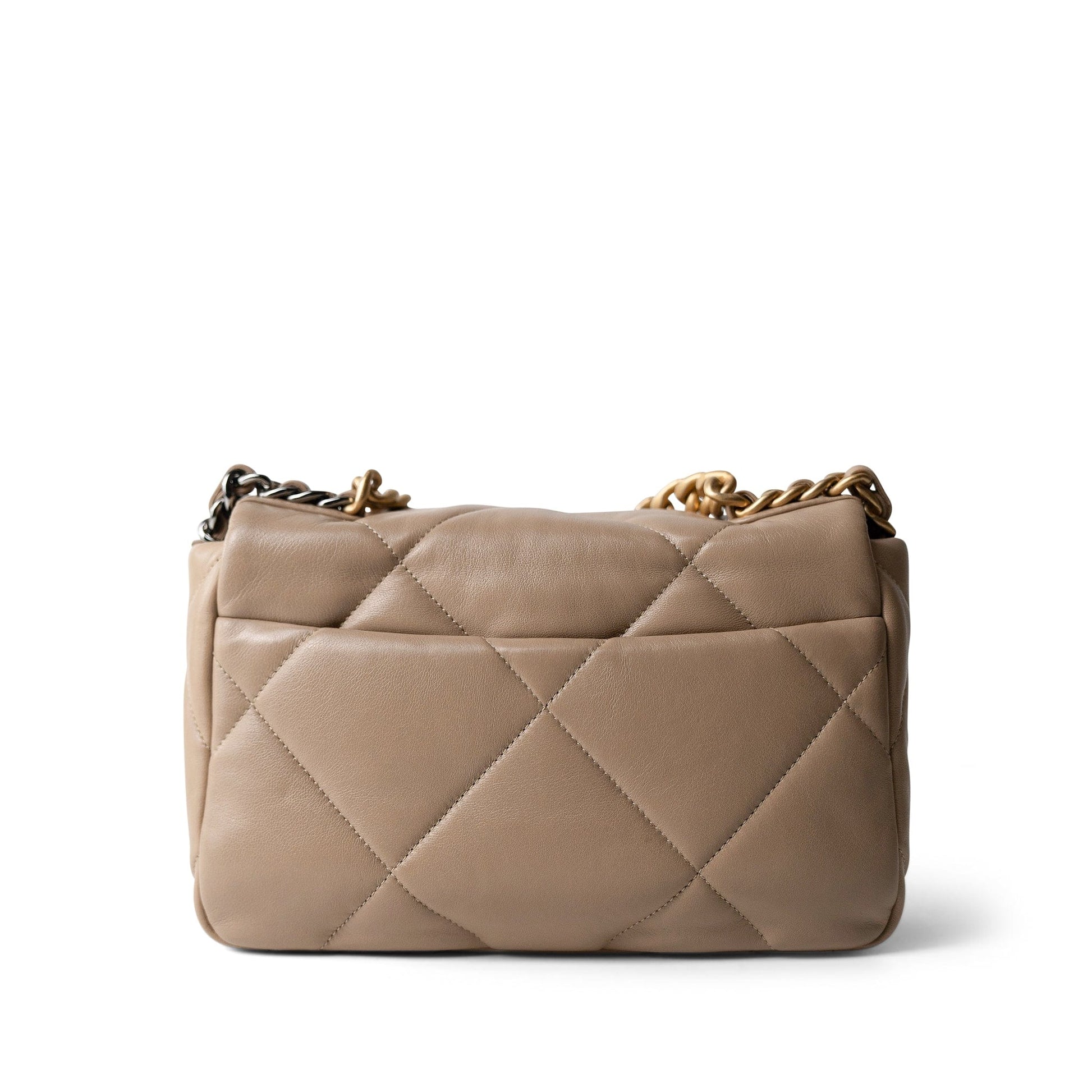 21S Dark Beige Lambskin Quilted 19 Flap Small Mixed Hardware
