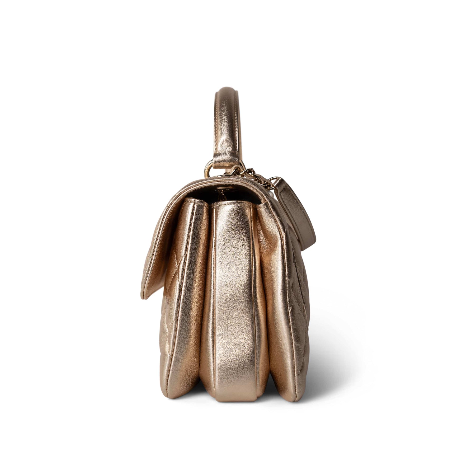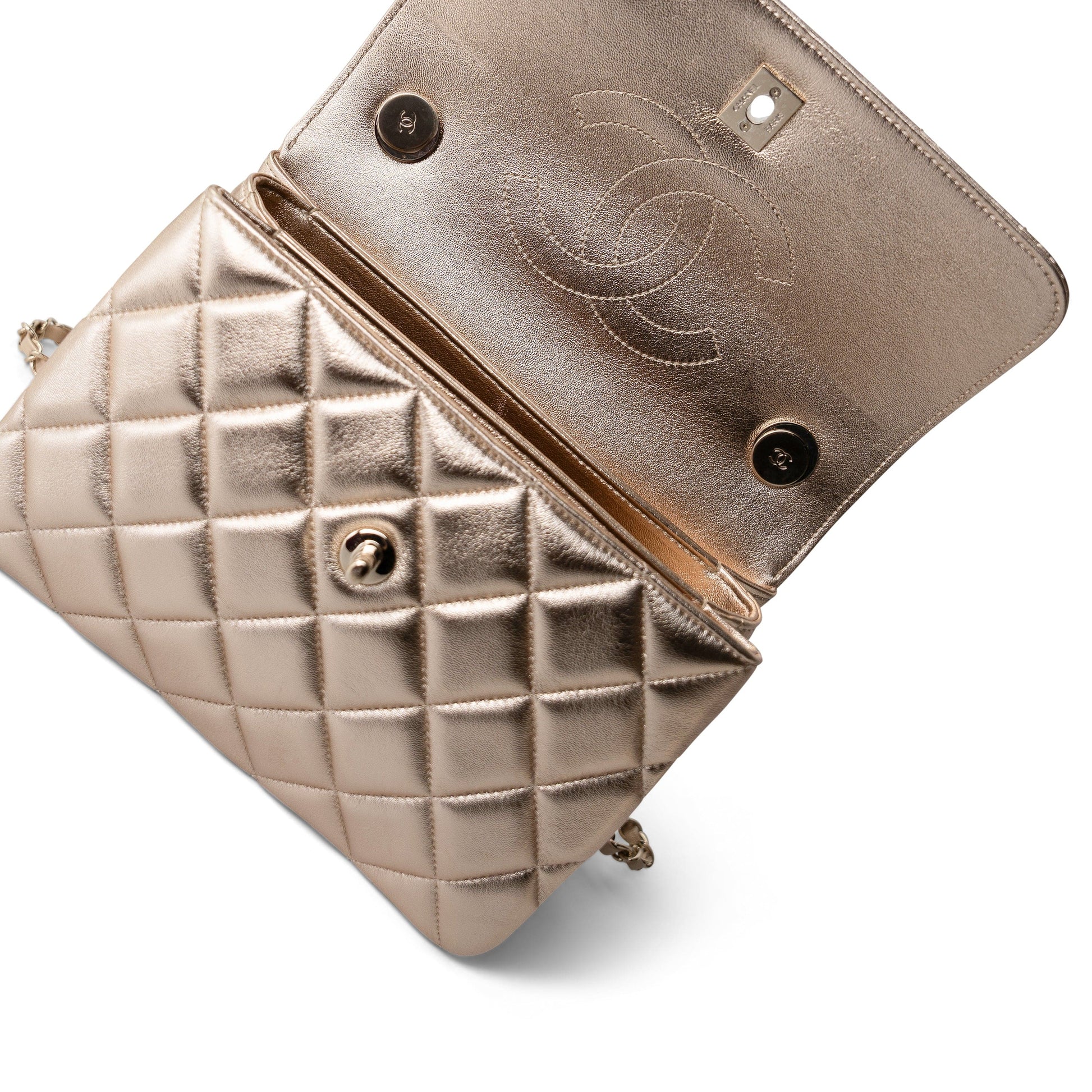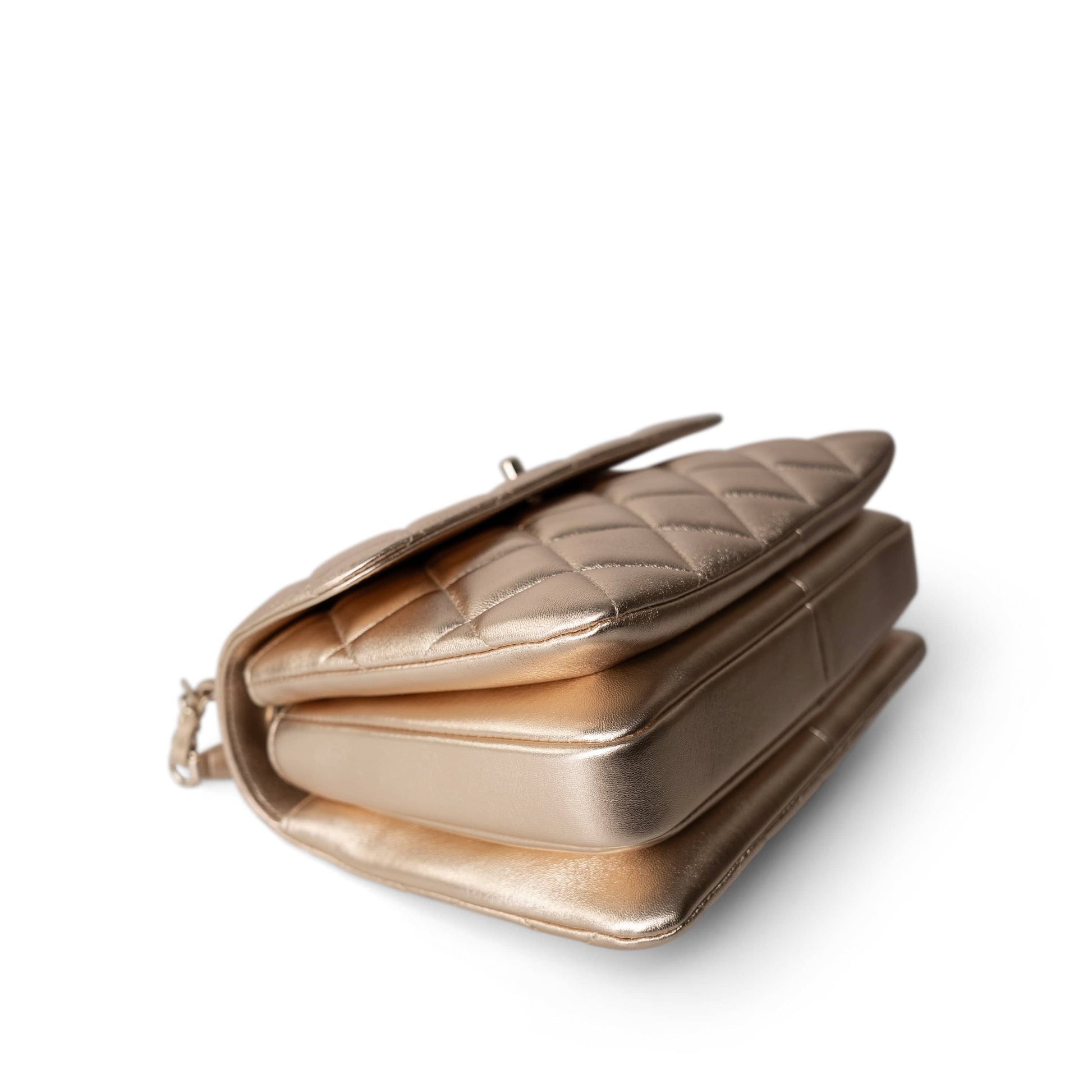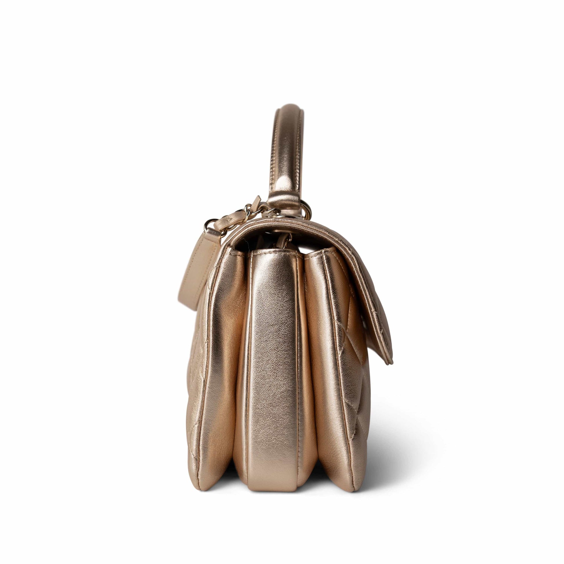 21S Gold Metallic Lambskin Quilted Trendy CC Small Light Gold Hardware