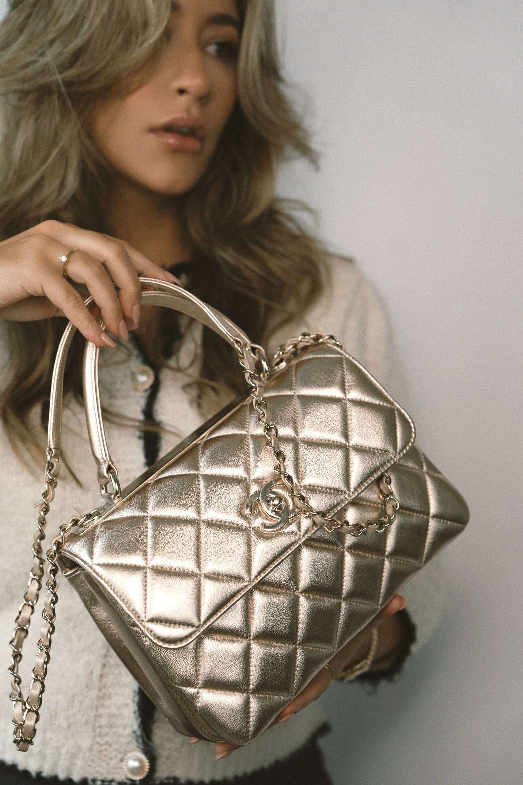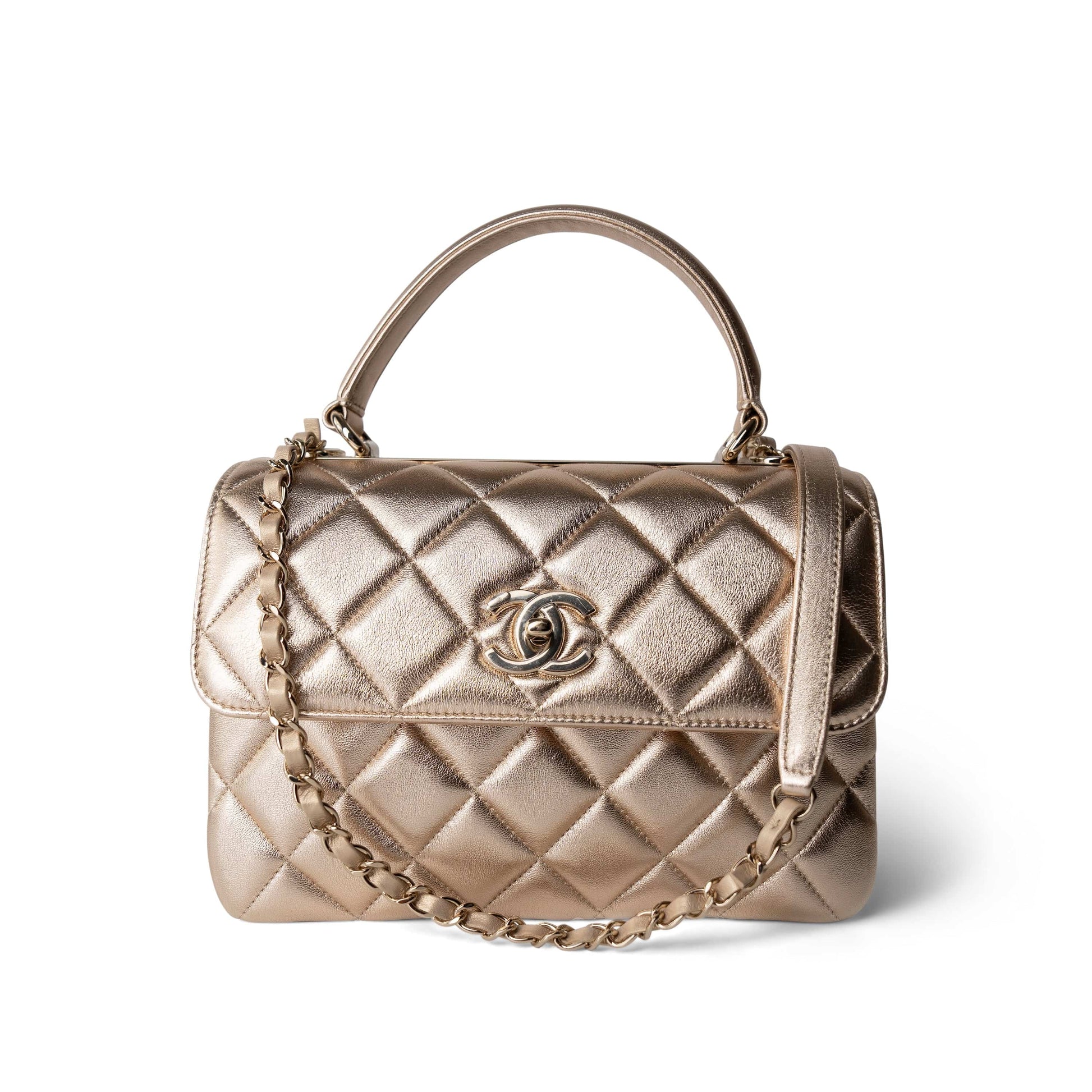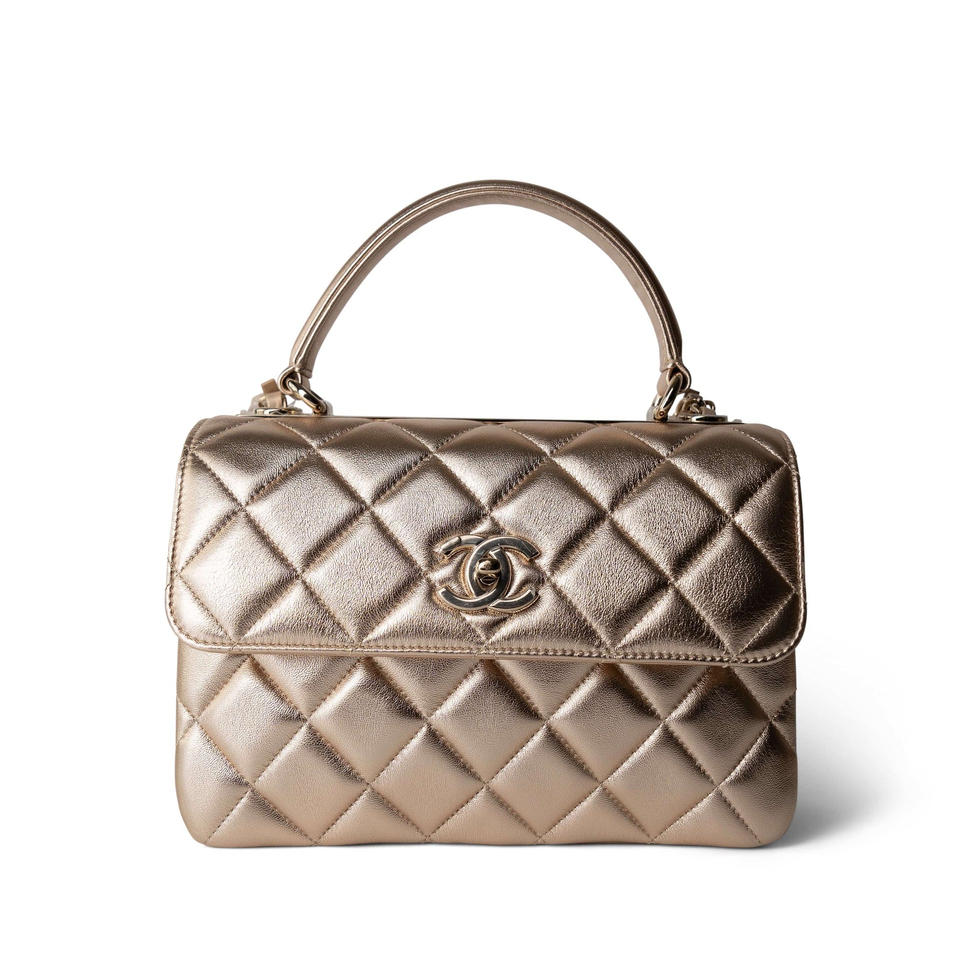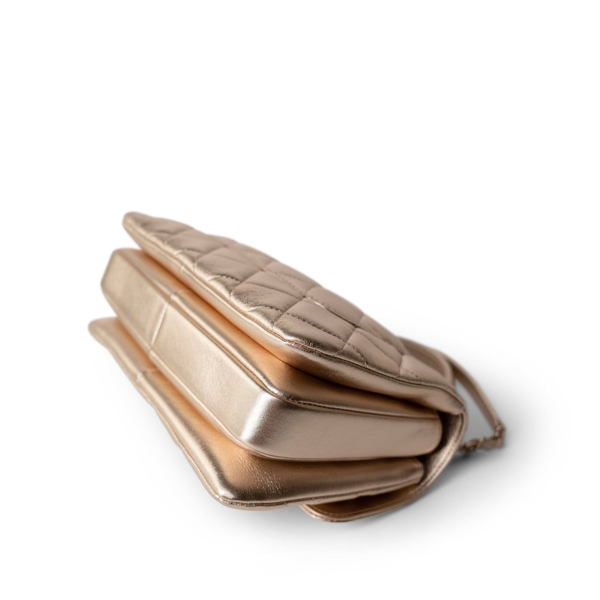21S Gold Metallic Lambskin Quilted Trendy CC Small Light Gold Hardware