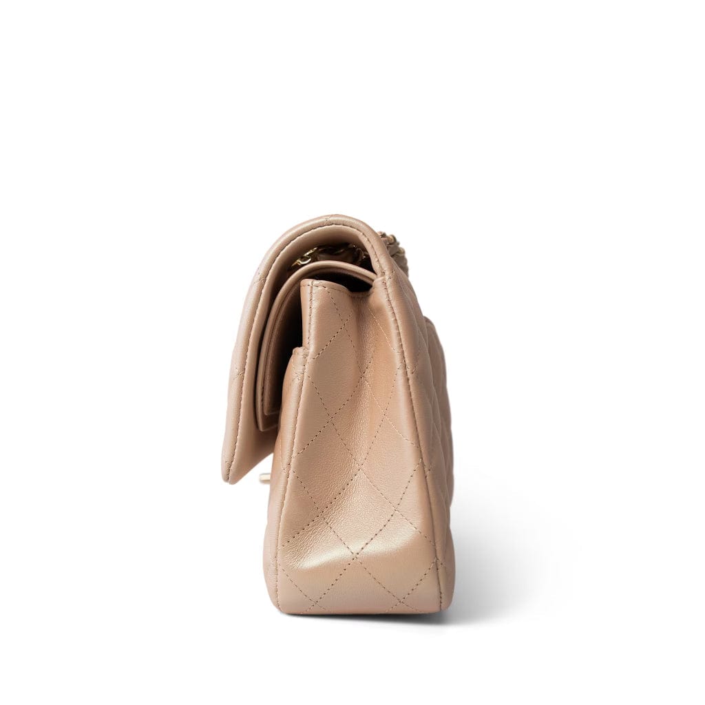 21S Pearly Beige Calfskin Quilted Classic Double Flap Light Gold Hardware