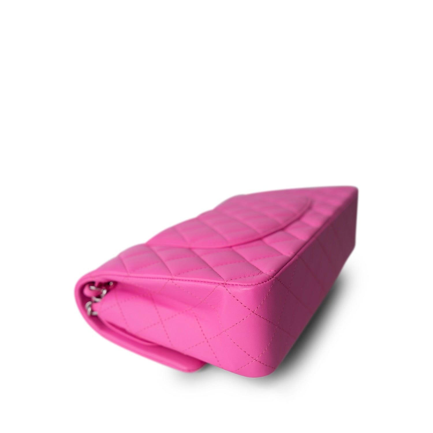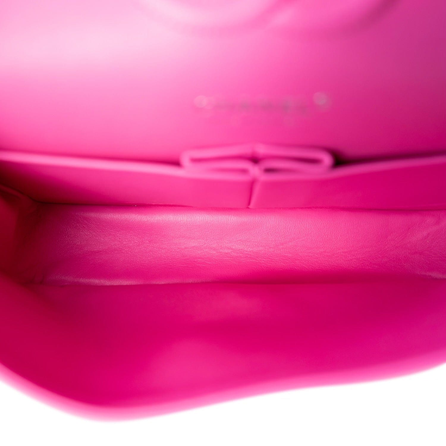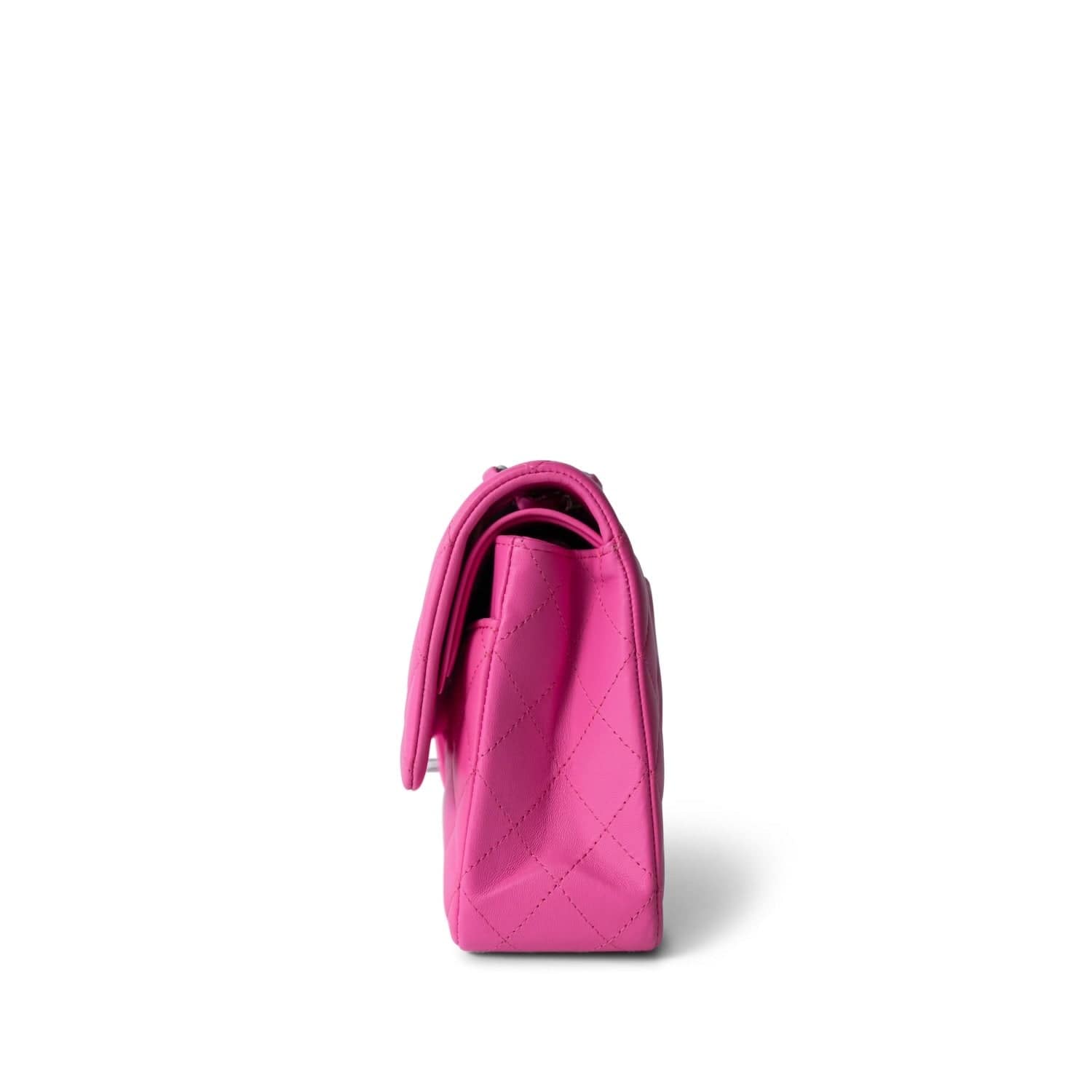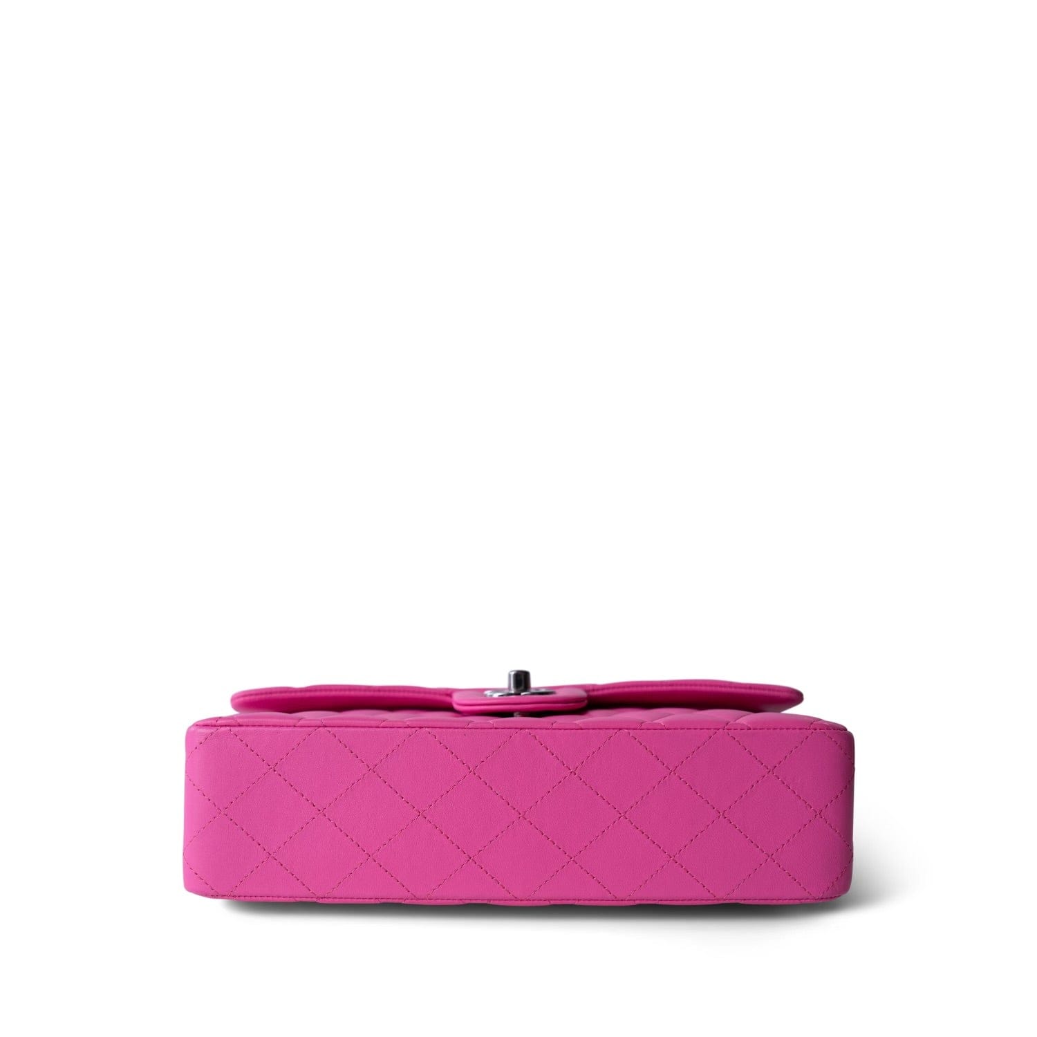 21S Neon Pink Lambskin Quilted Classic Flap Medium Silver Hardware