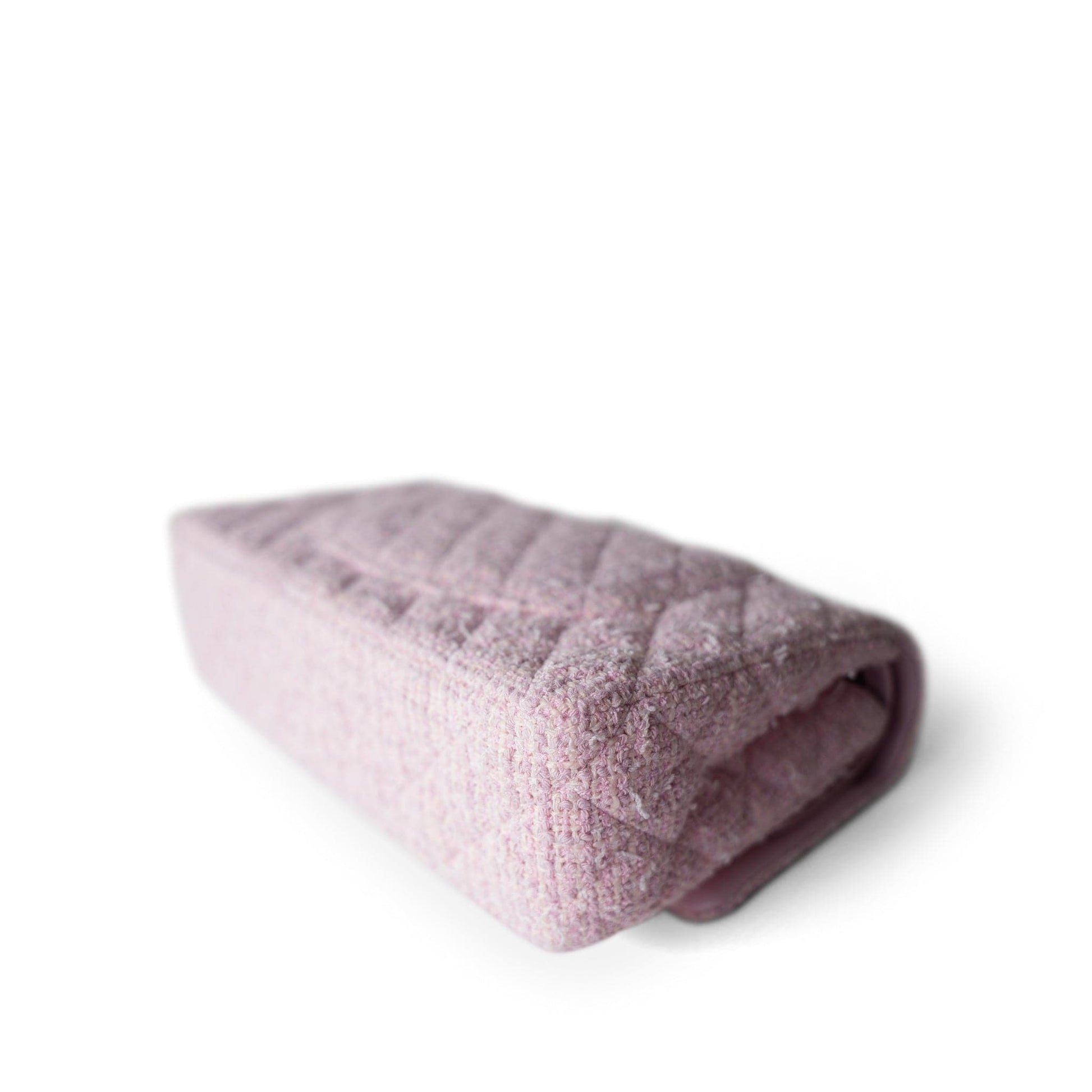 21S Pink Tweed Quilted Classic Flap Medium Light Gold Hardware
