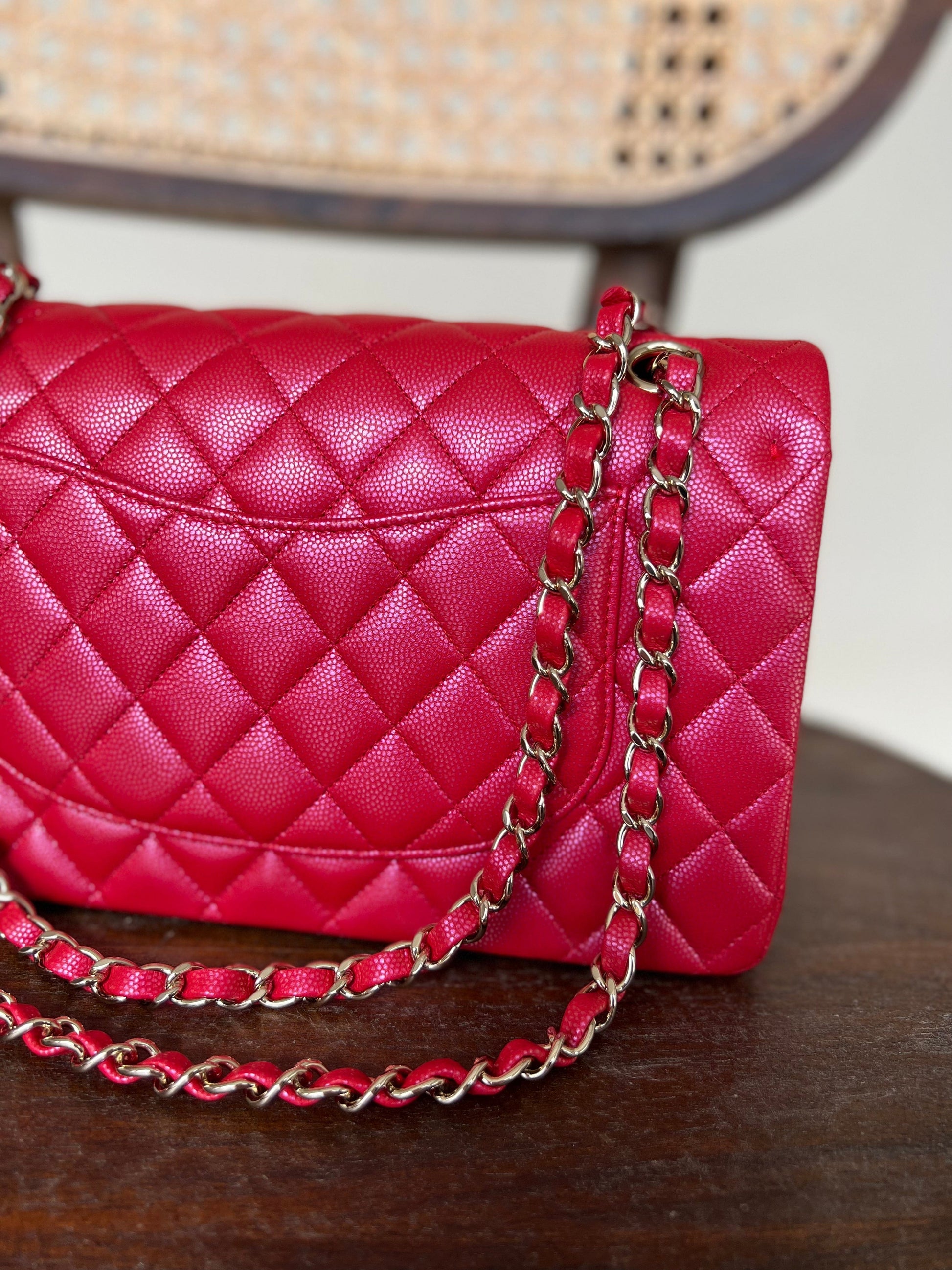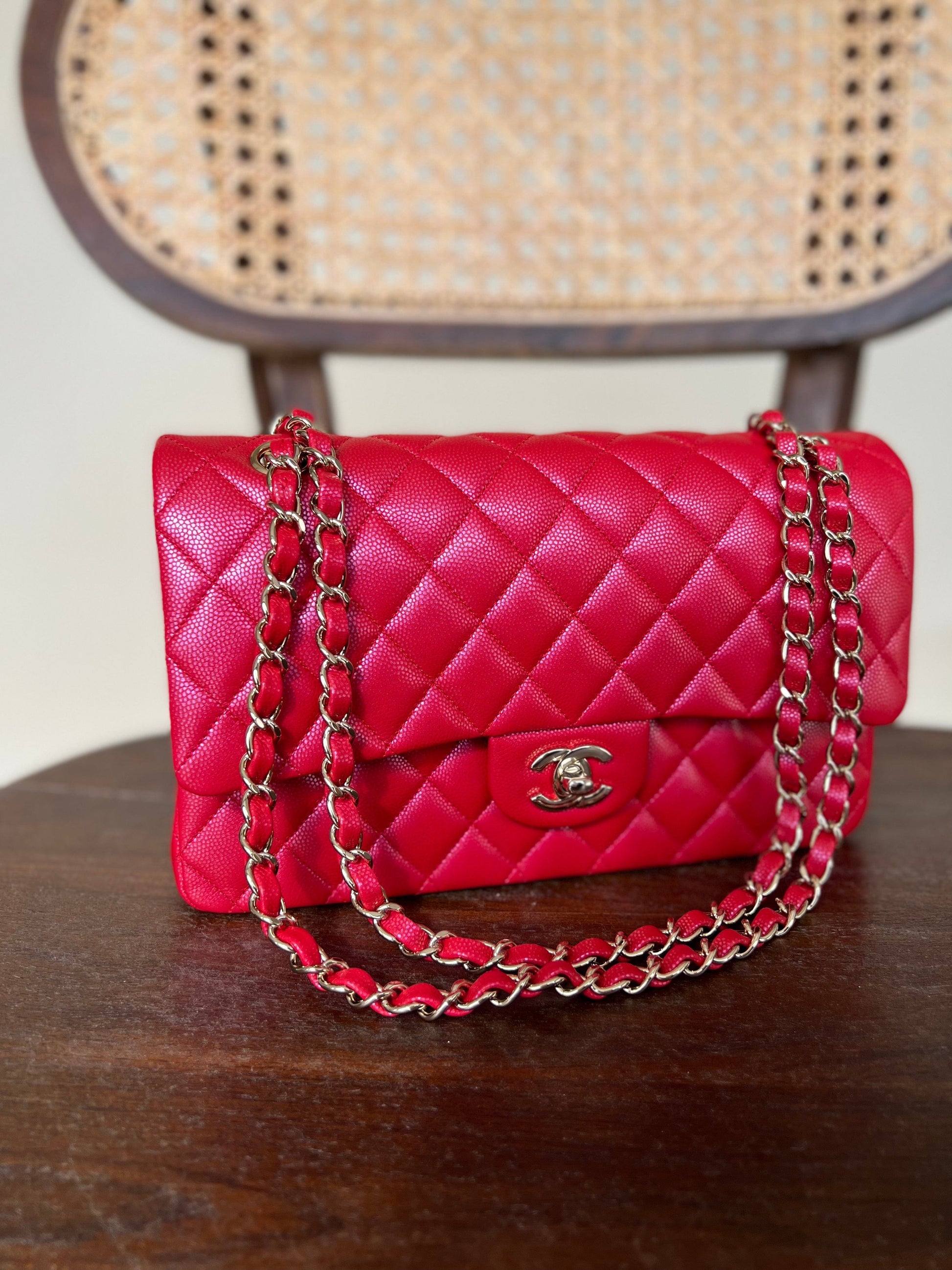 21S Red Iridescent Caviar Quilted Classic Flap Medium