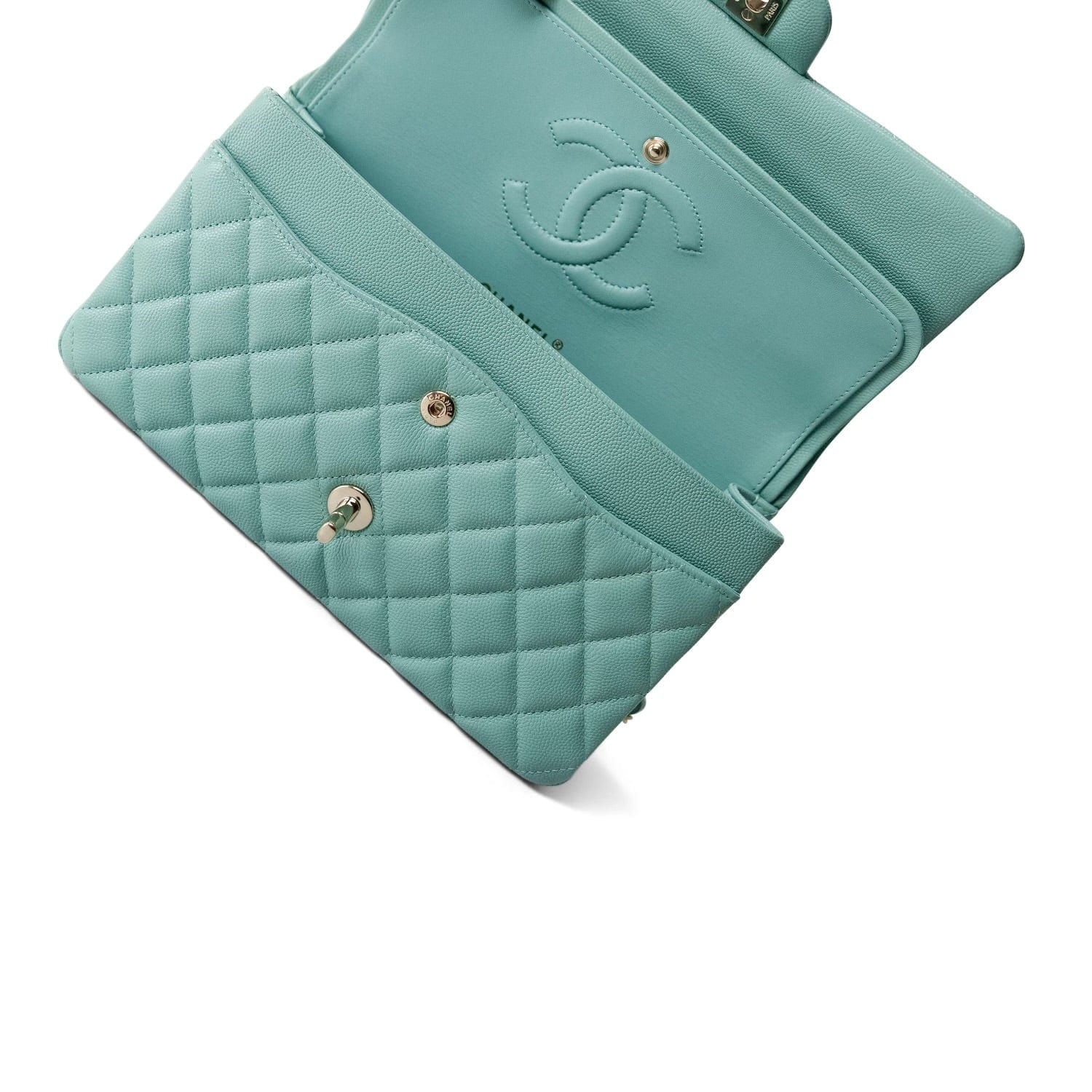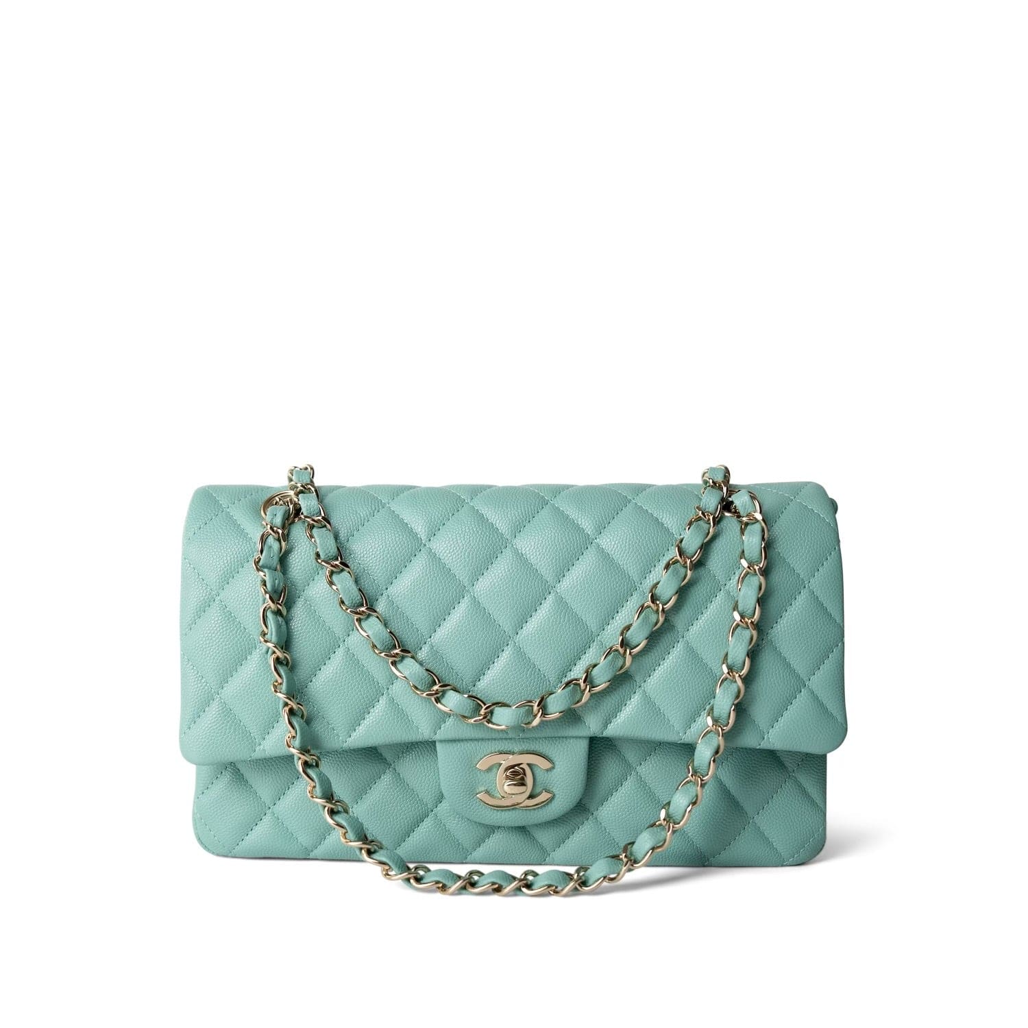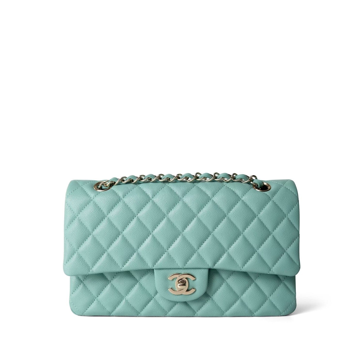 21S Tiffany Green Caviar Quilted Medium Classic Flap LGHW