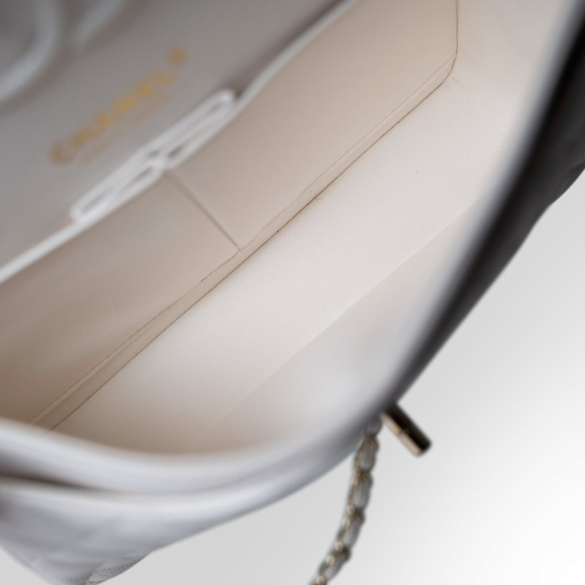 21S White Caviar Quilted Classic Flap Small Light Gold Hardware
