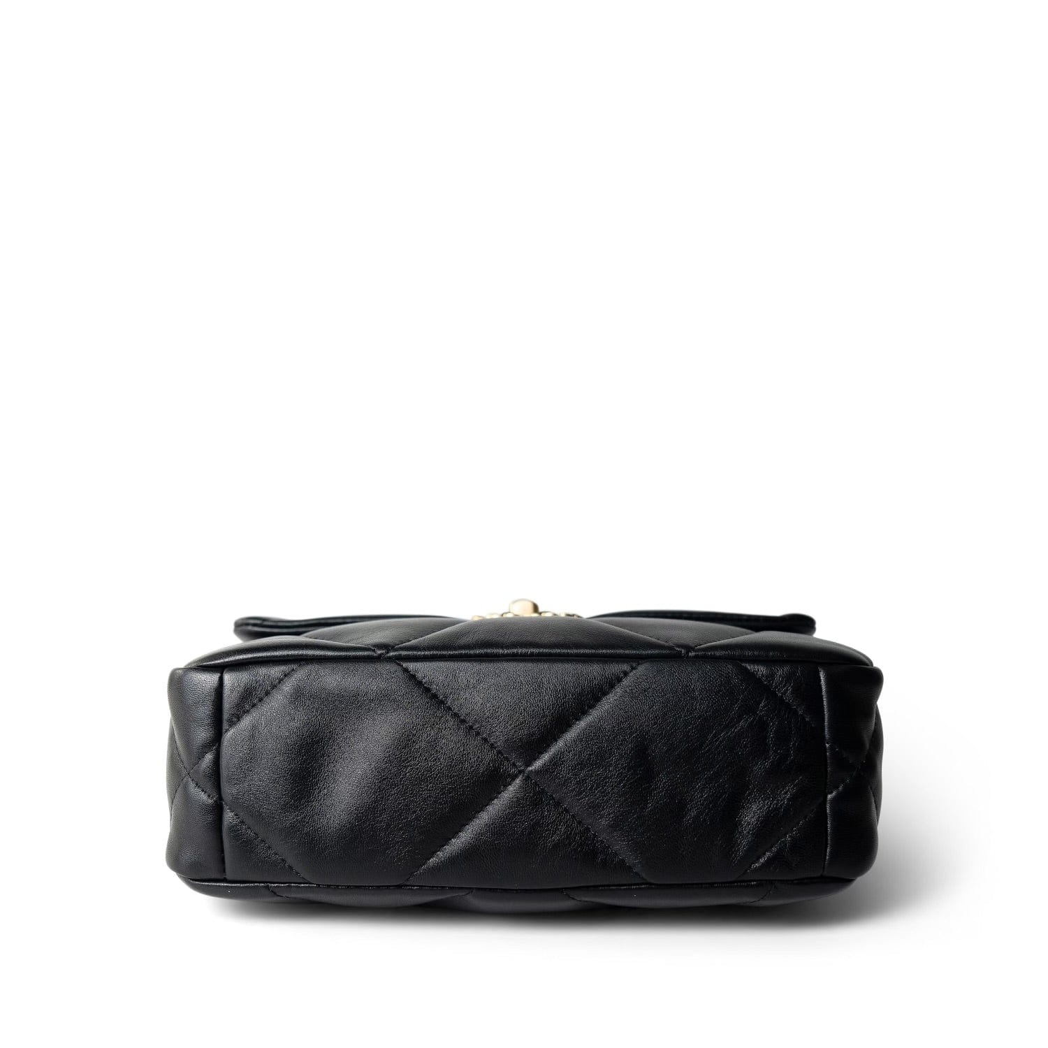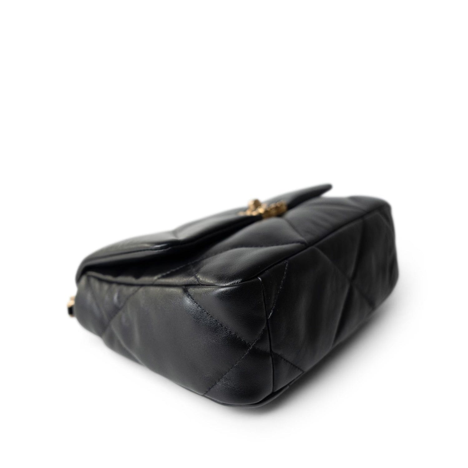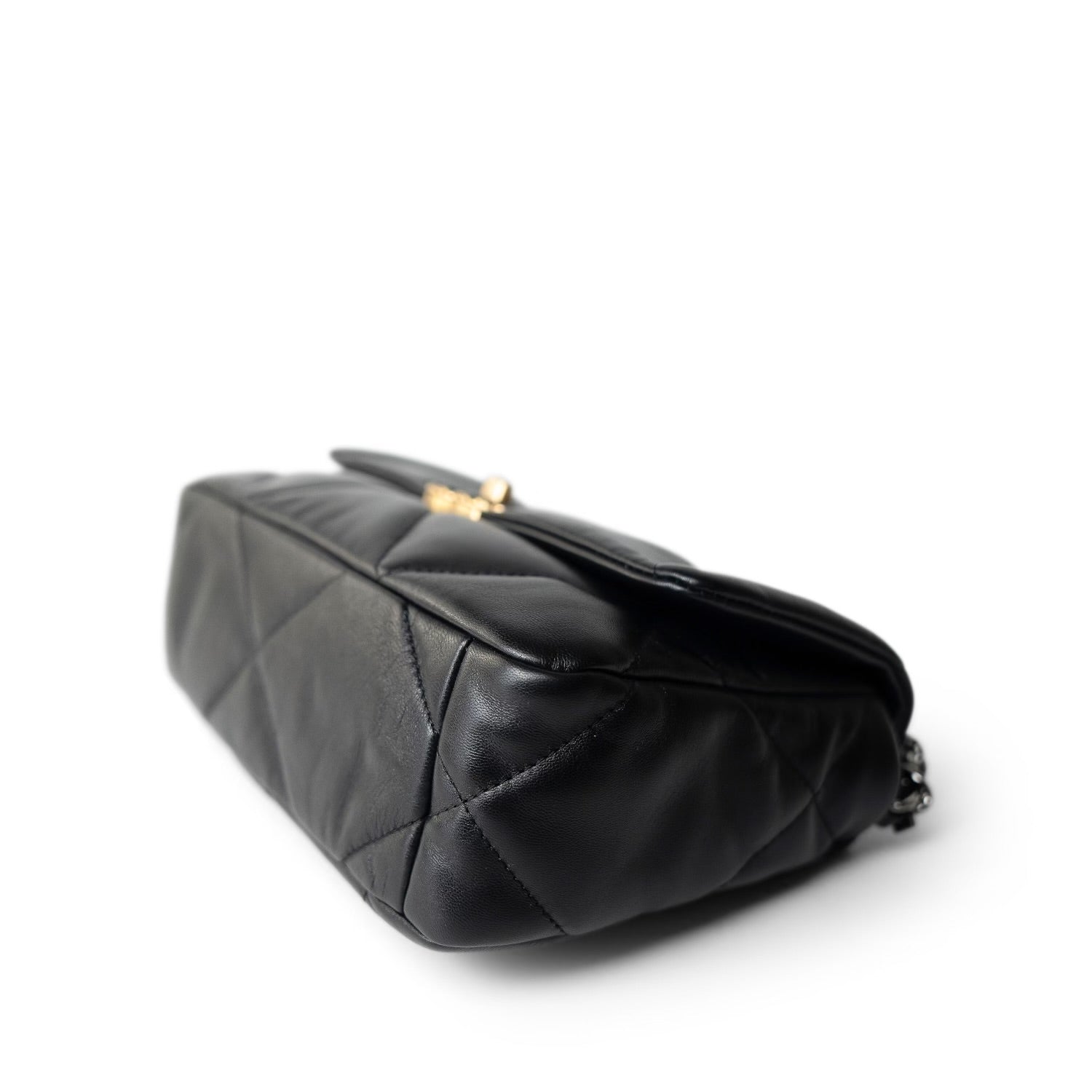 22A Black Lambskin Quilted 19 Flap Small Mixed Hardware