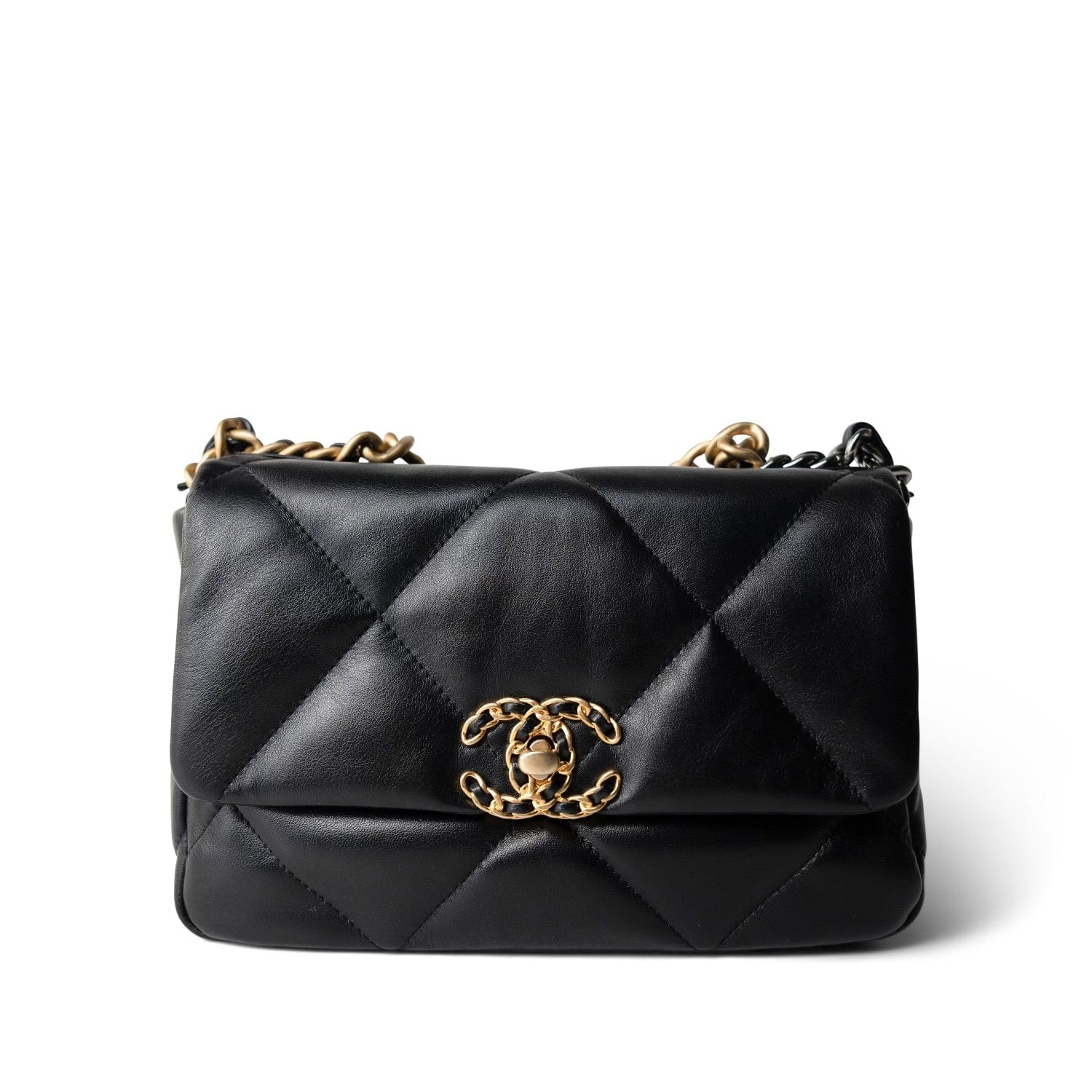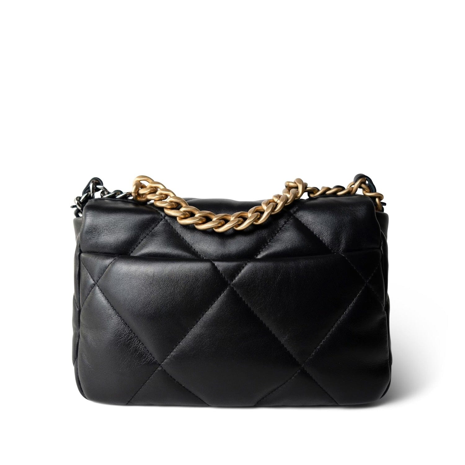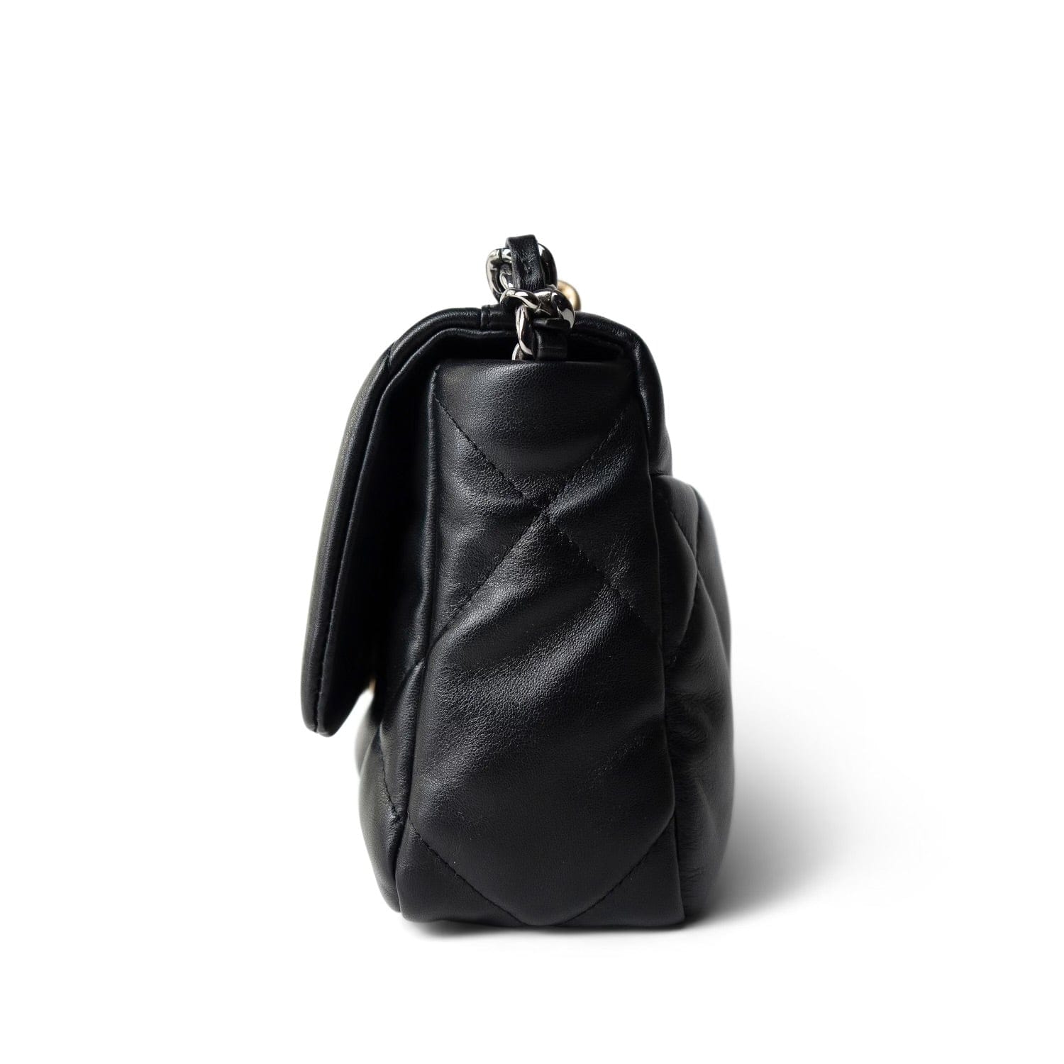 22A Black Lambskin Quilted 19 Flap Small Mixed Hardware