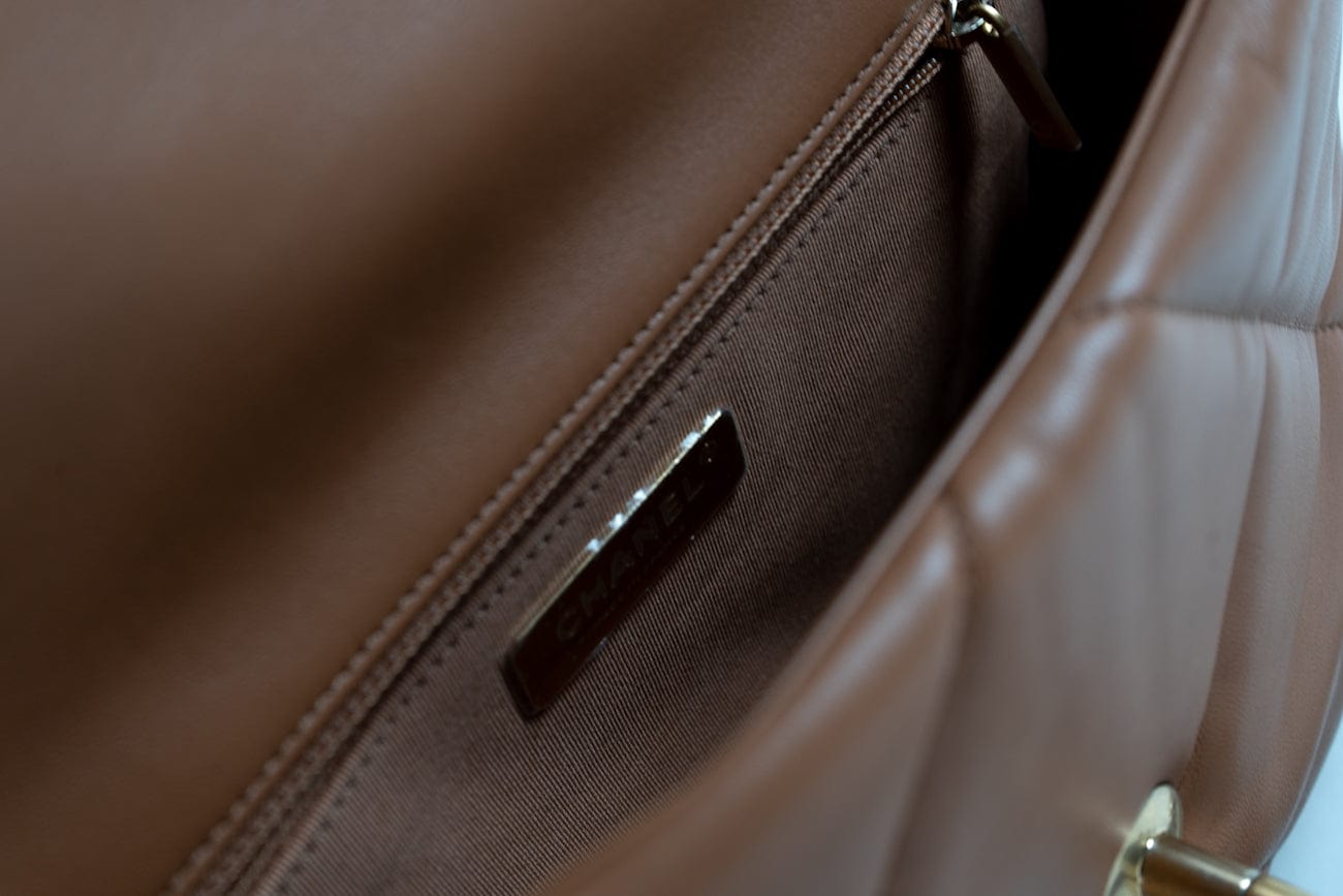 22A Caramel / Light Brown Lambskin Quilted 19 Flap Small MHW