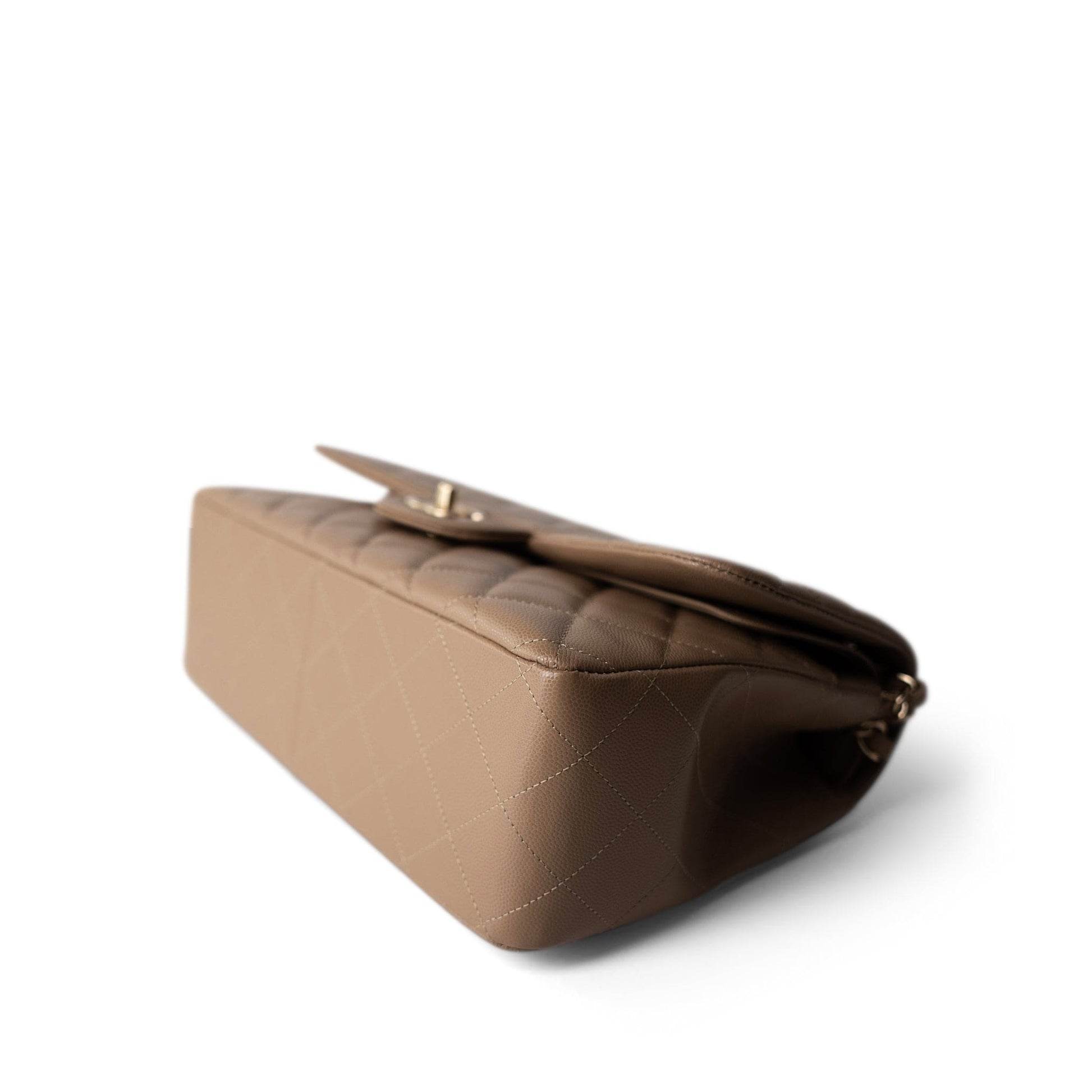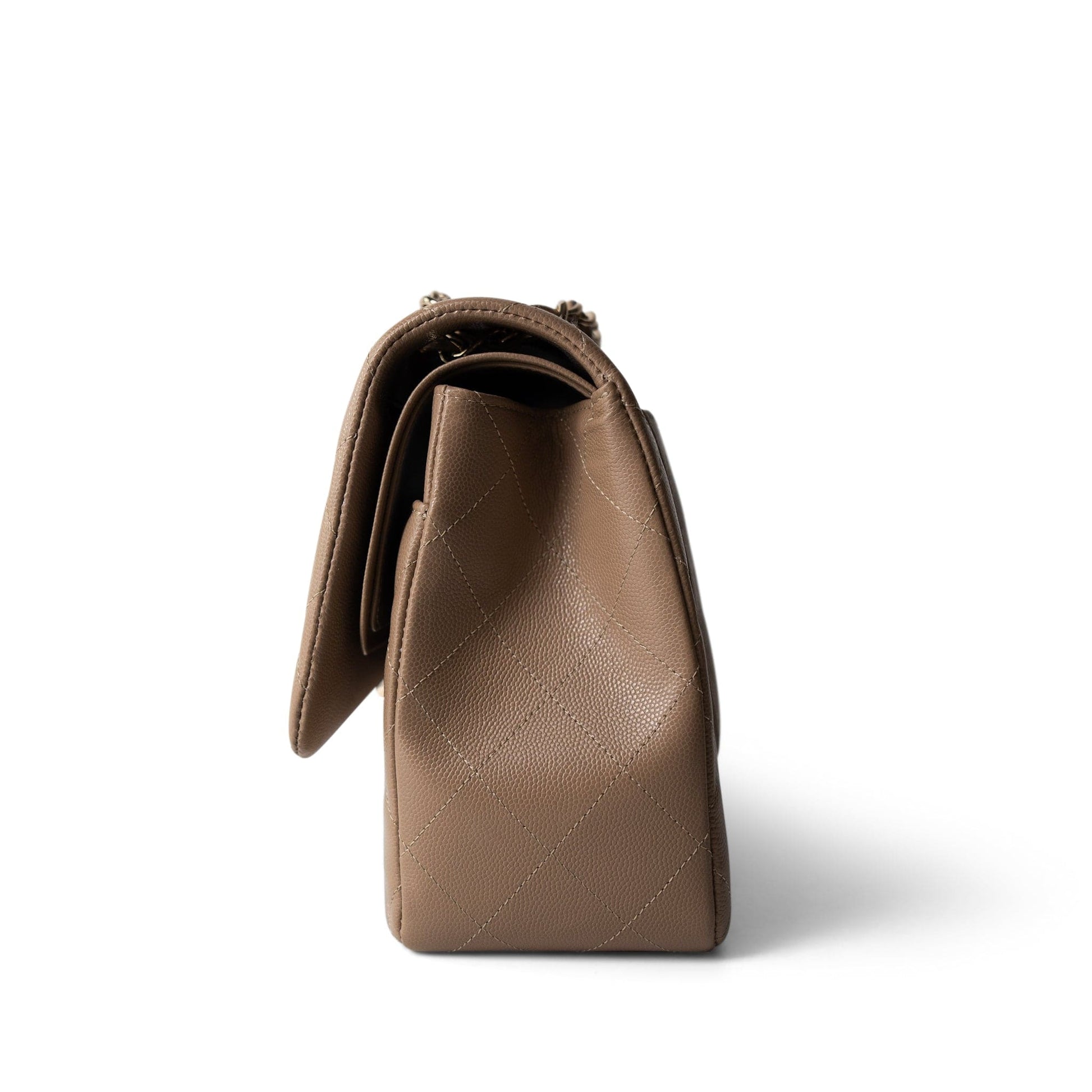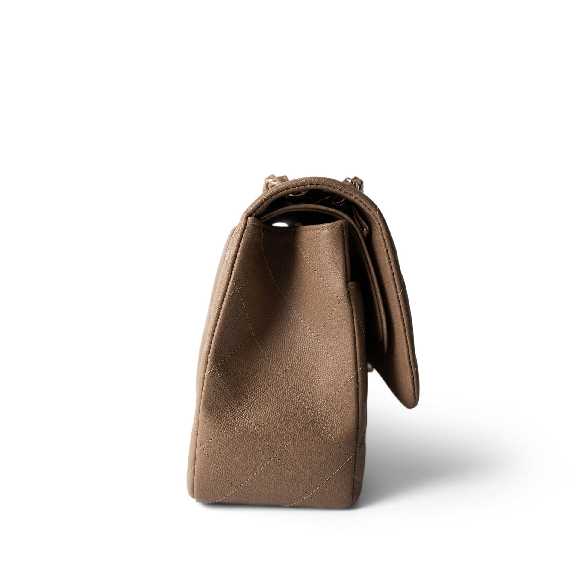 22A Dark Beige Caviar Quilted Jumbo Classic Flap Light Gold Hardware