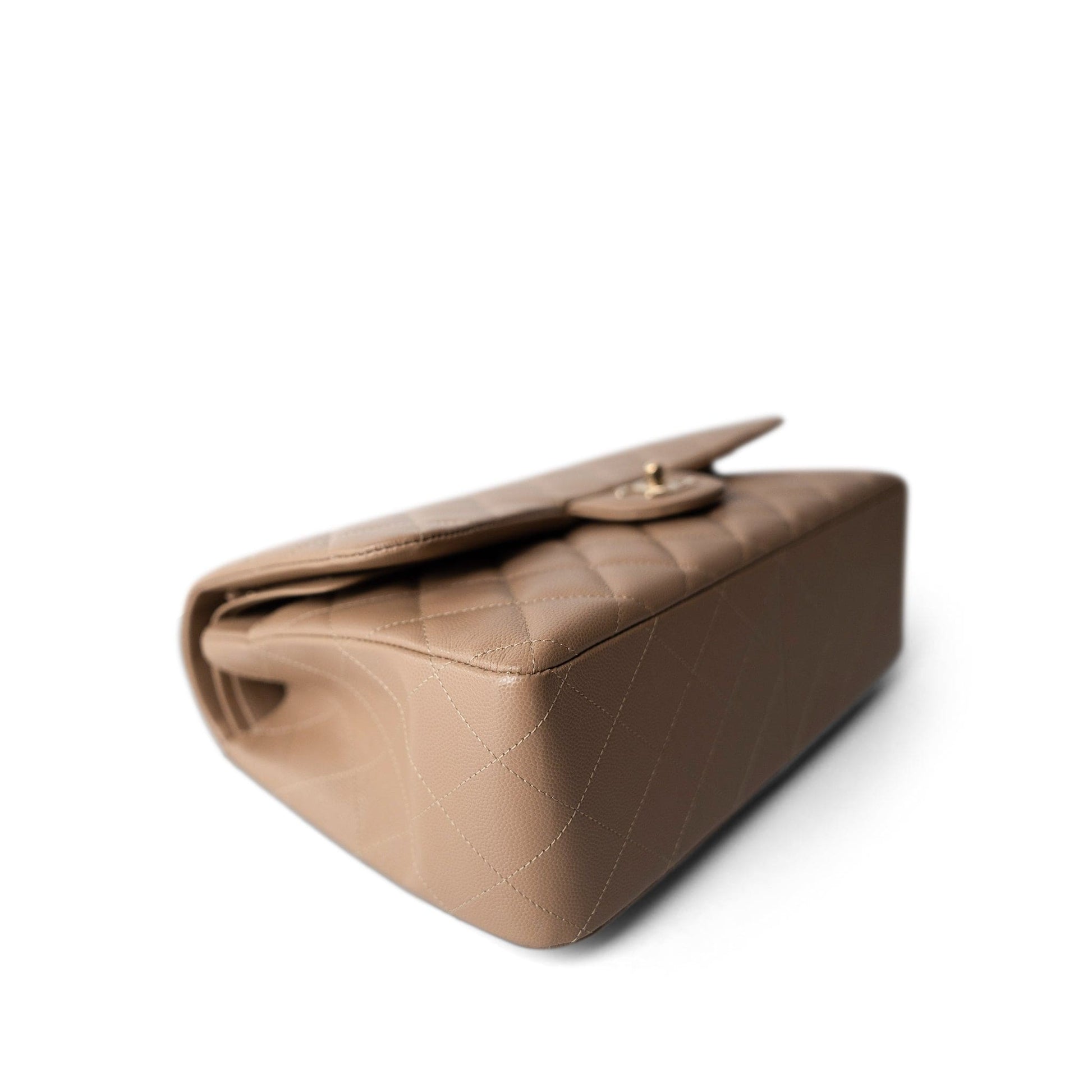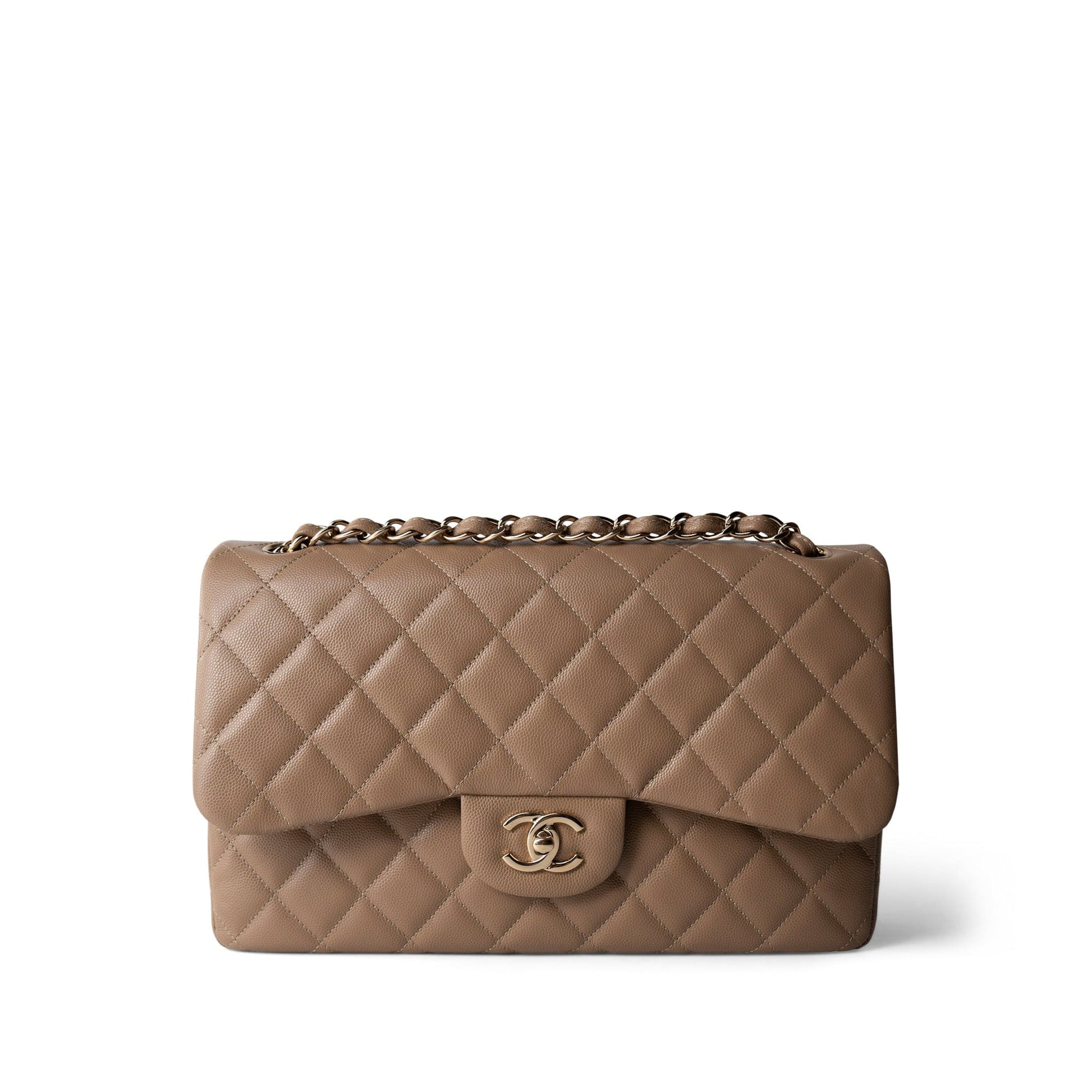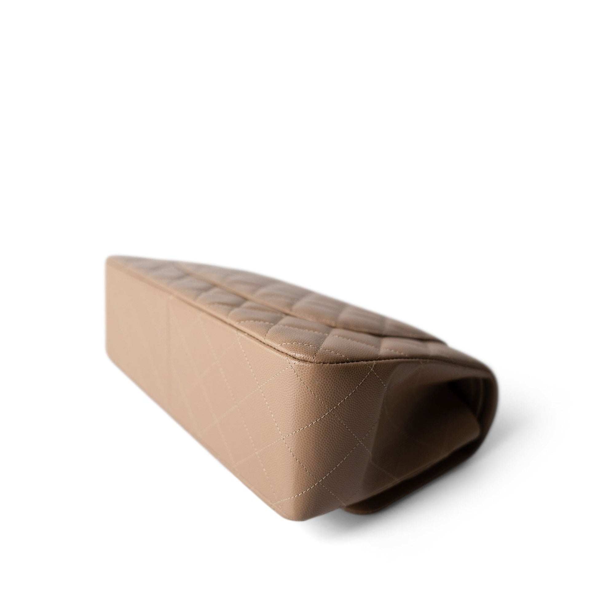 22A Dark Beige Caviar Quilted Jumbo Classic Flap Light Gold Hardware
