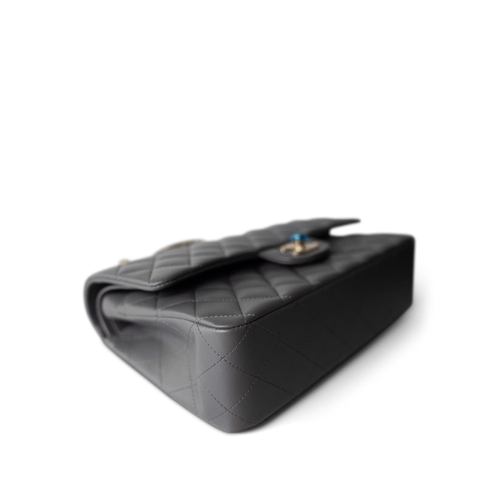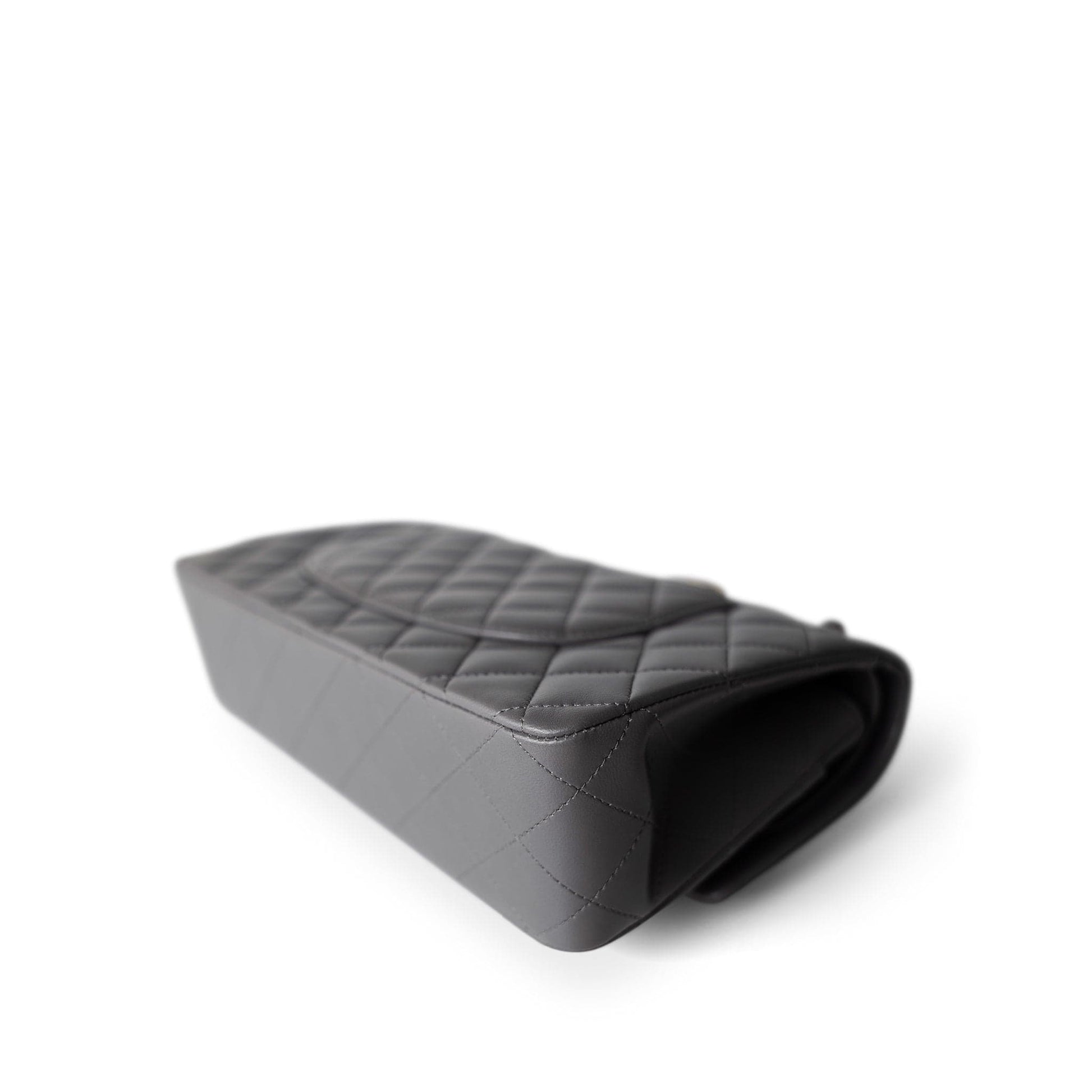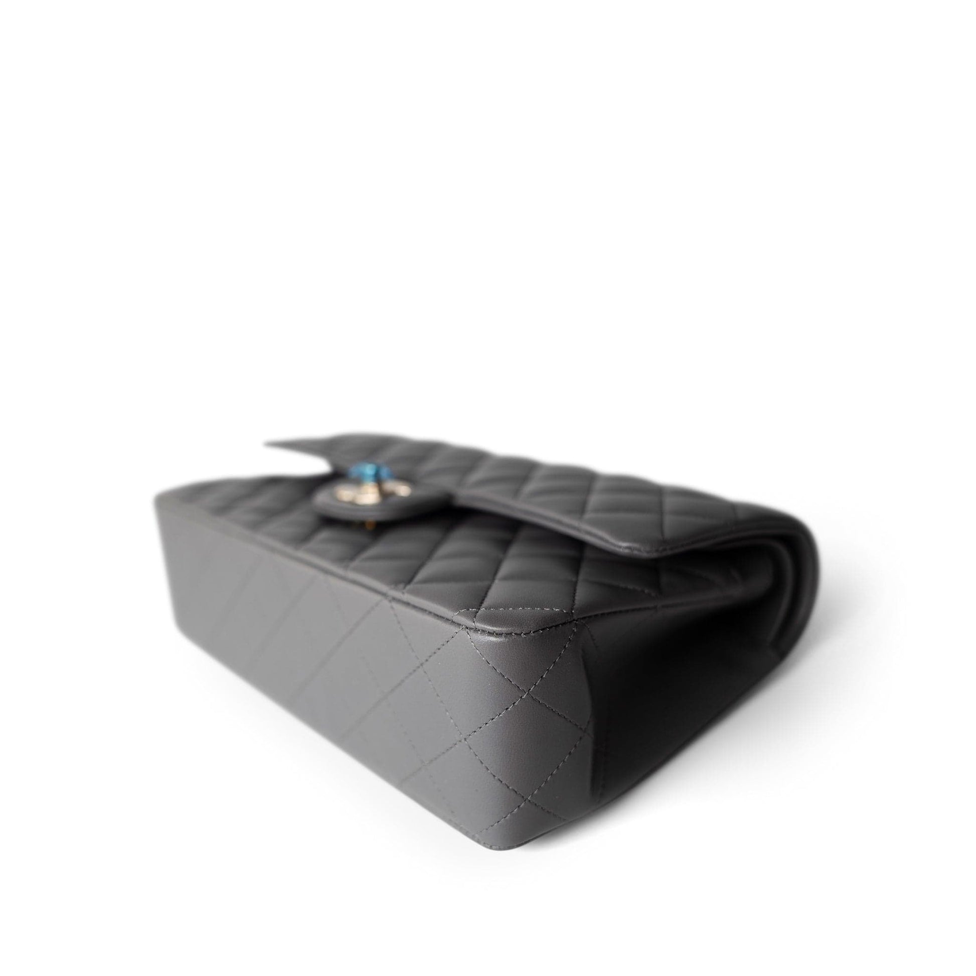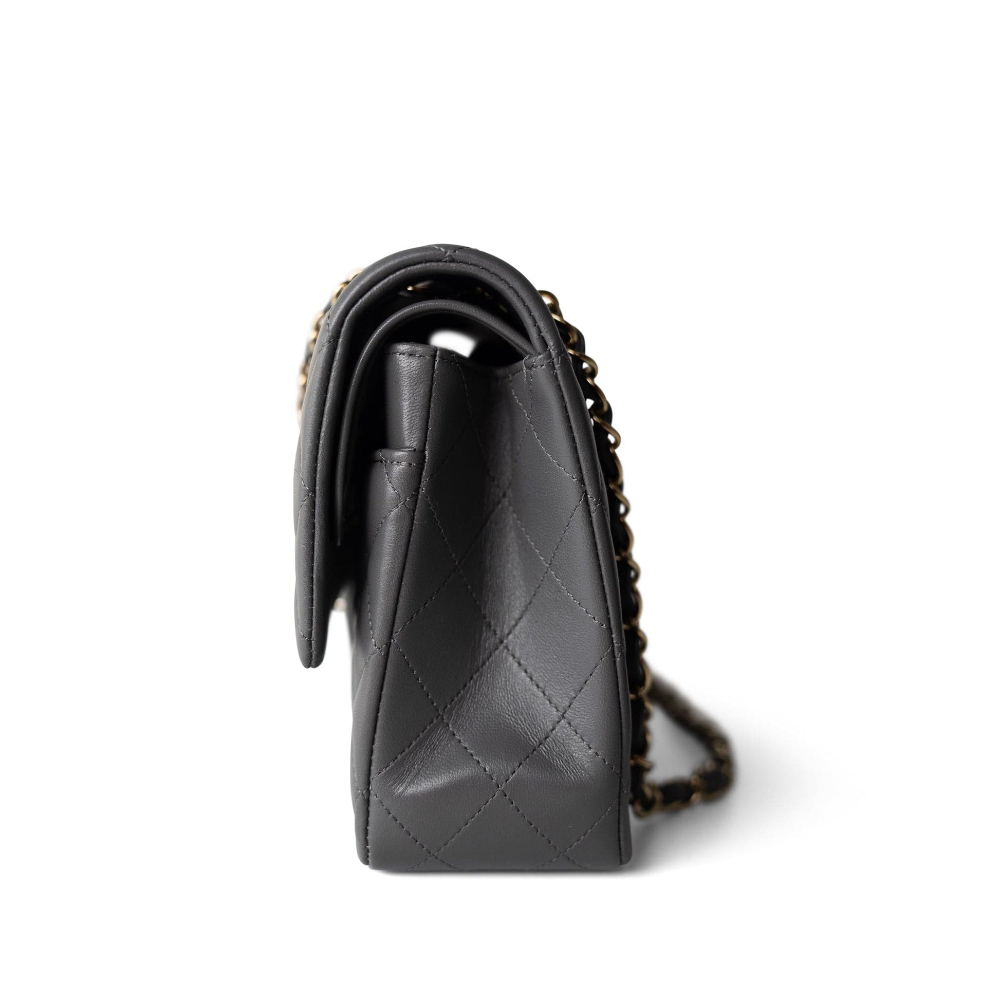 22A Dark Grey Lambskin Quilted Classic Flap Medium Light Gold Hardware