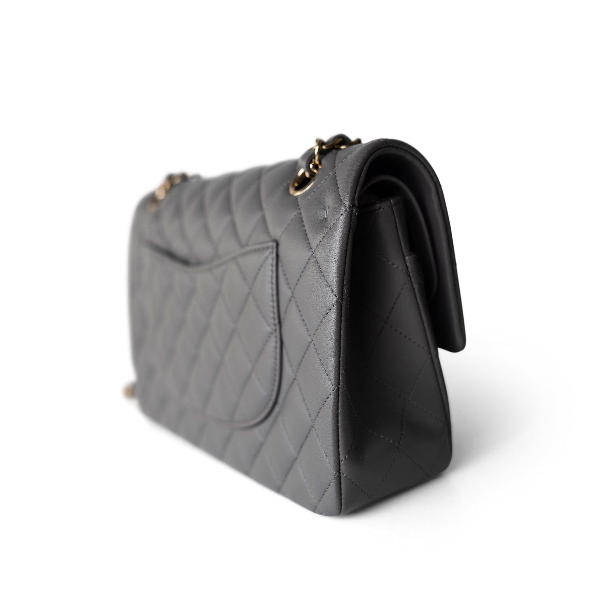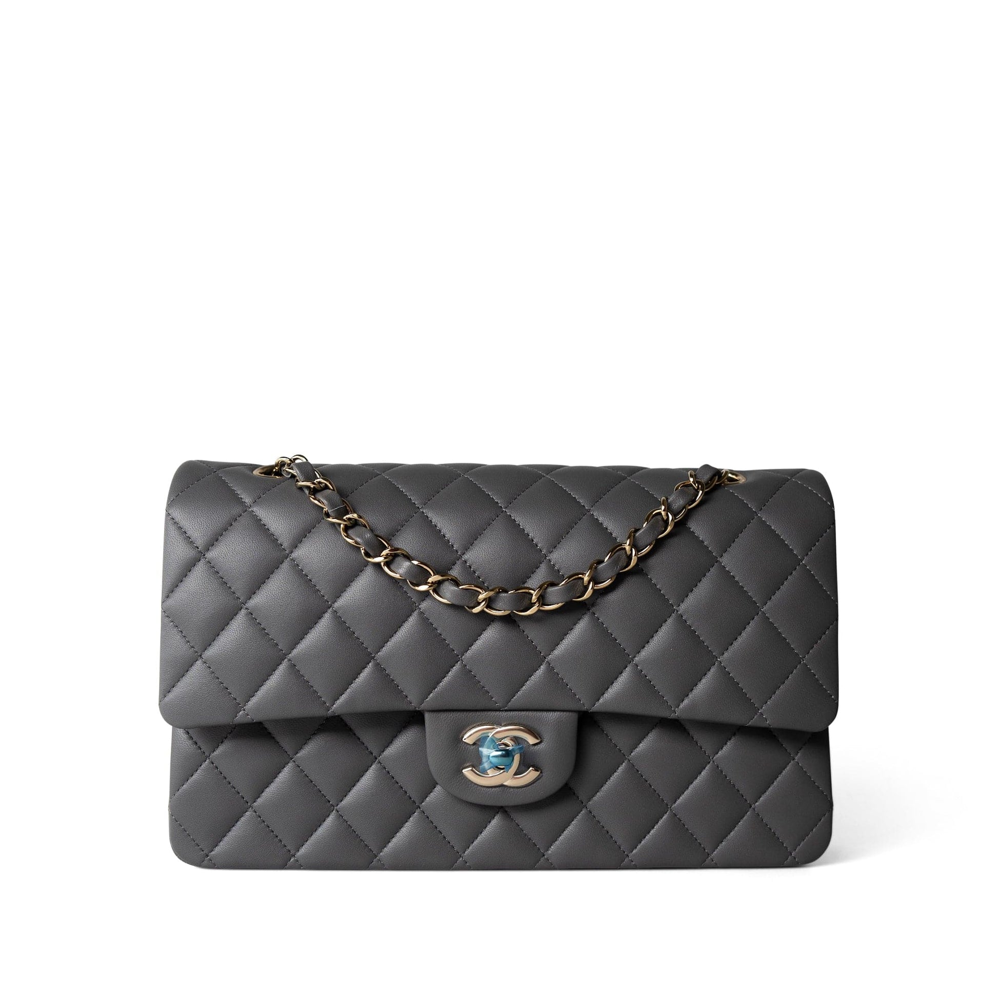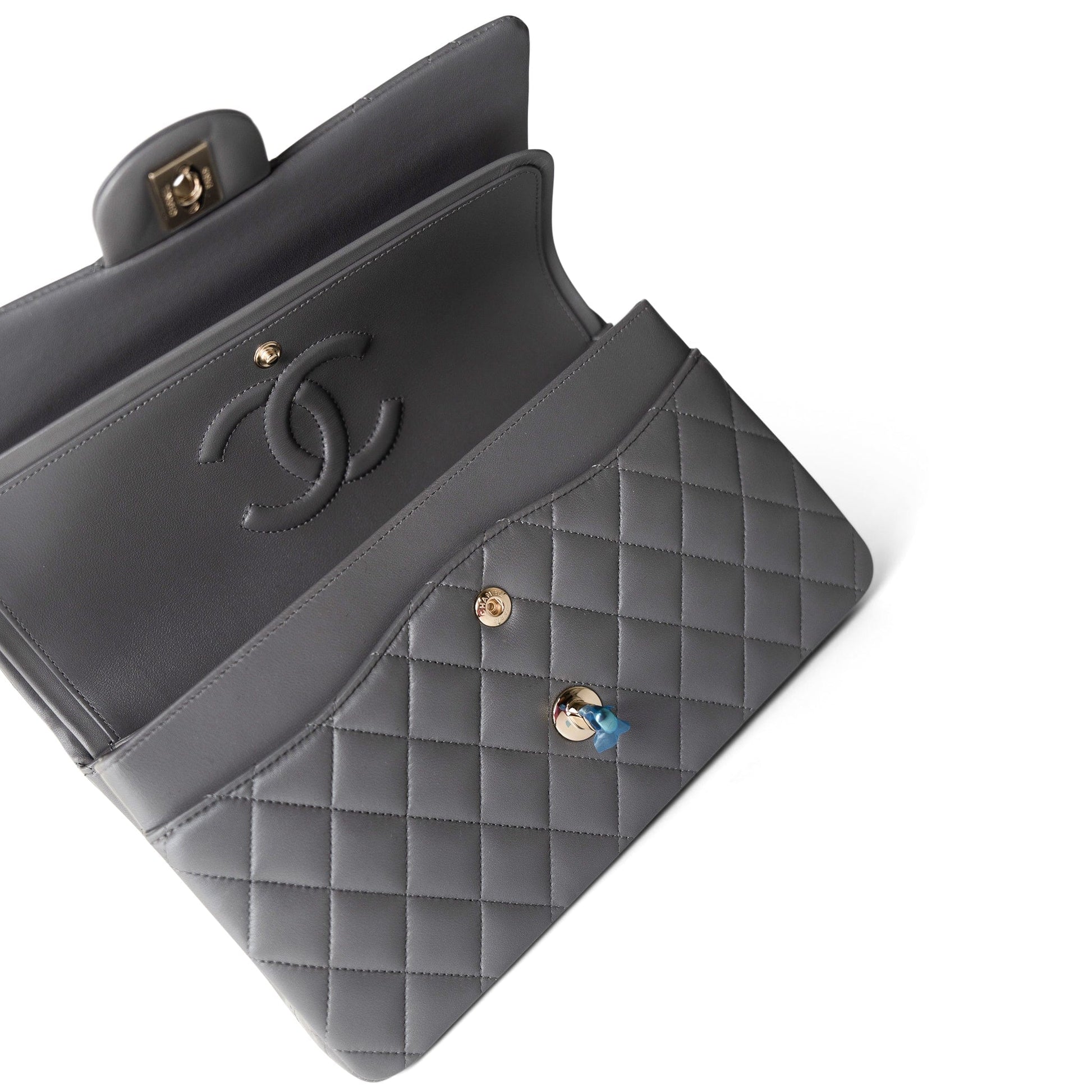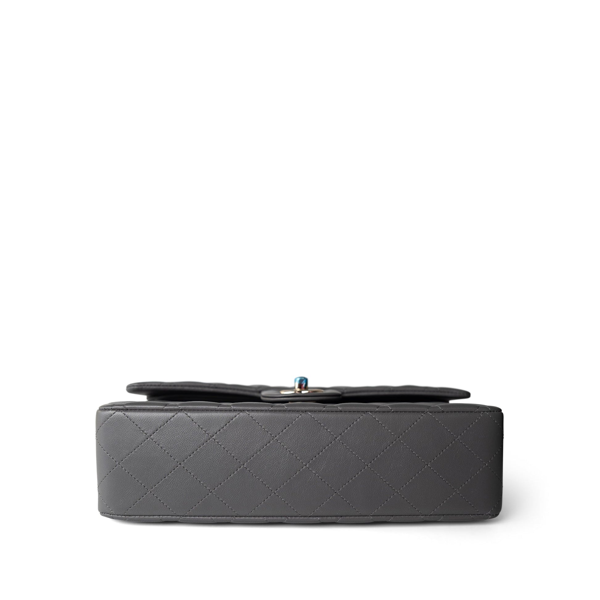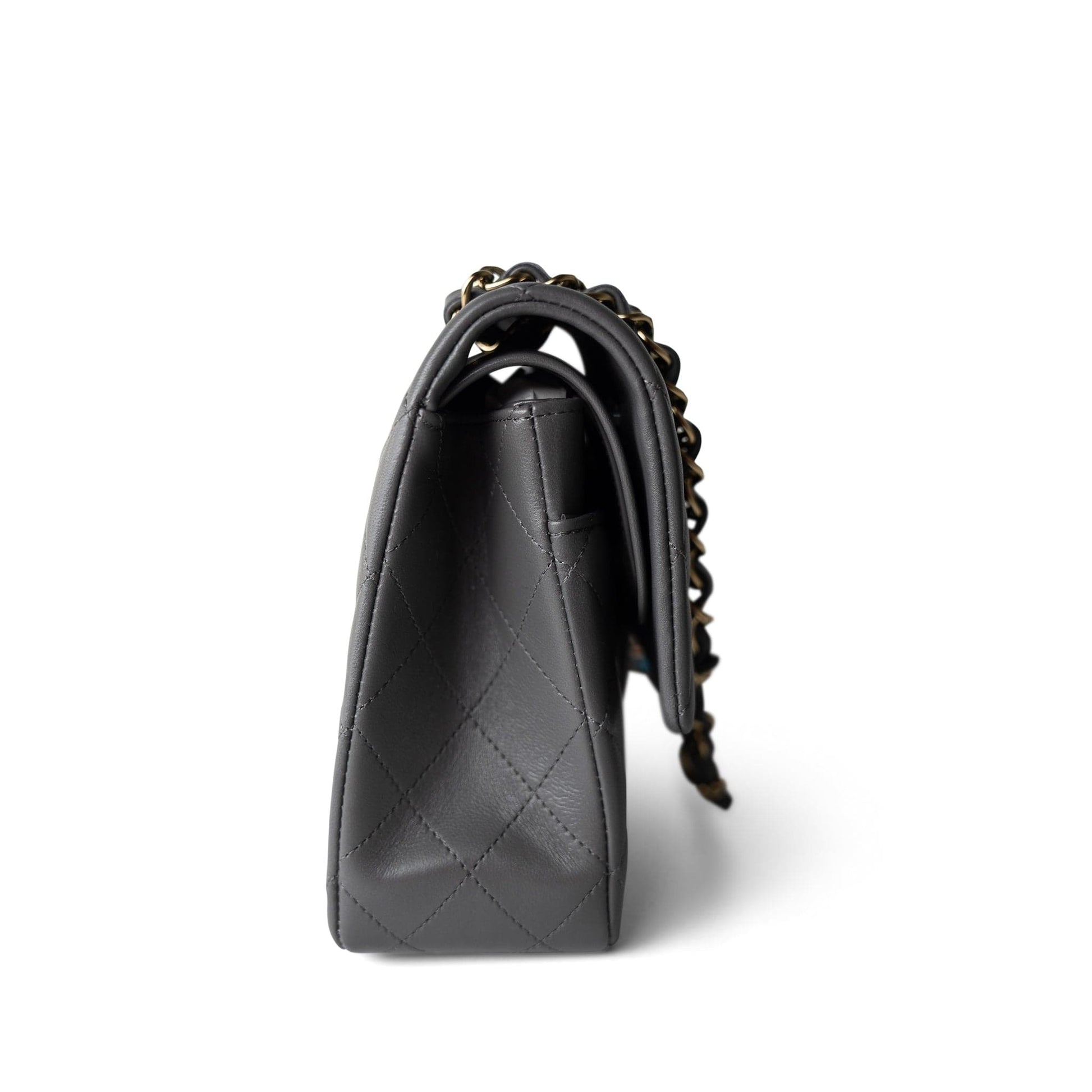 22A Dark Grey Lambskin Quilted Classic Flap Medium Light Gold Hardware