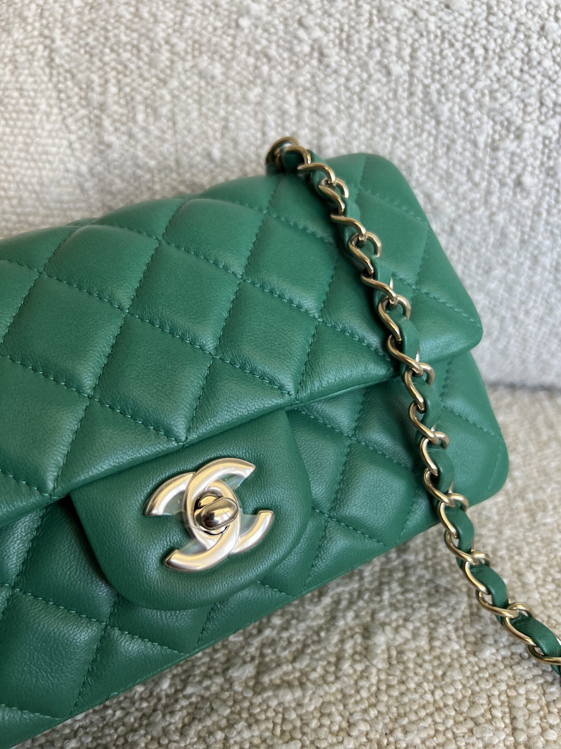 22A Green Mini Rectangular Lambskin Quilted LGHW