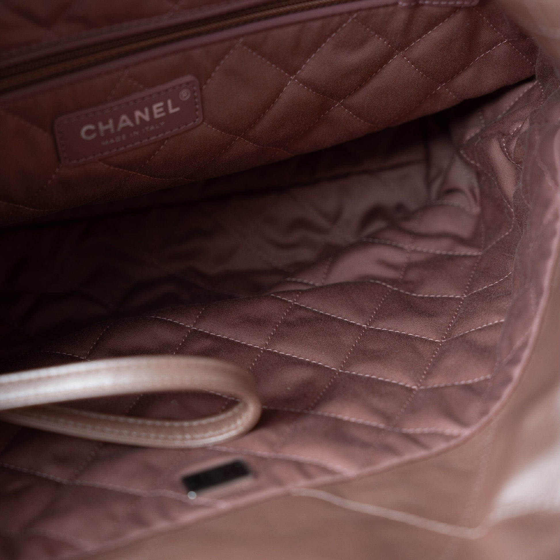 22A Metallic Pink / Rose Calfskin Quilted 22 Bag Drawstring Bag Small Rose Gold Hardware
