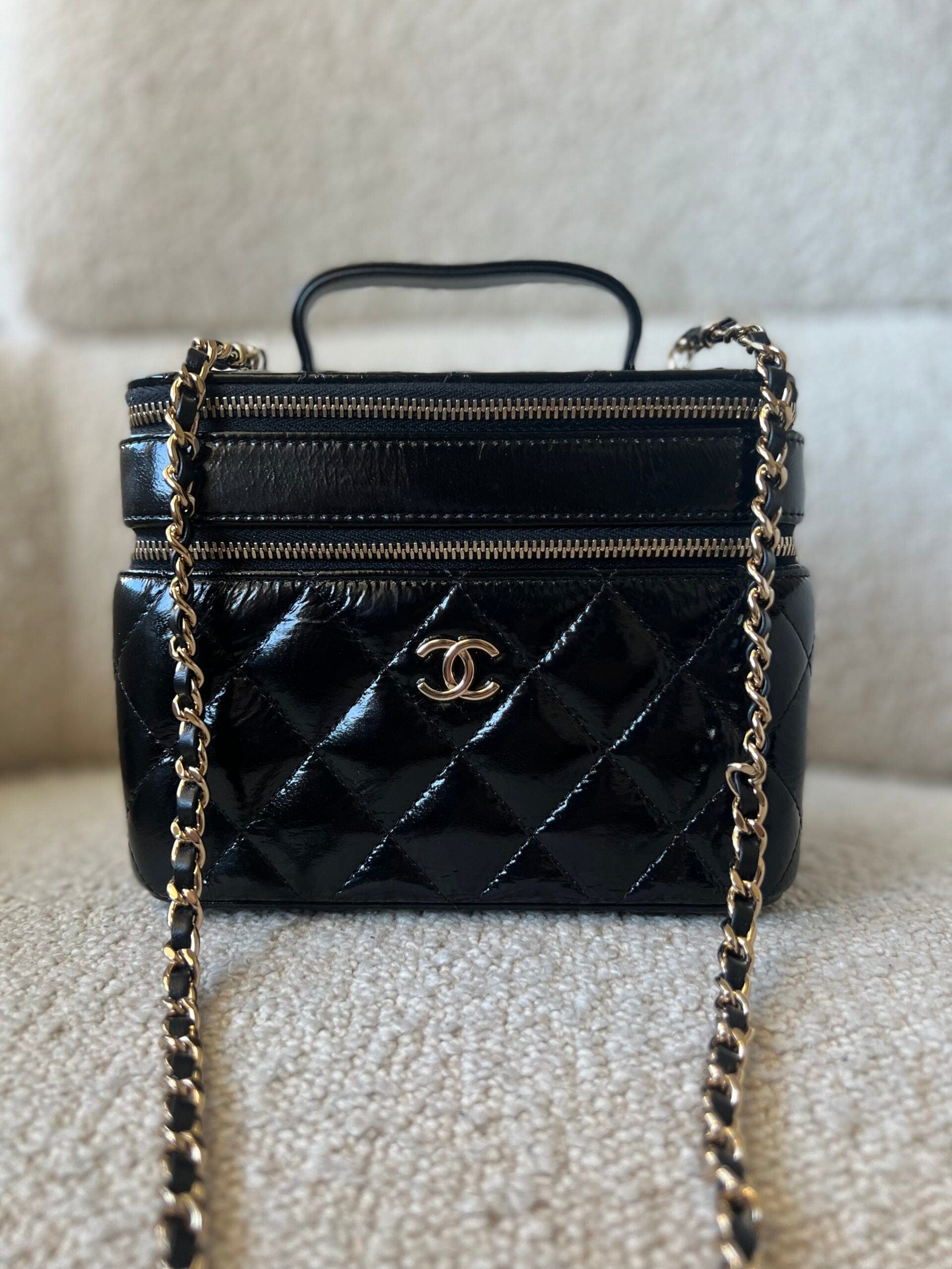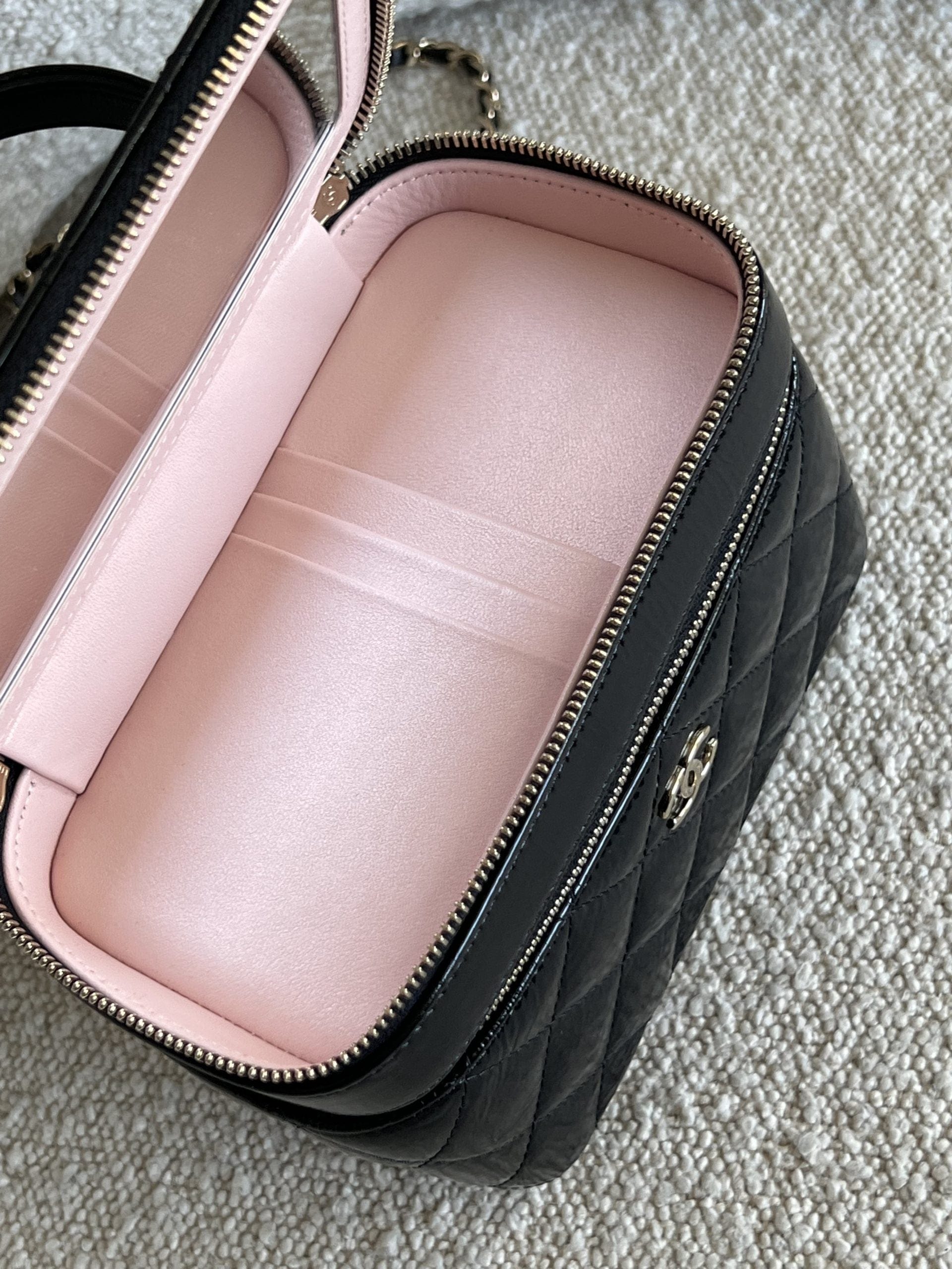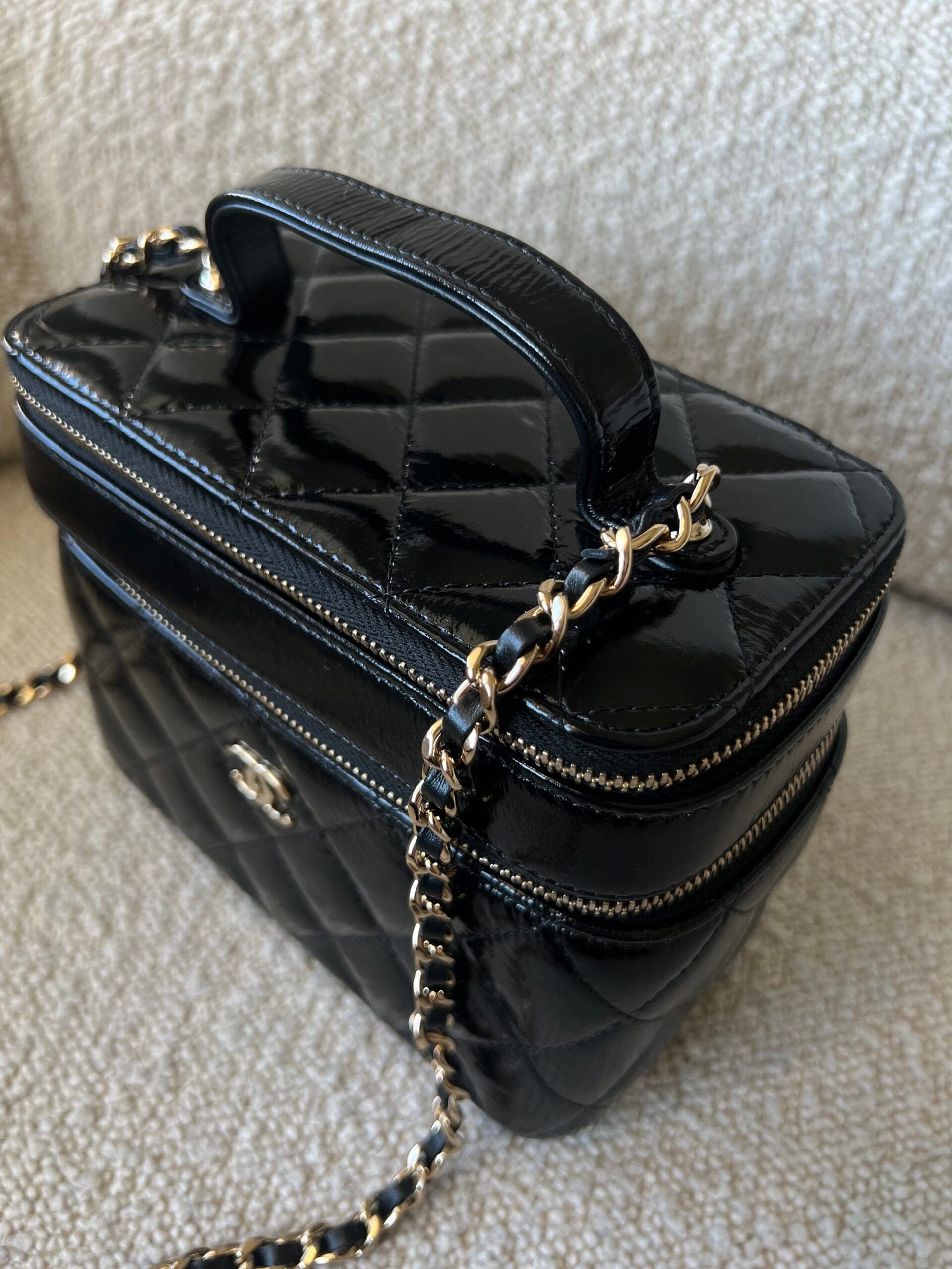 22B Black Shiny Lambskin Vanity with Chain LGHW