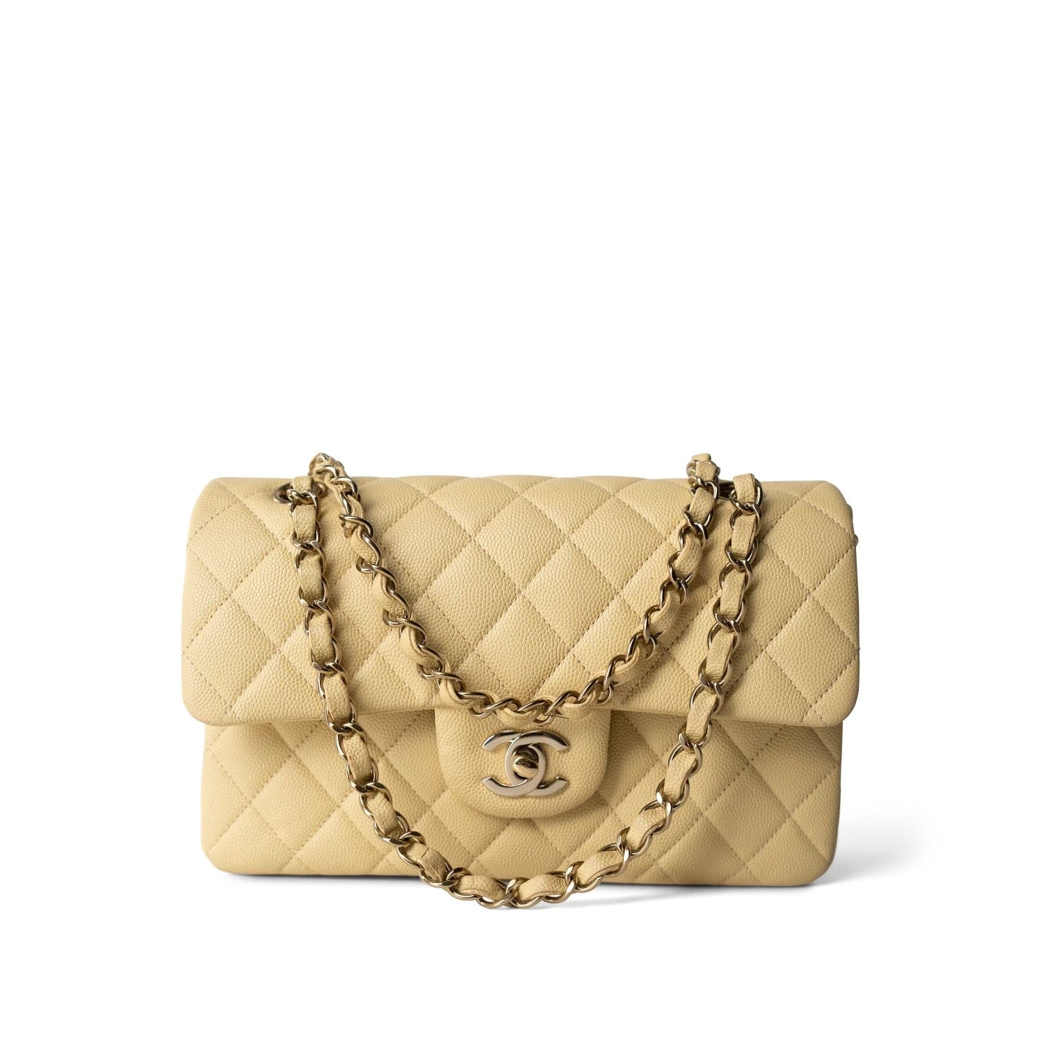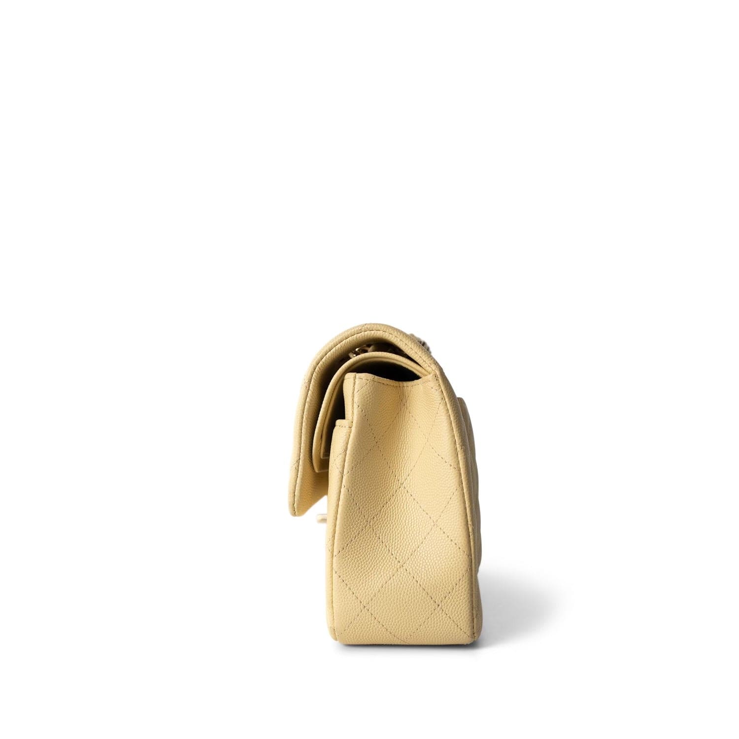 22B Light Yellow Caviar Quilted Classic Flap Small LGHW
