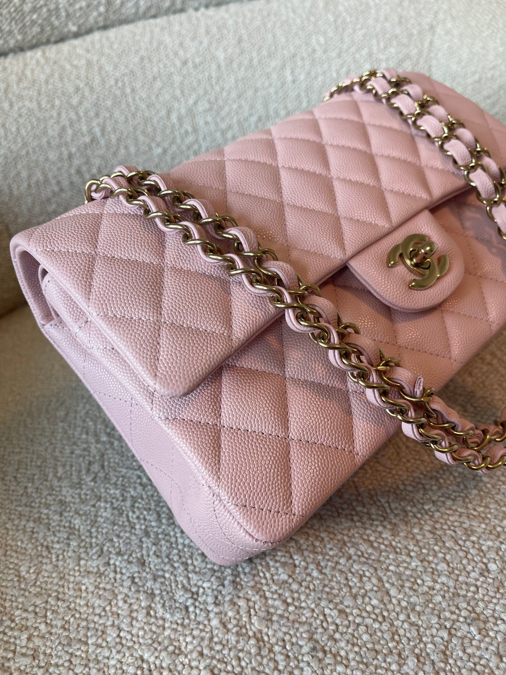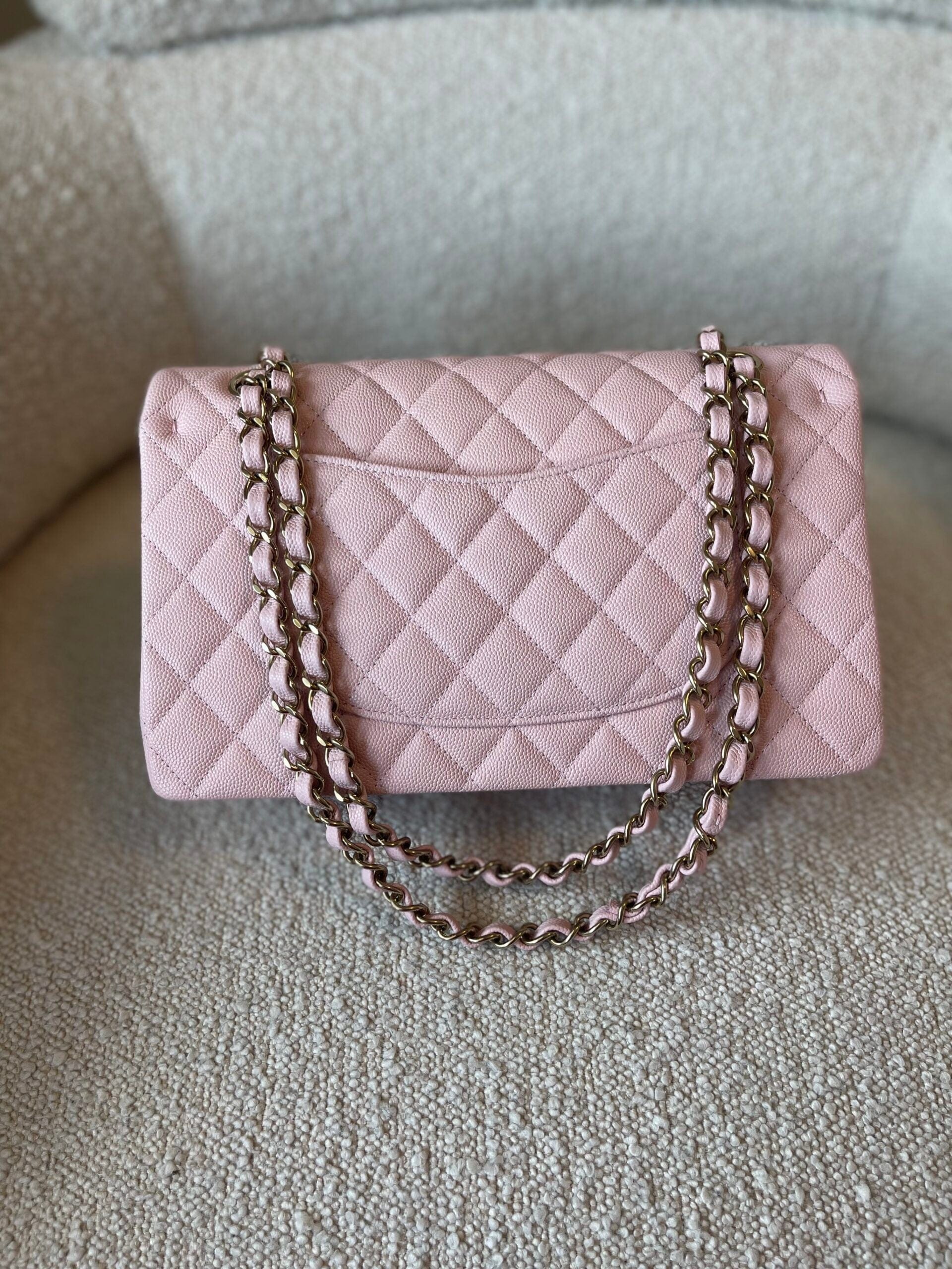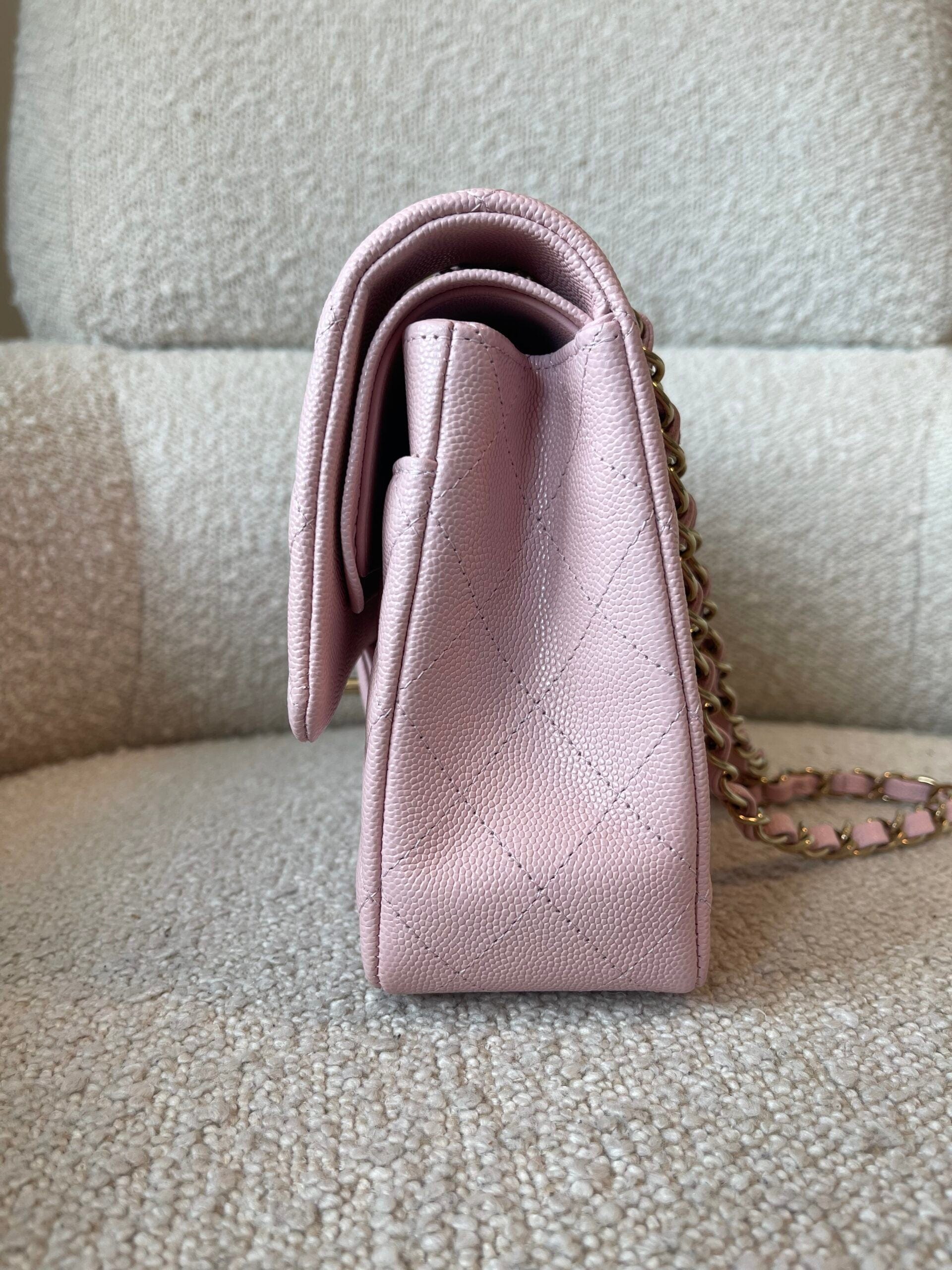 22B Rose Claire/ light pink Caviar Quilted Classic Double Flap Medium Light Gold Hardware