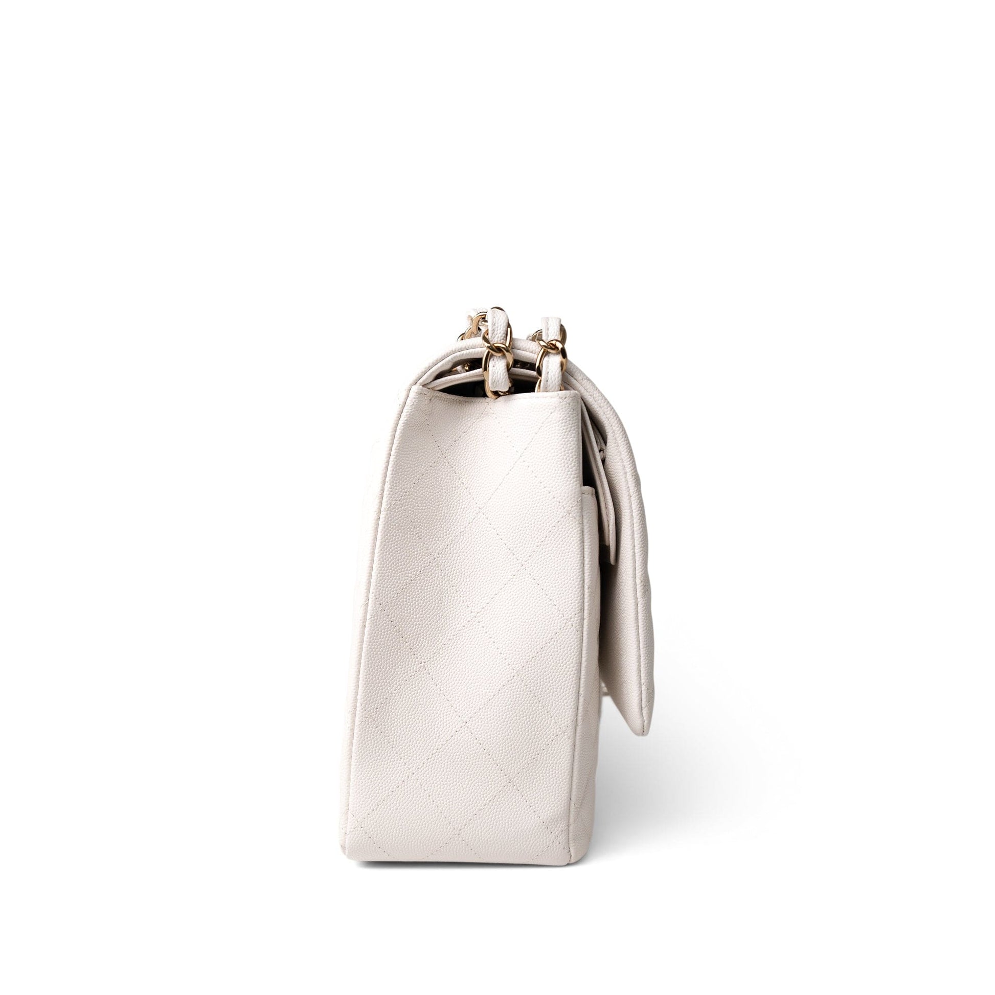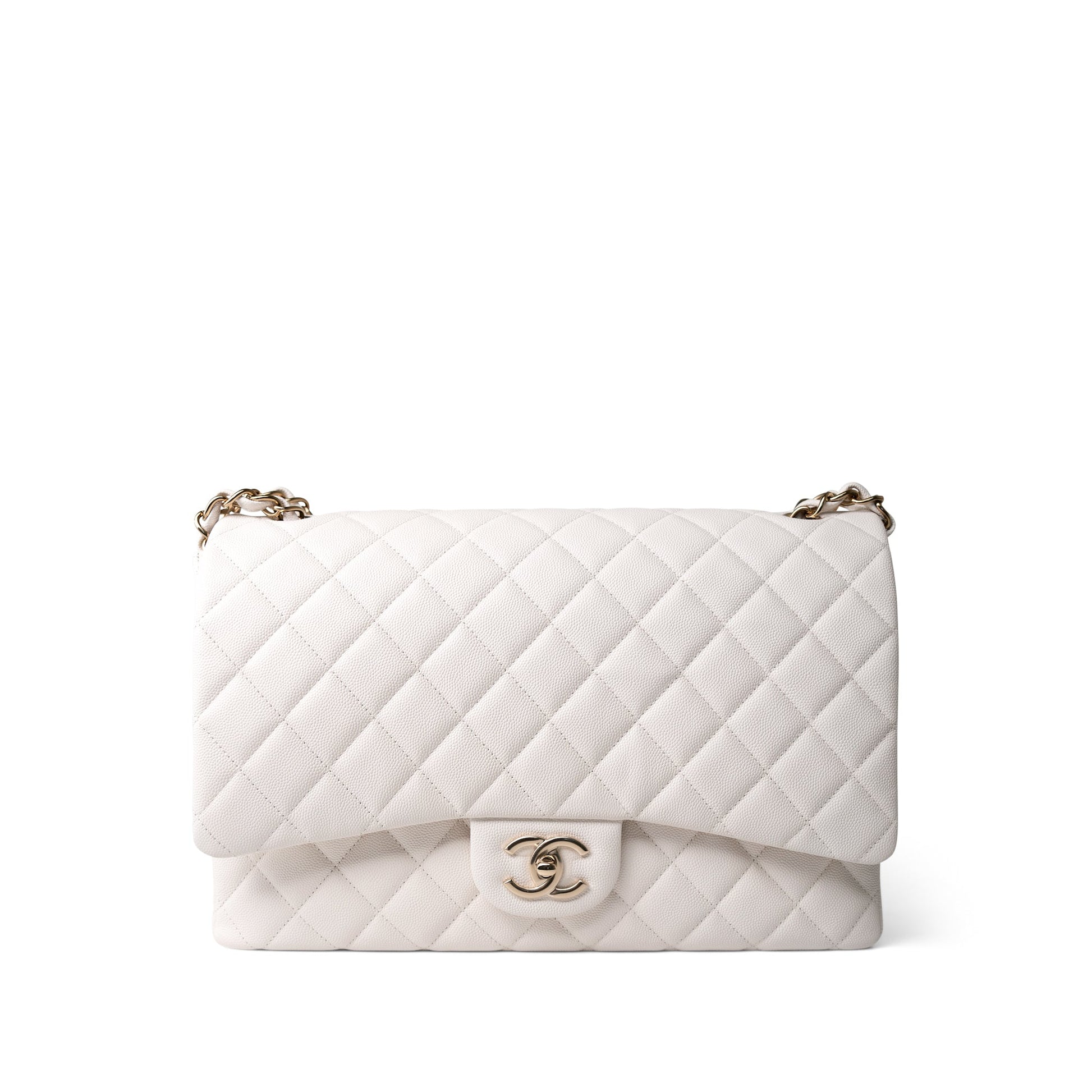 22B White Caviar Quilted Maxi Classic Flap Light Gold Hardware