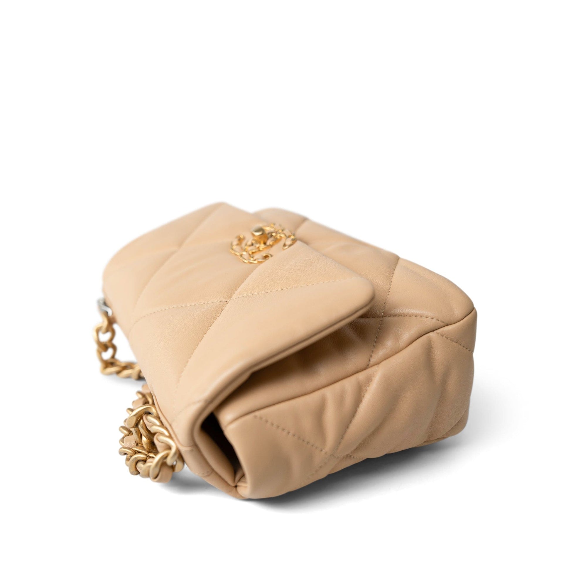 22C Beige Clair Lambskin Quilted 19 Flap Small Mixed Hardware