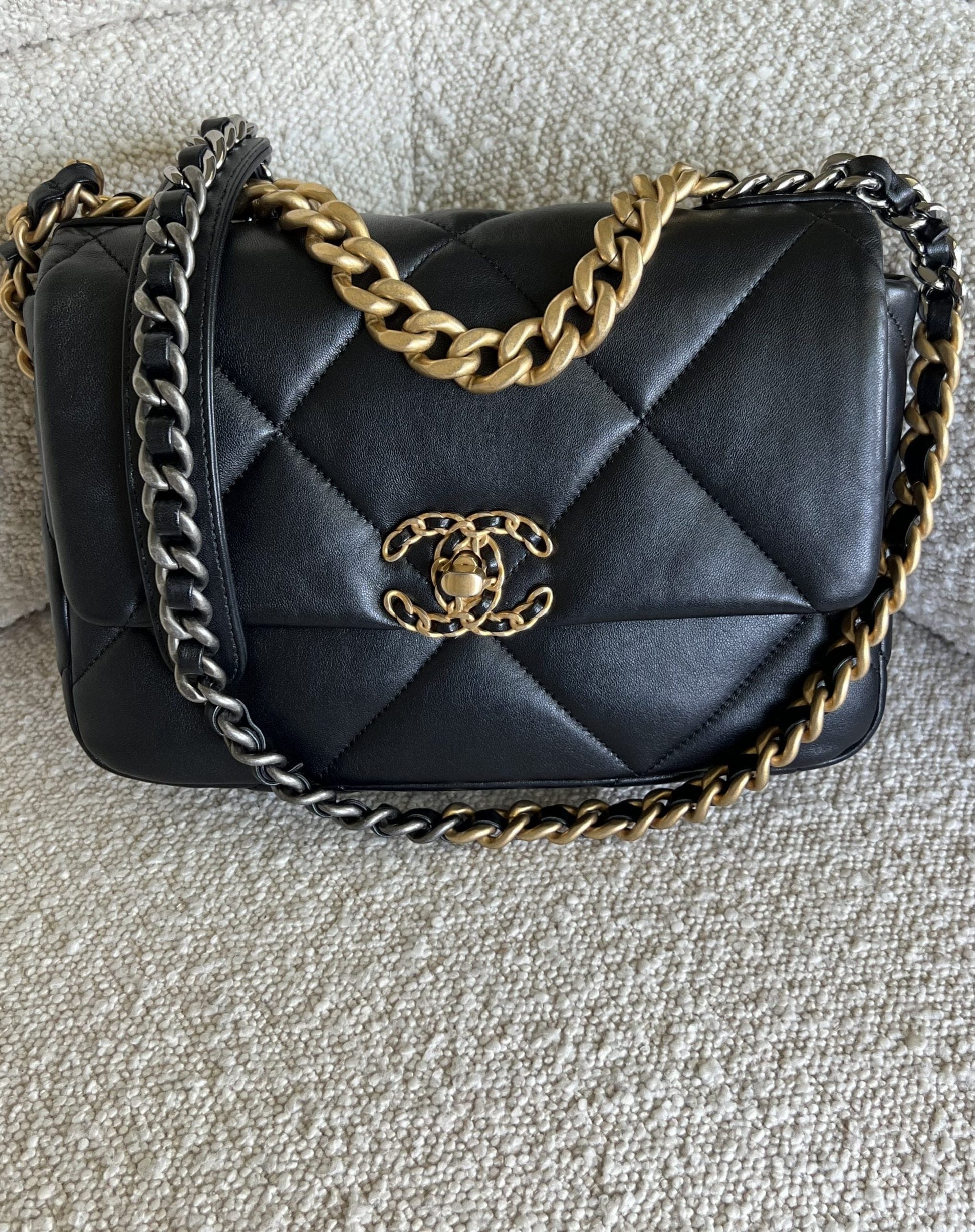 22C Black Lambskin Quilted 19 Flap Small MHW
