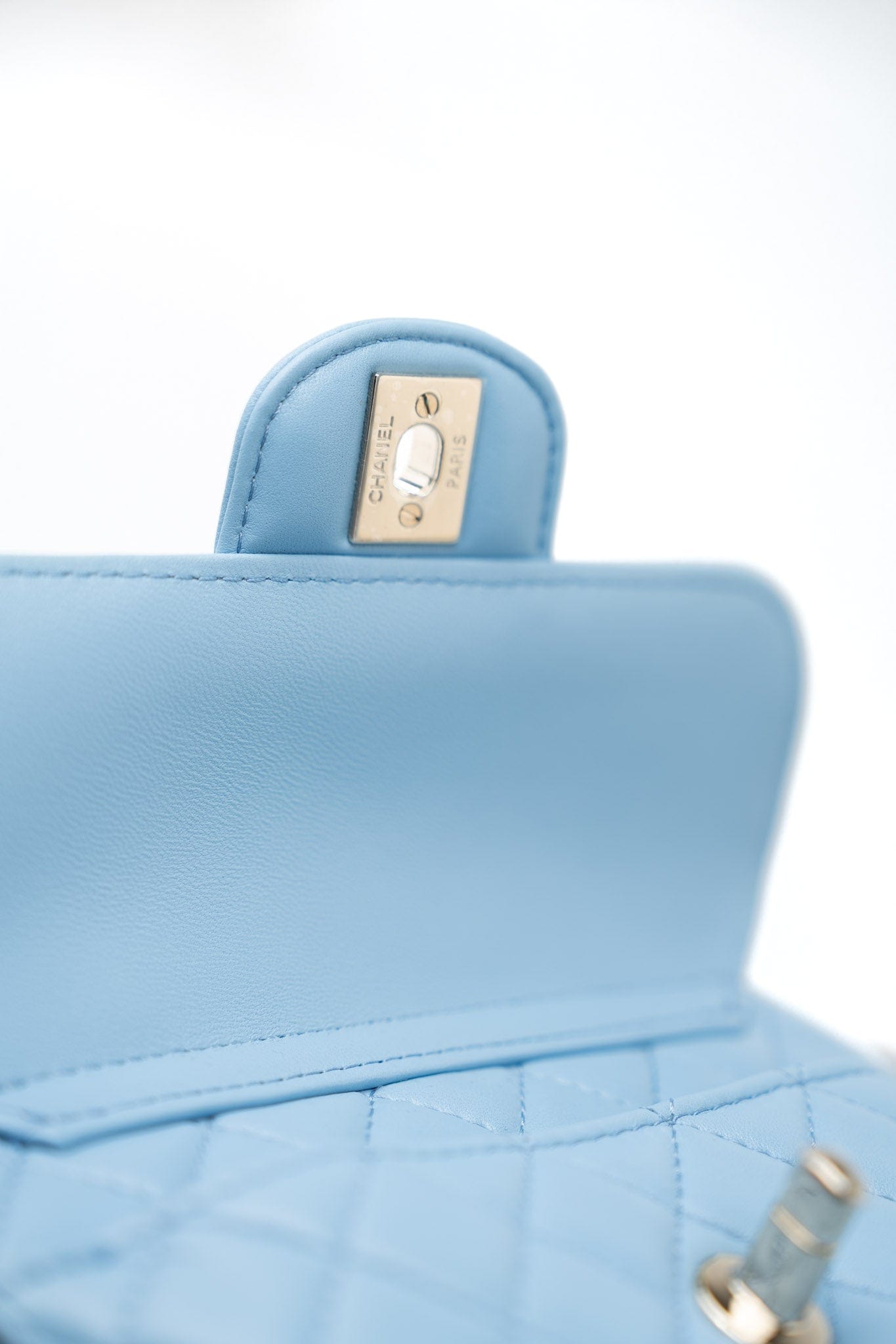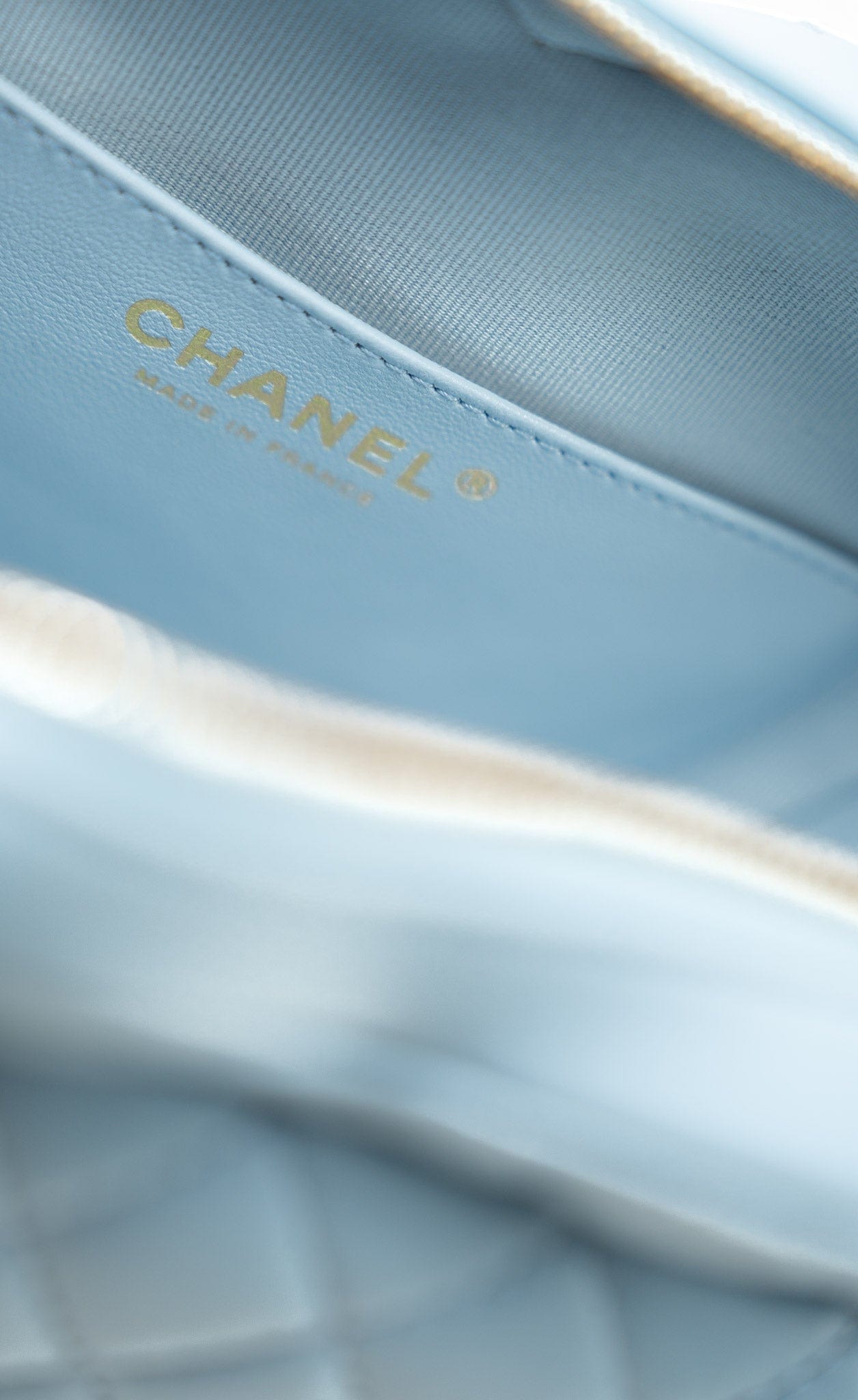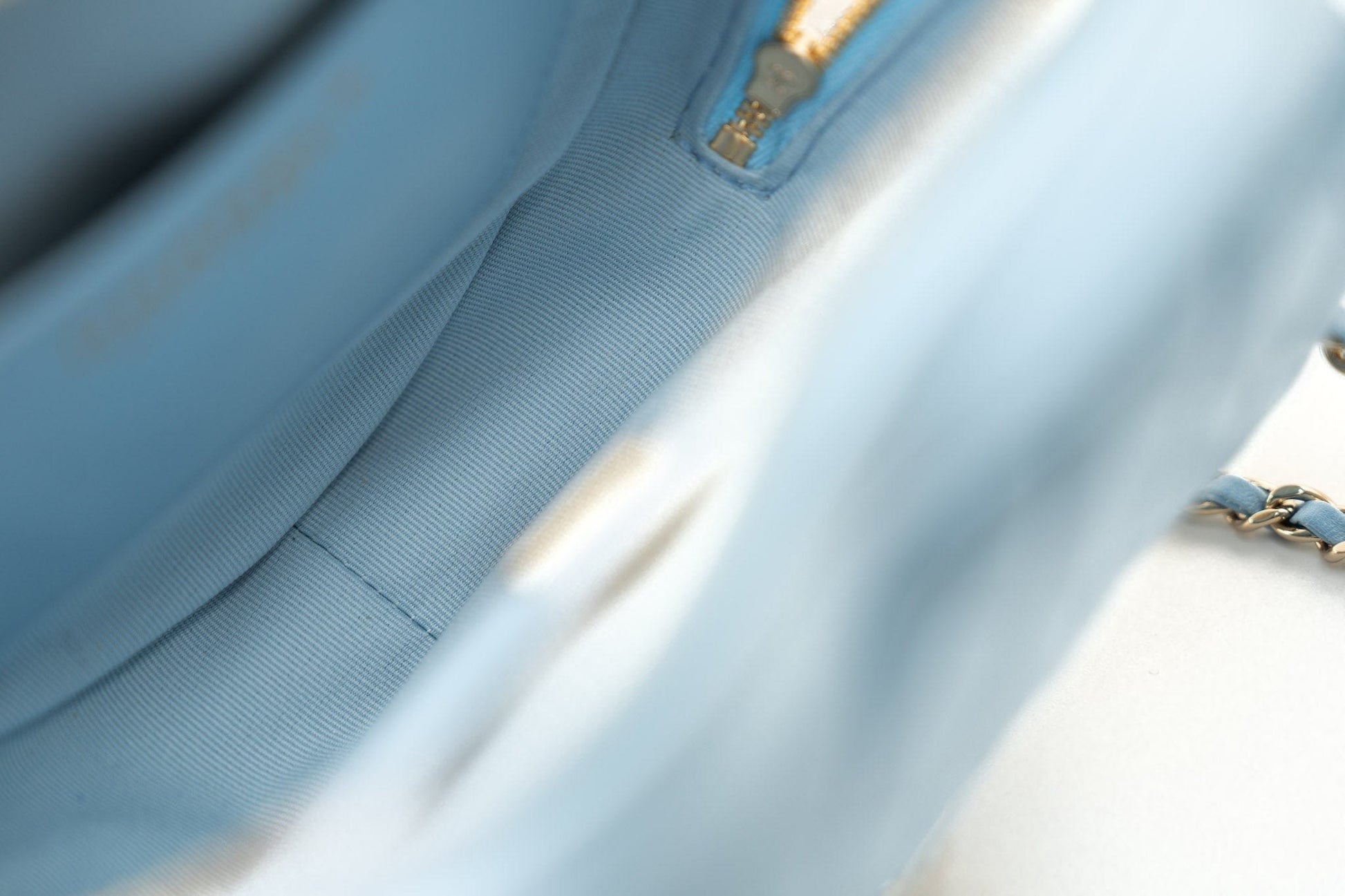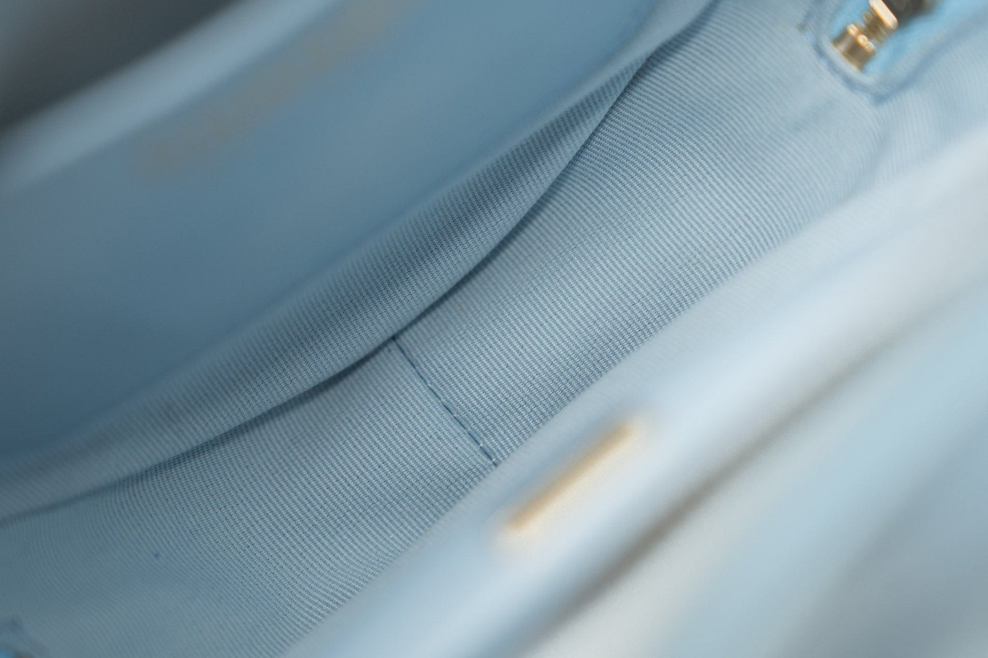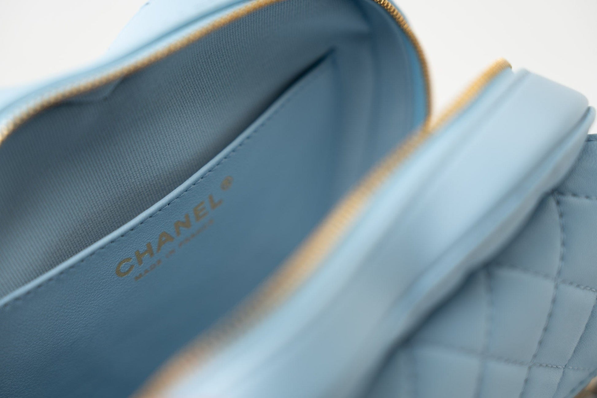 22S CC In Love Blue Lambskin Quilted Large Heart Bag Light Gold Hardware