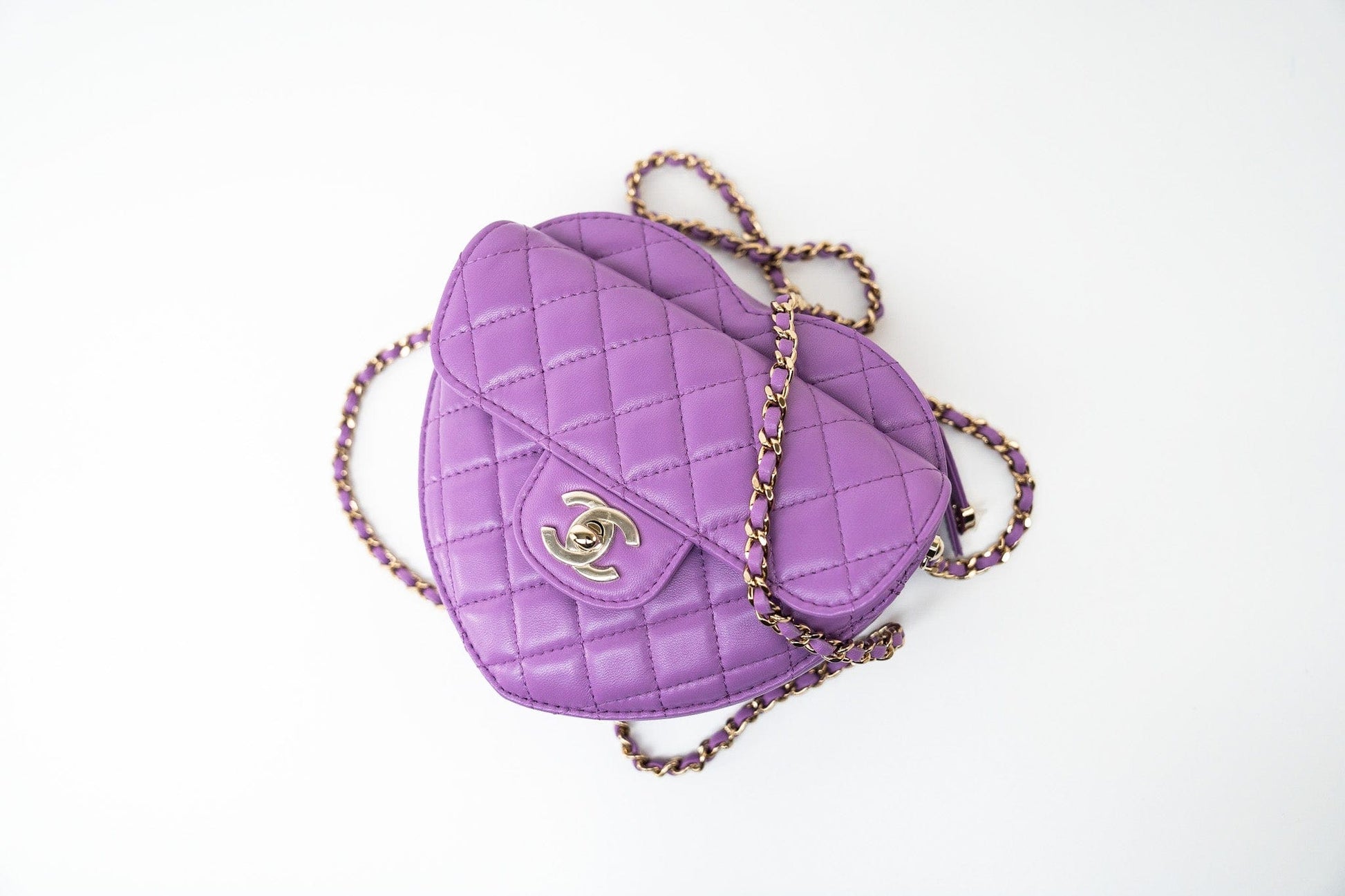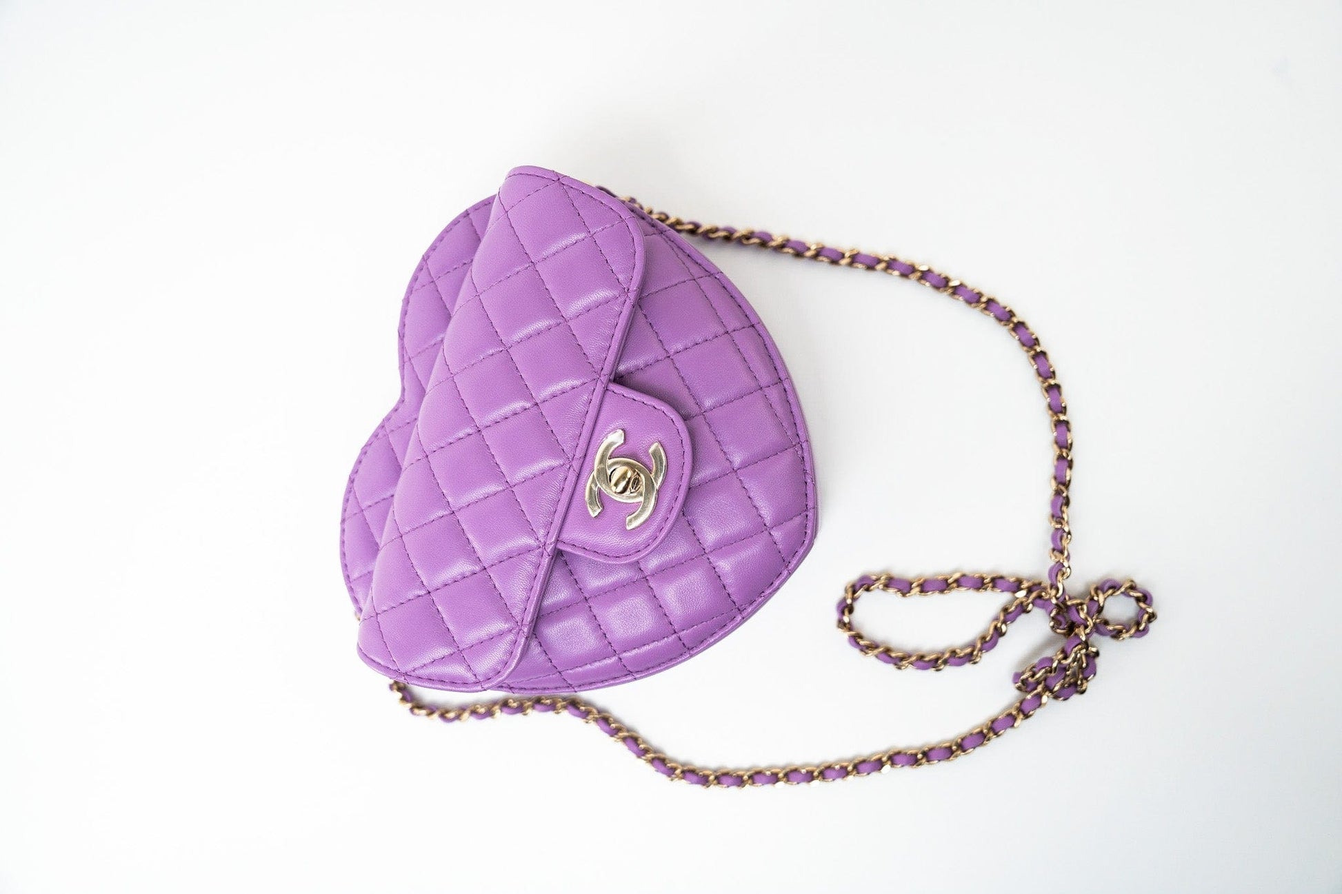 22S CC In Love Purple Lambskin Quilted Large Heart Bag