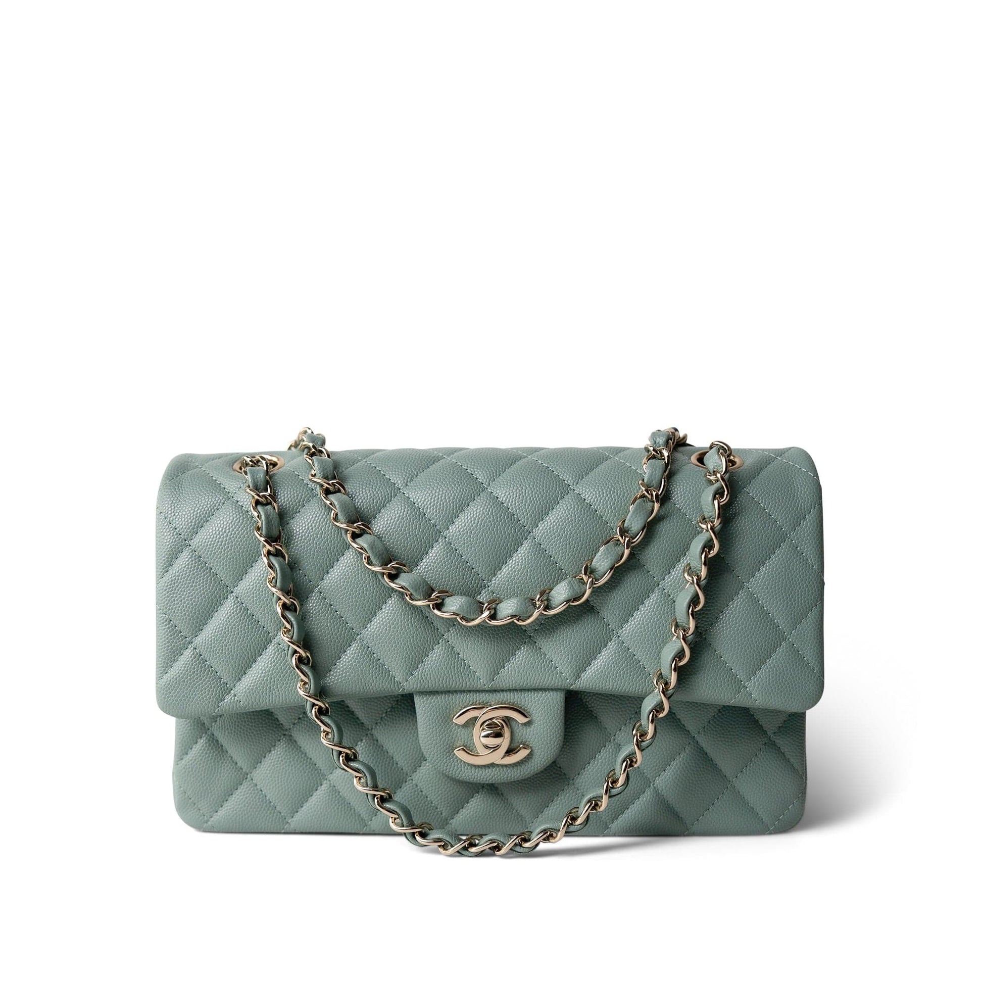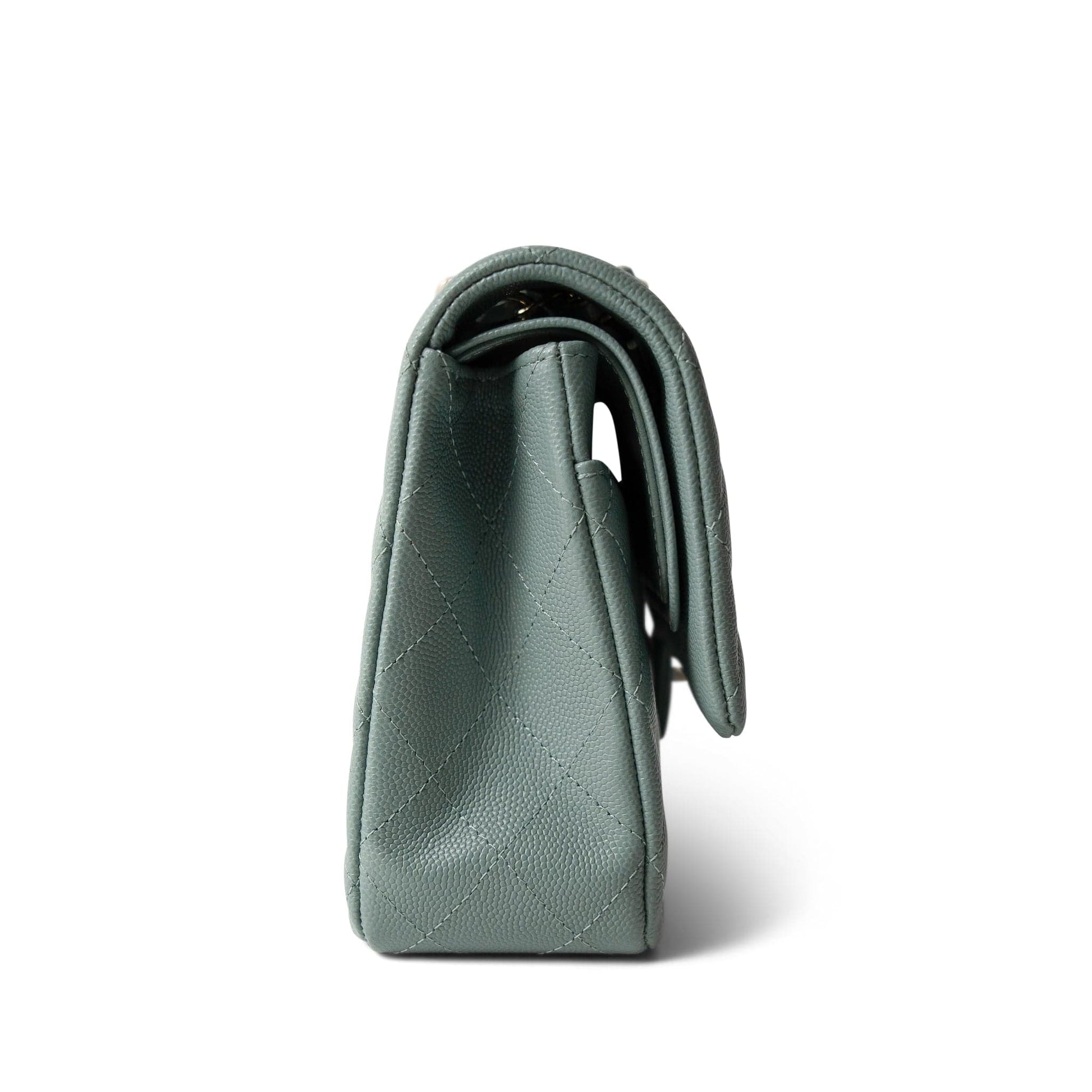 22C Dark Green Caviar Quilted Classic Flap Medium Light Gold Hardware