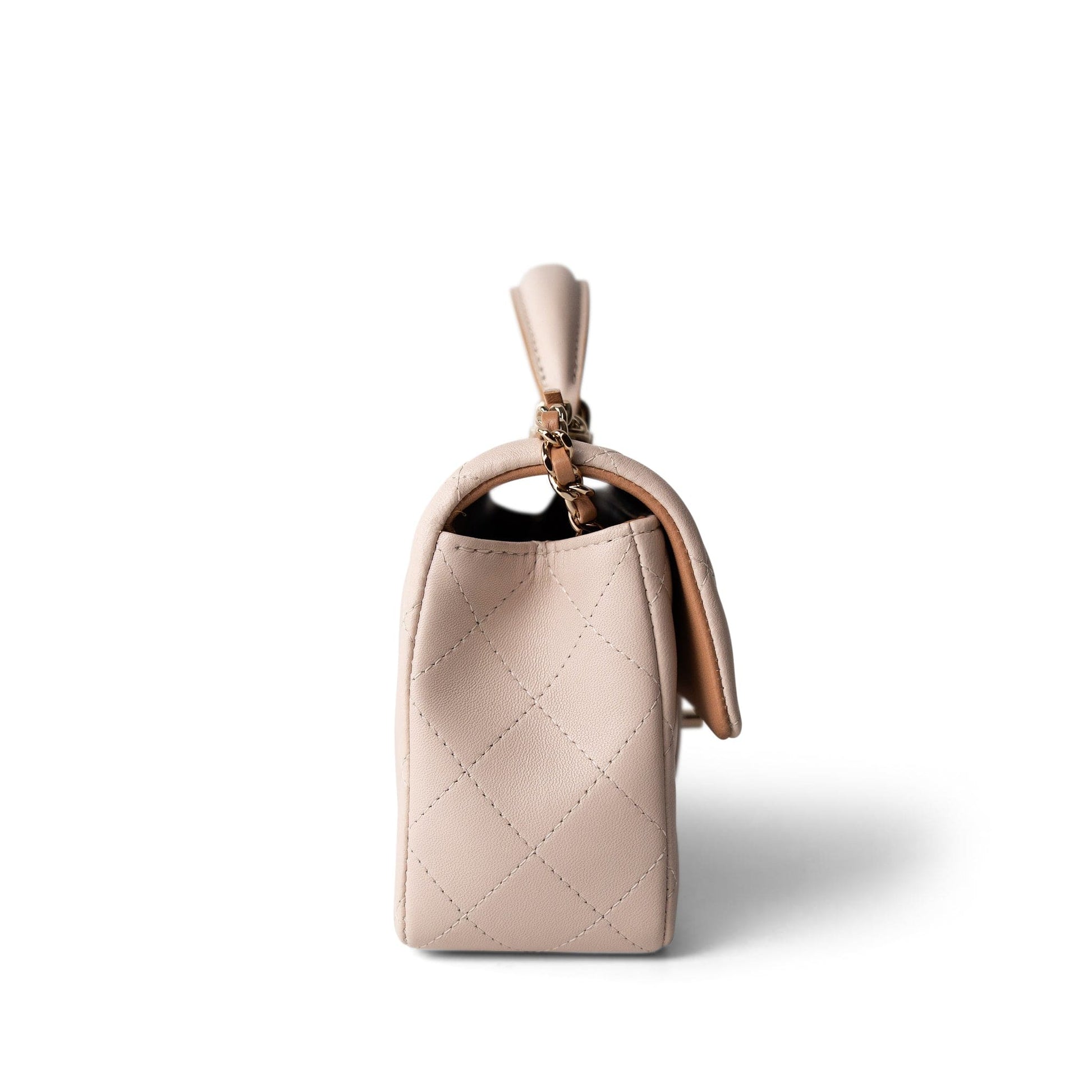 22C Light Beige / Beige Lambskin Quilted Mini Top Handle Light Gold Hardware