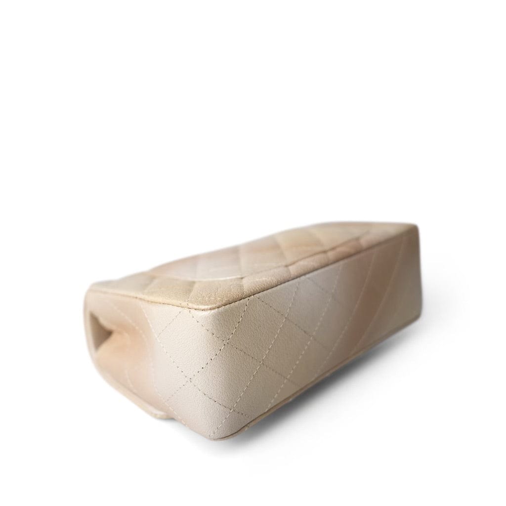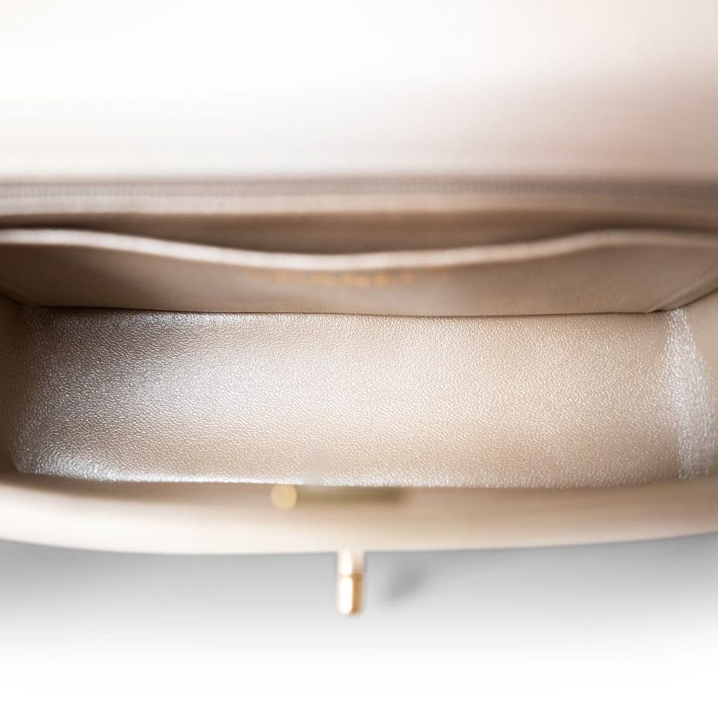 22C Mini Rectangular Flap Goatskin Quilted Golden Beige Aged Gold Hardware