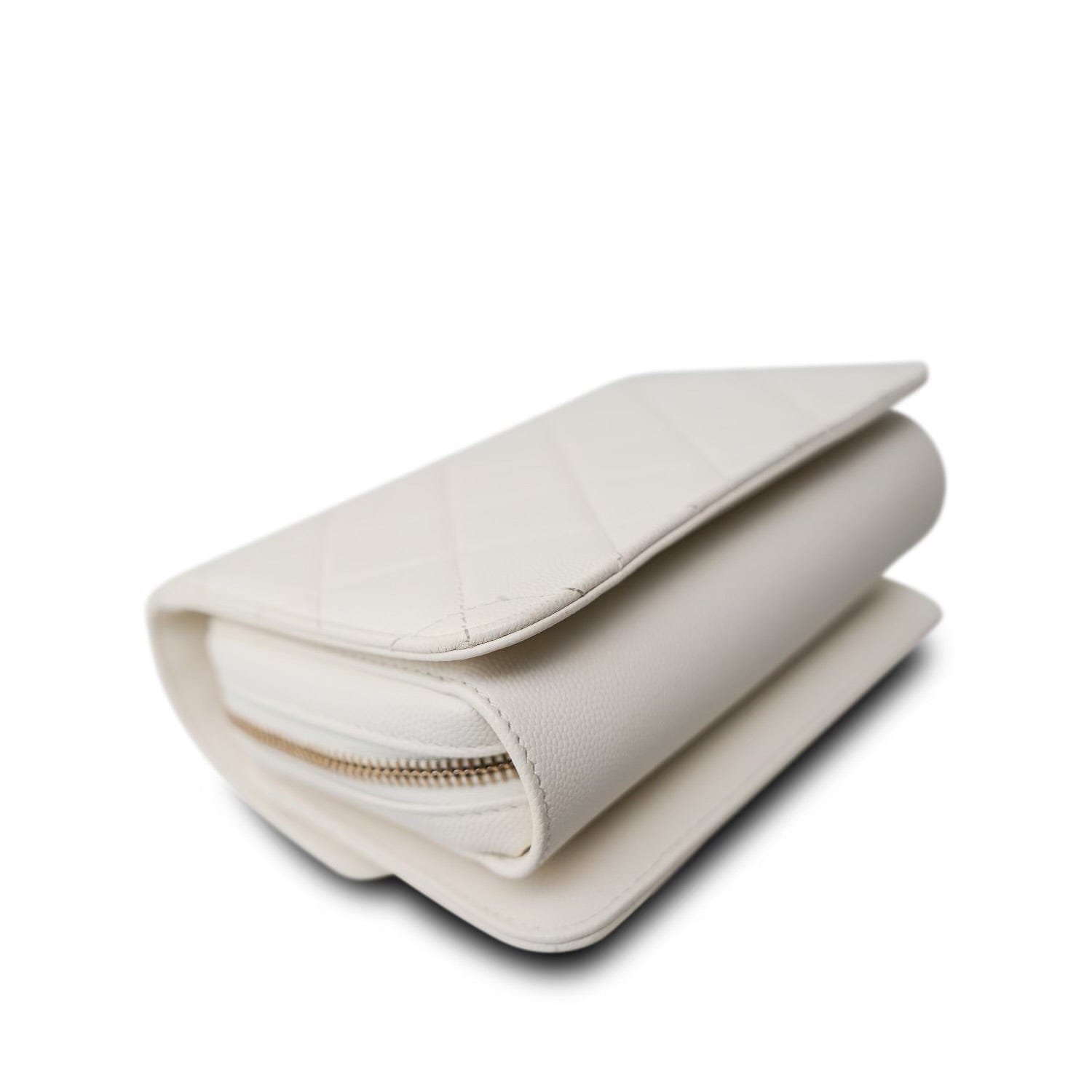 22C White Caviar Quilted Like A Wallet Flap Bag LGHW