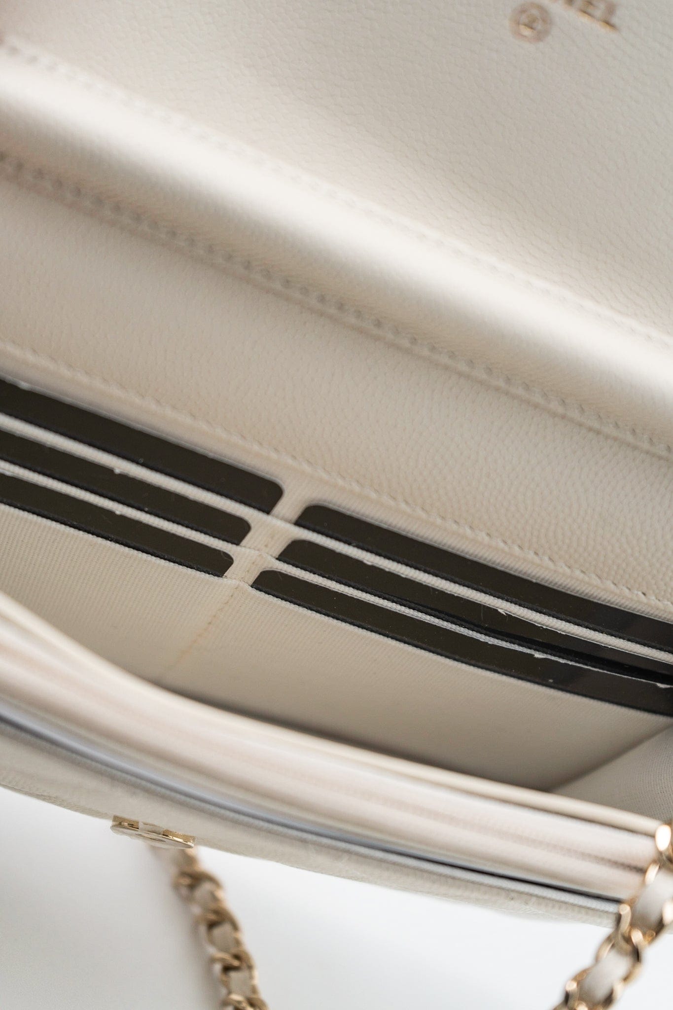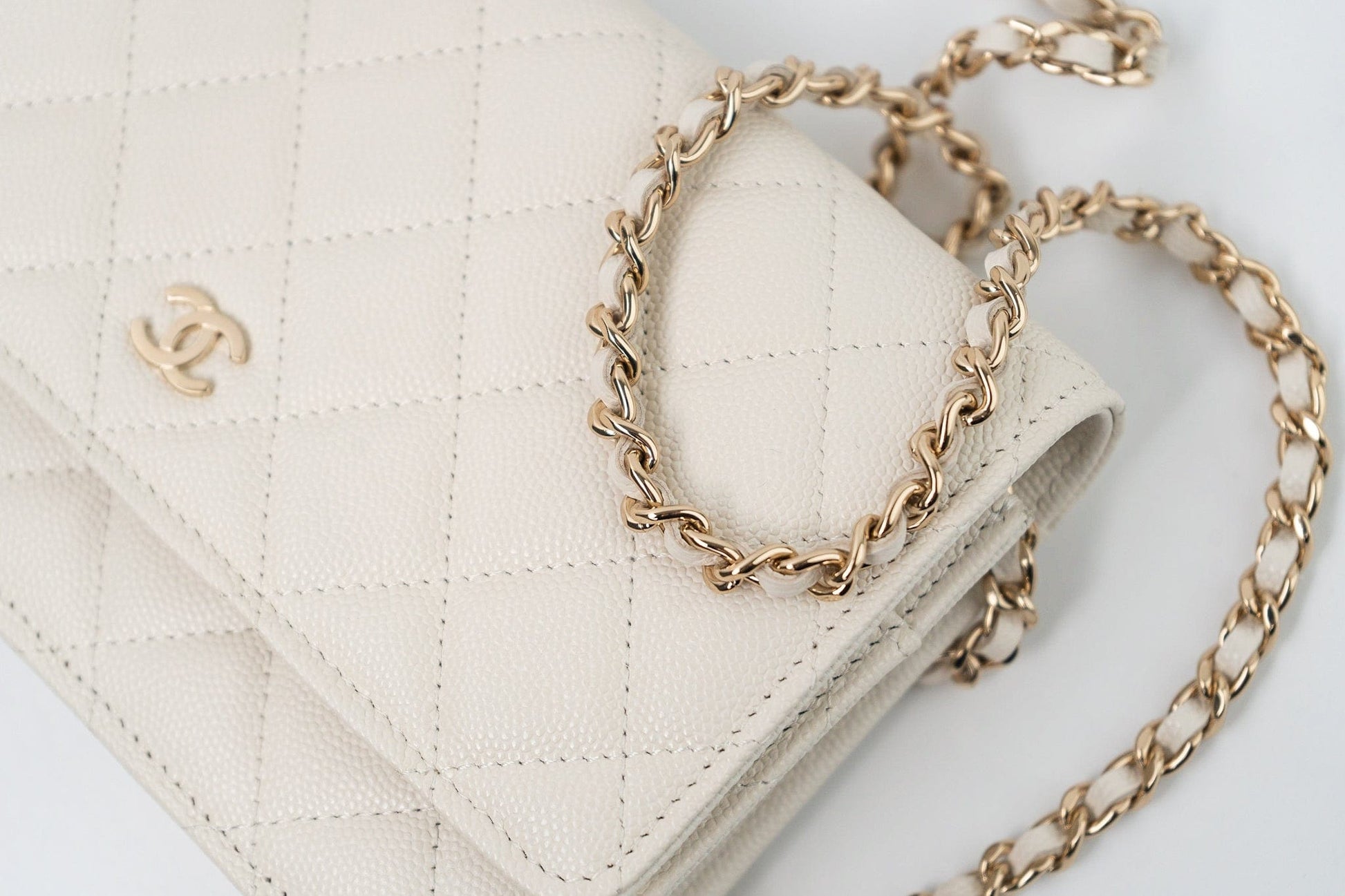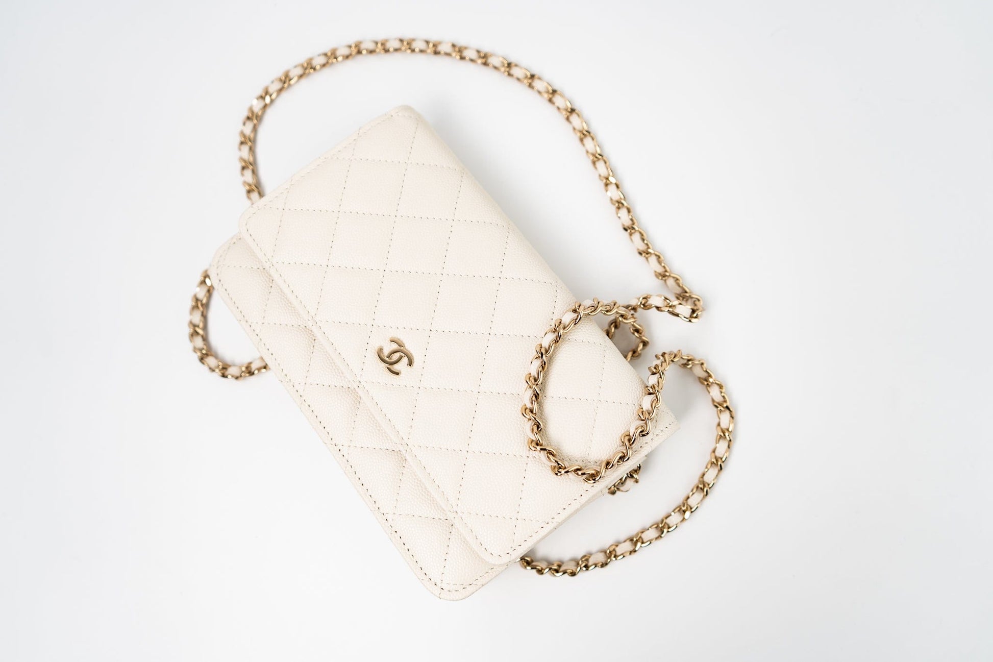 22C White Caviar Quilted Wallet On Chain WOC Light Gold Hardware