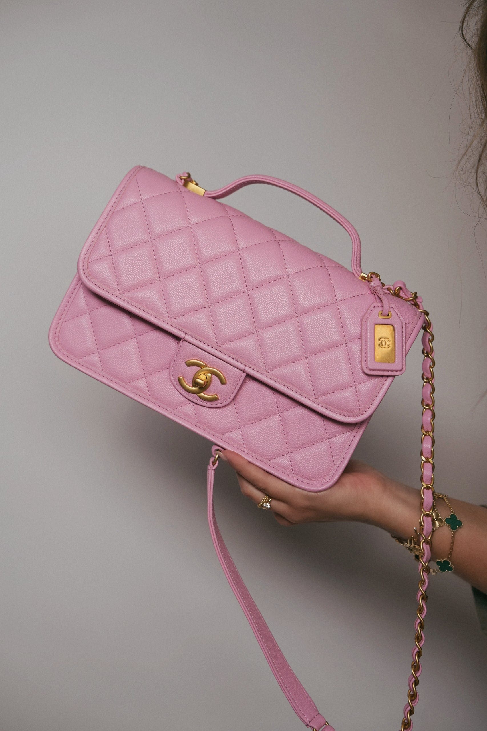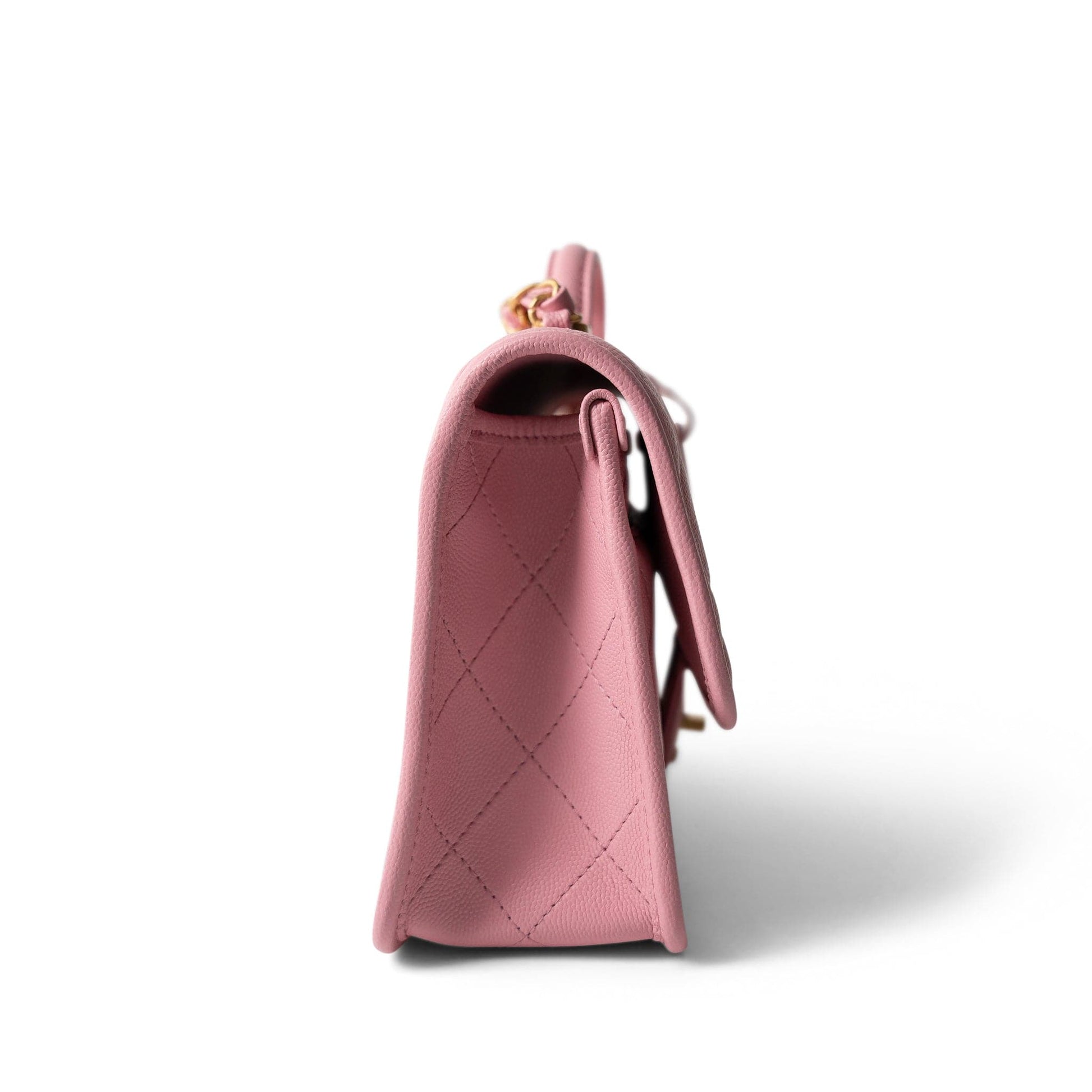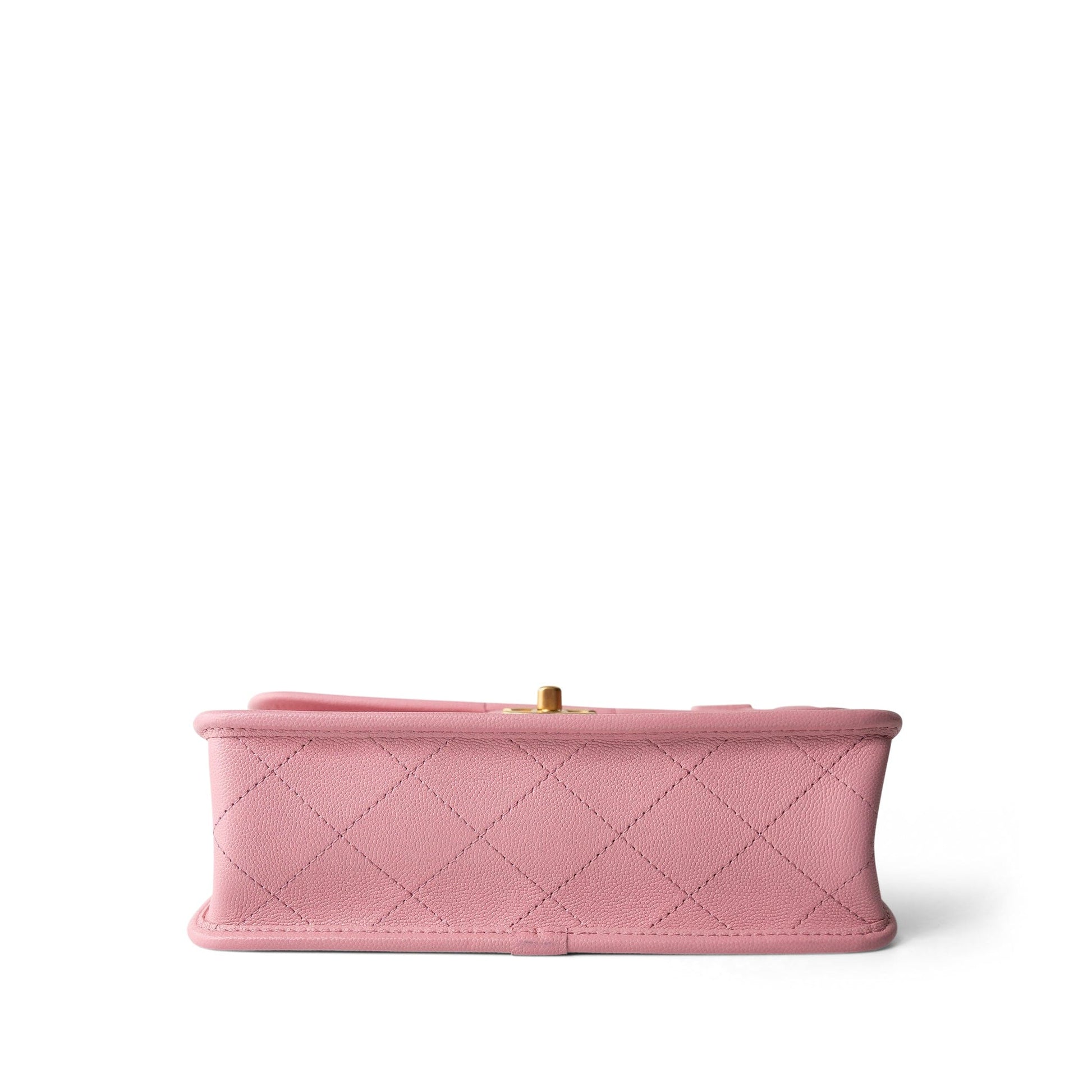 22K Pink Caviar Quilted School Memory Top Handle Flap Aged Gold Hardware