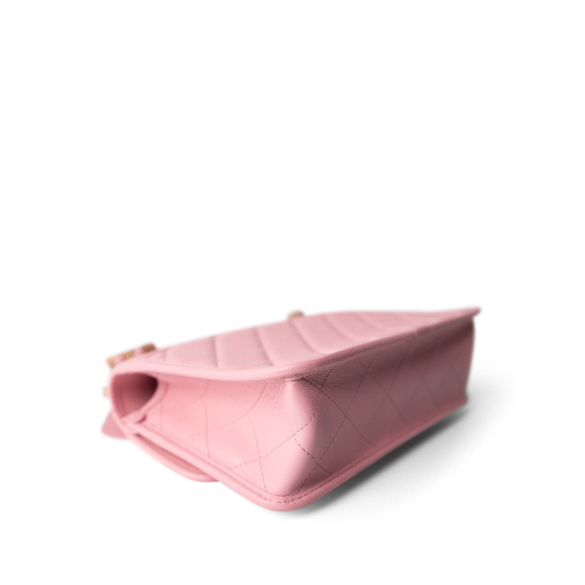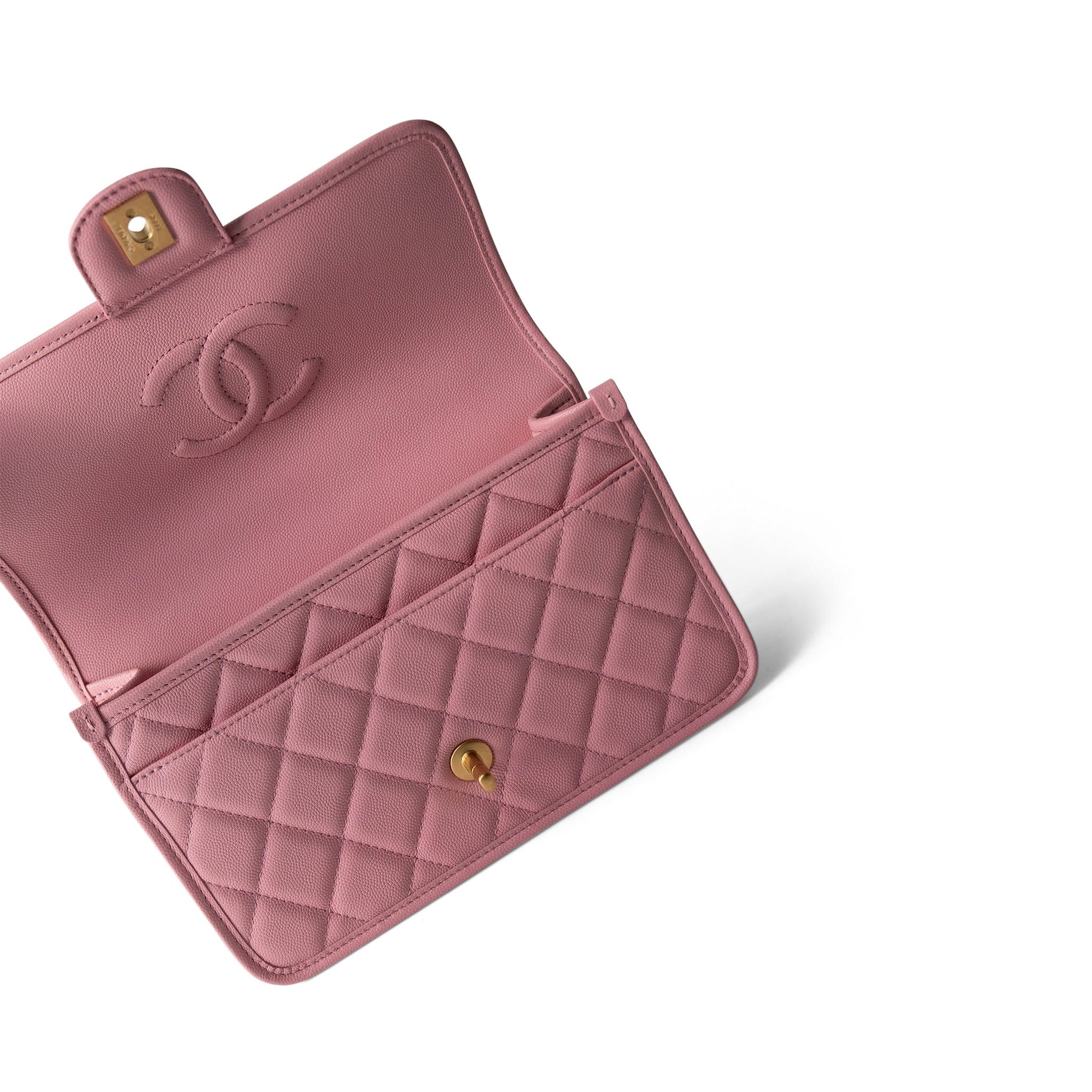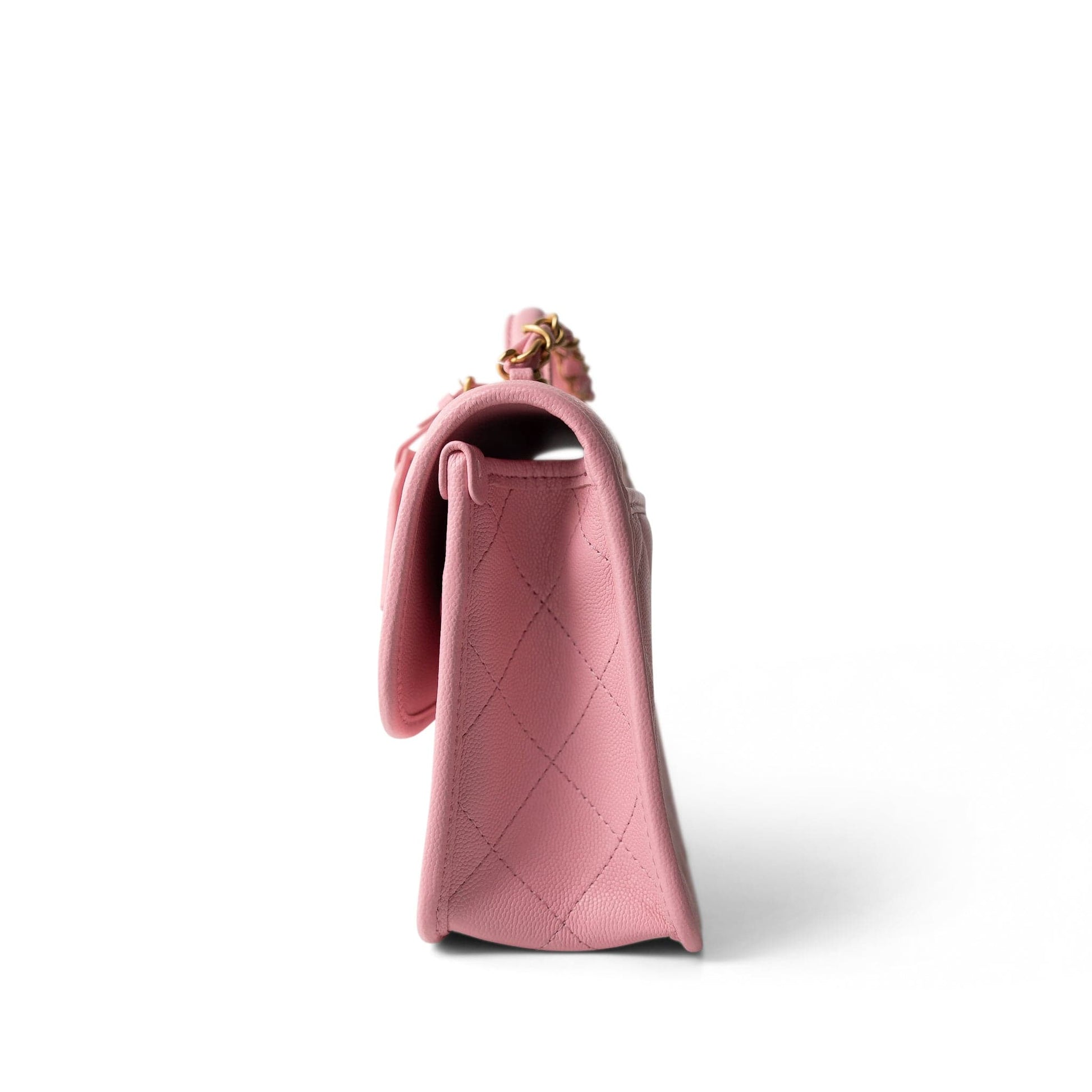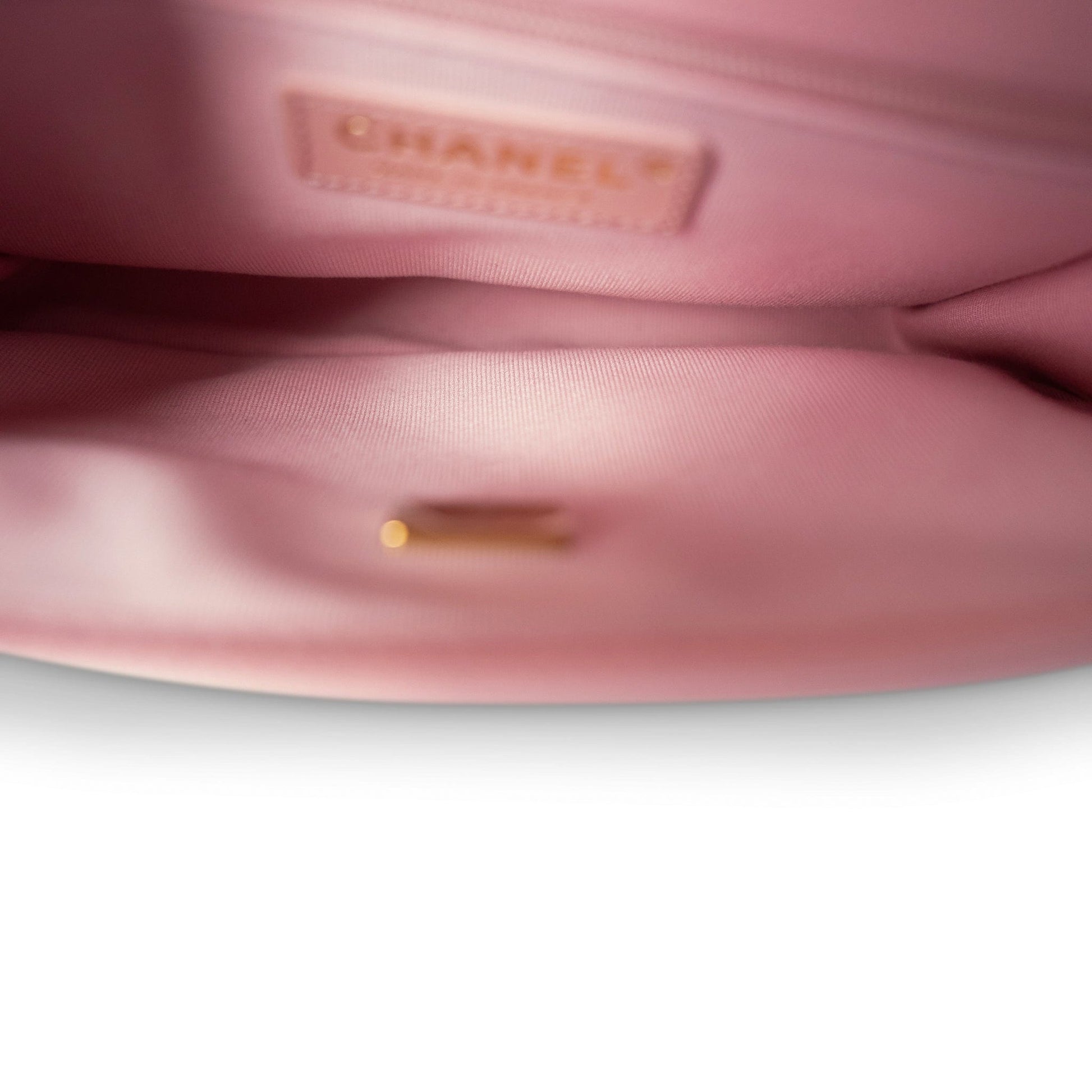 22K Pink Caviar Quilted School Memory Top Handle Flap Aged Gold Hardware
