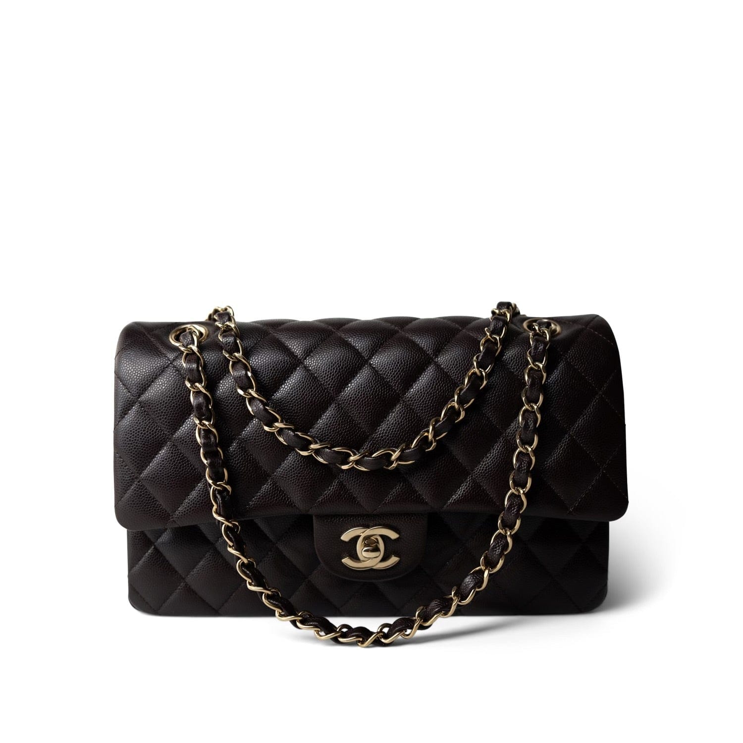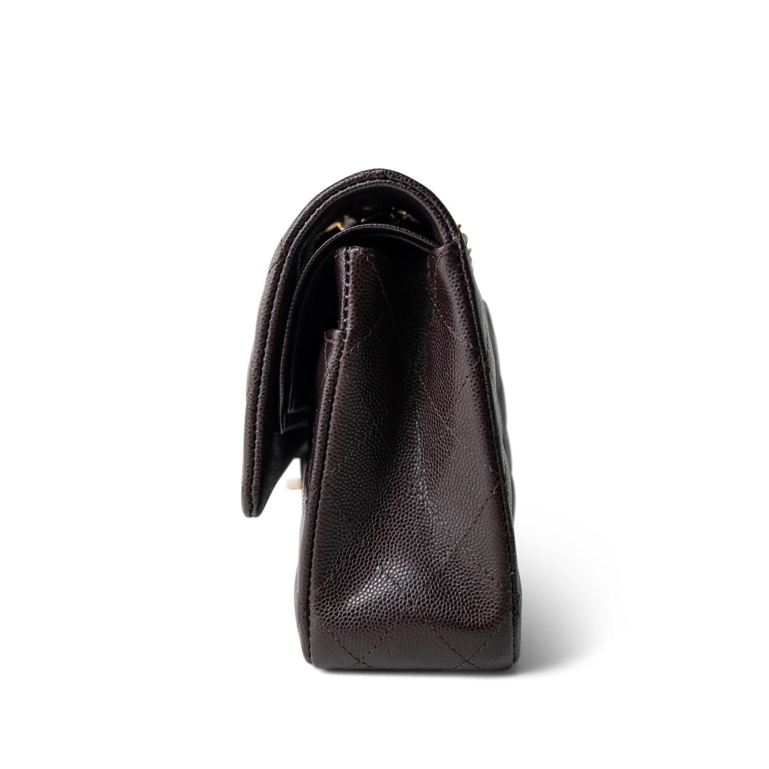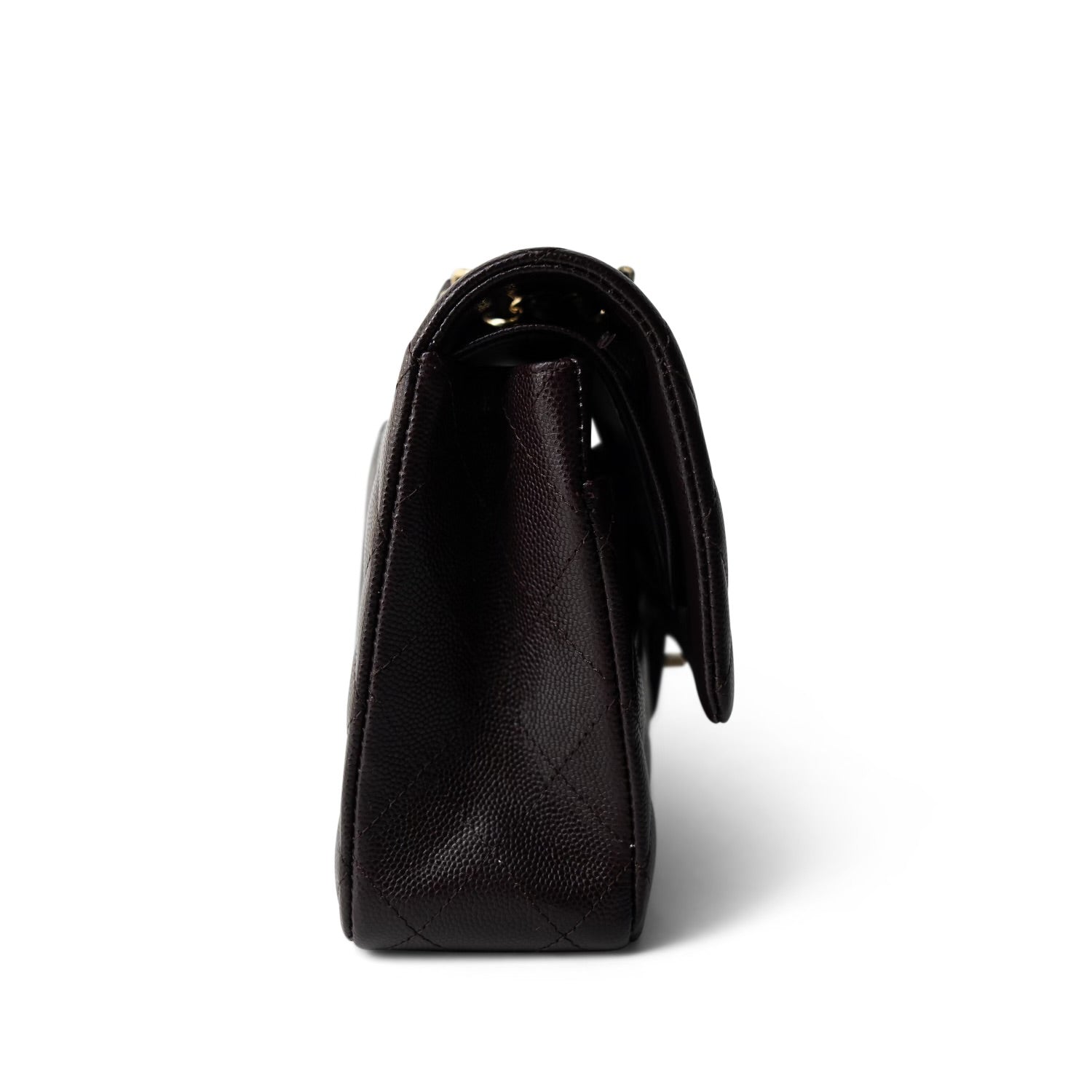 22K Plum Caviar Quilted Medium Classic Flap LGHW