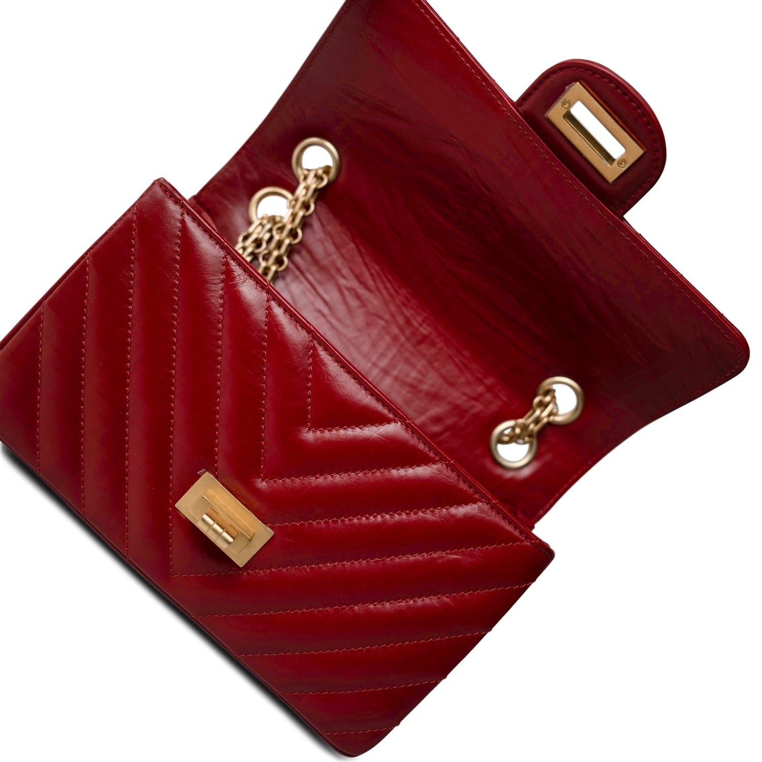 22K Red Aged Calfskin Chevron 255 Reissue Aged Gold Hardware