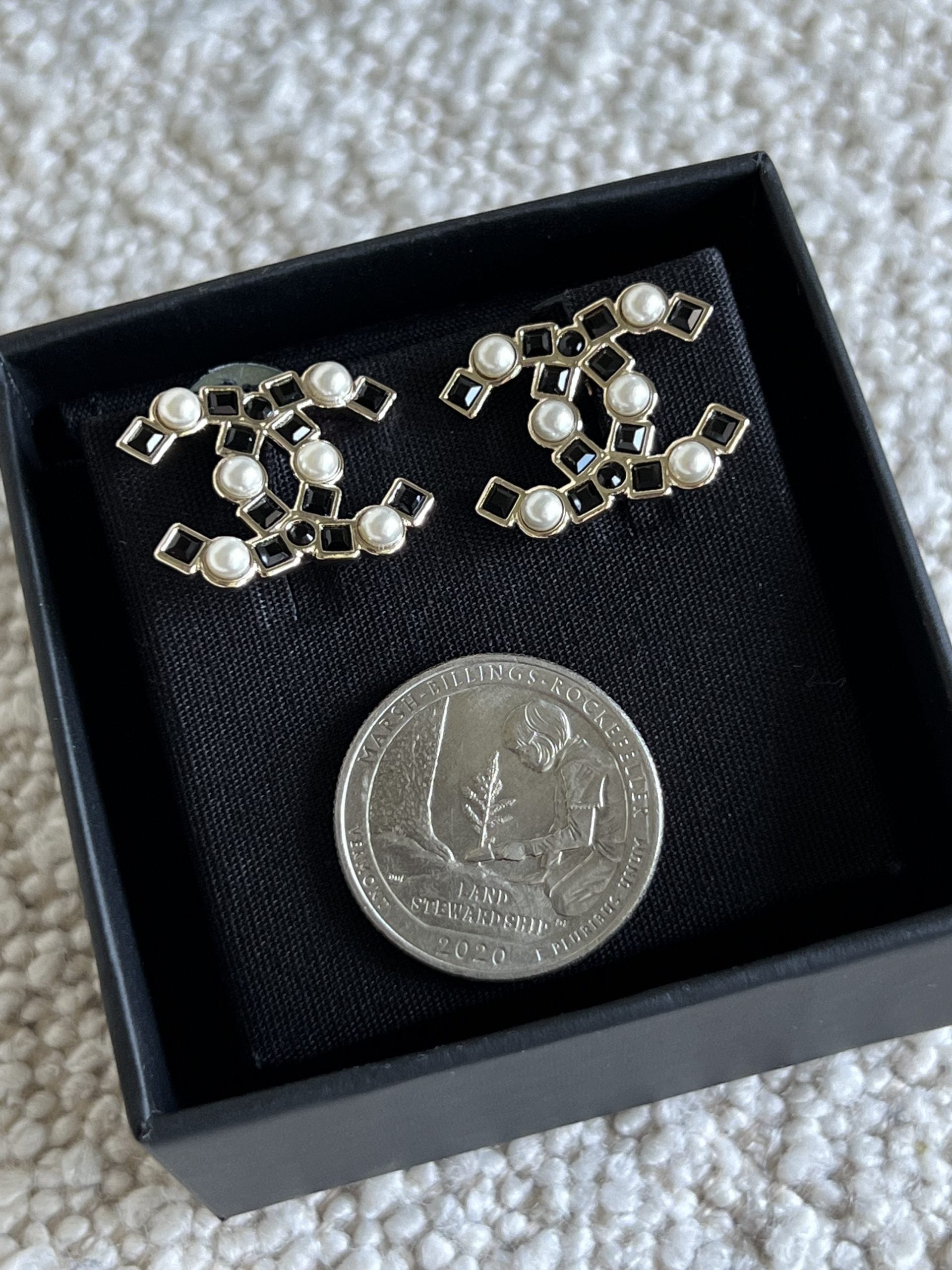 22P Gold Black Crystal Pearl Earrings