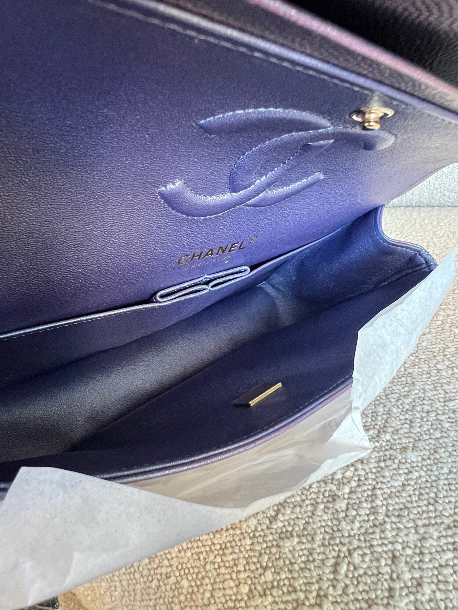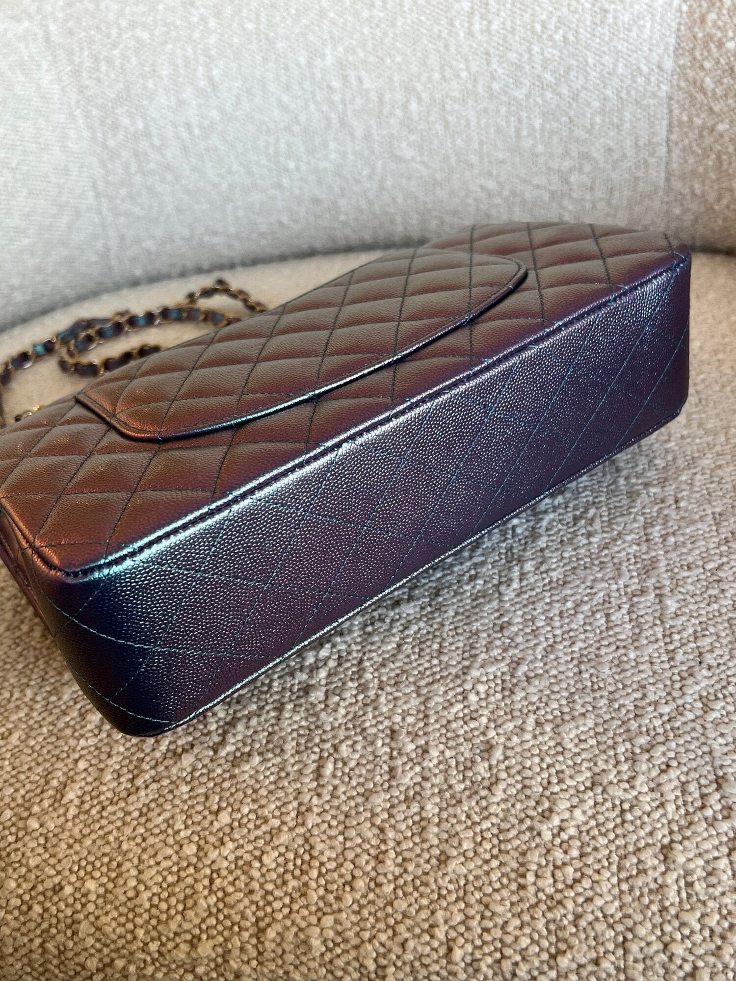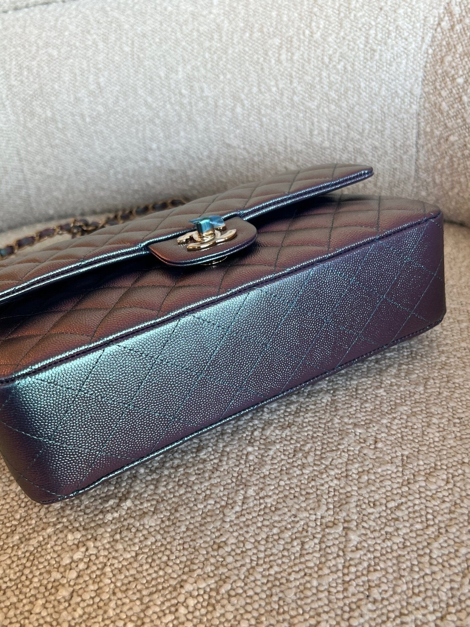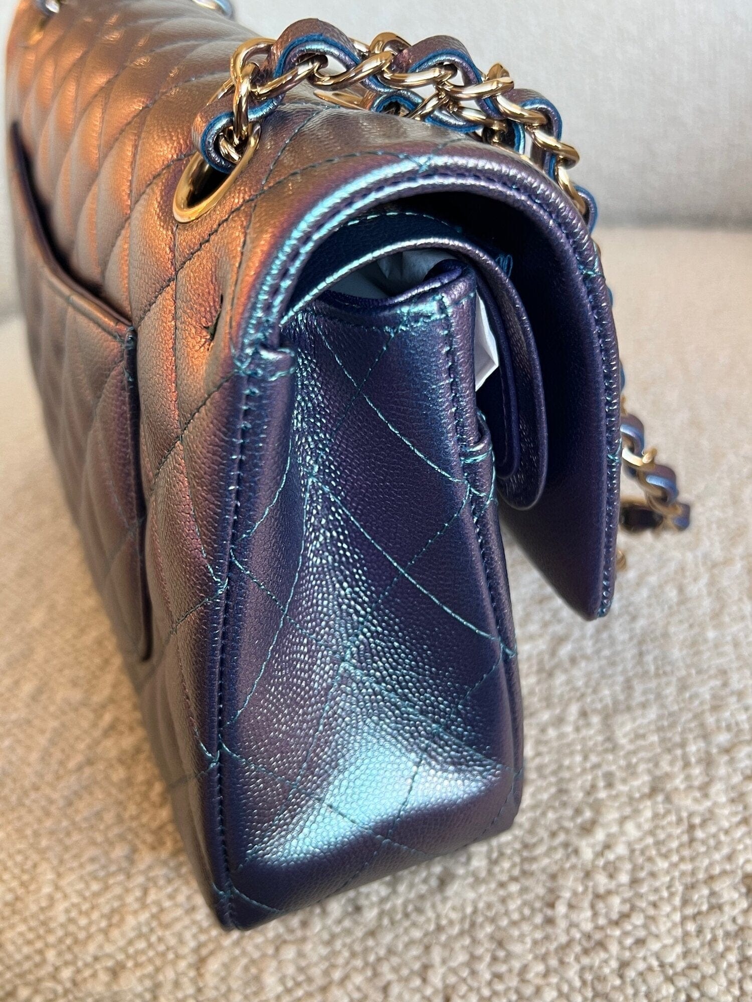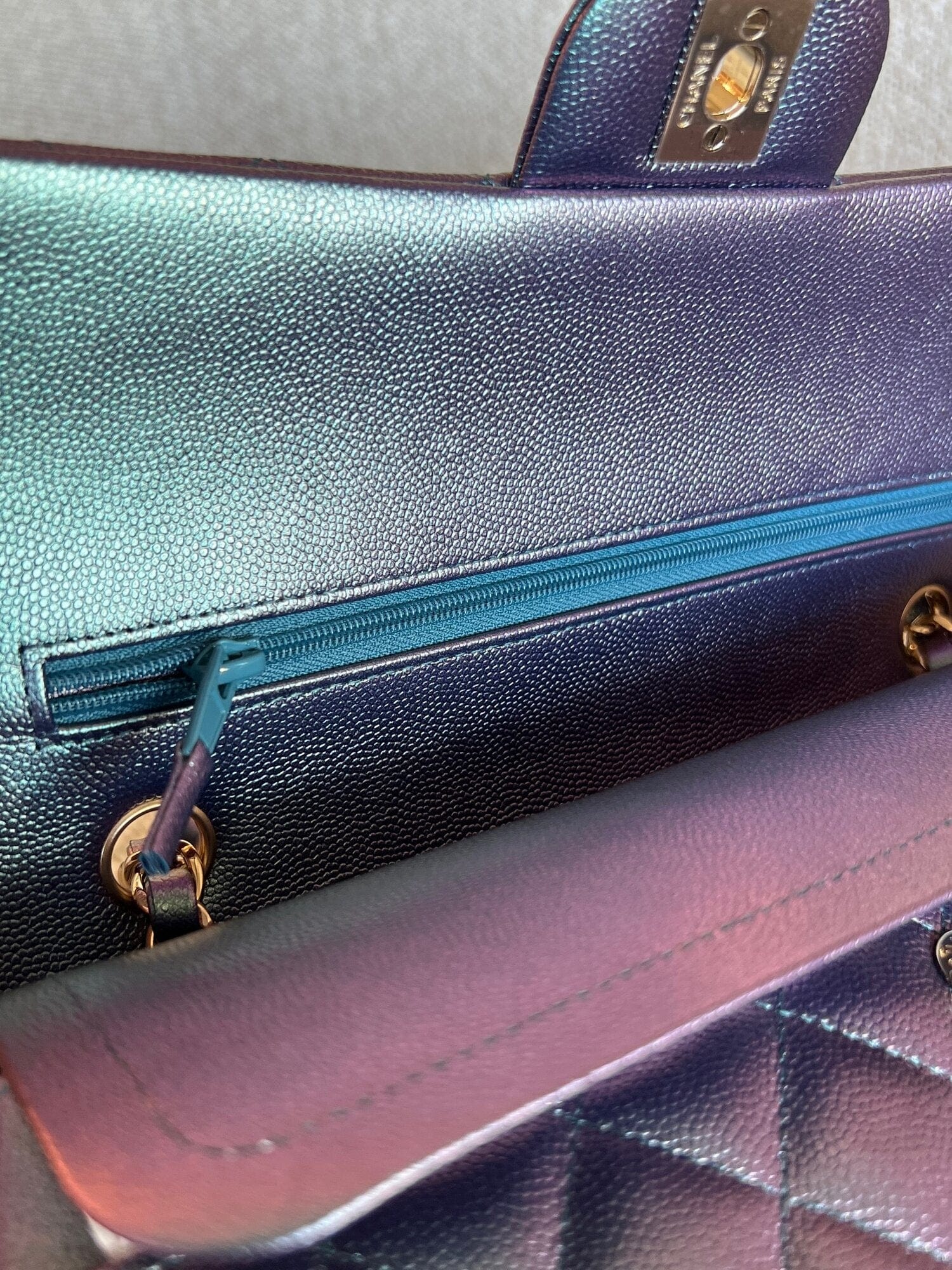 22P Iridescent Purple Caviar Quilted Medium Double Flap