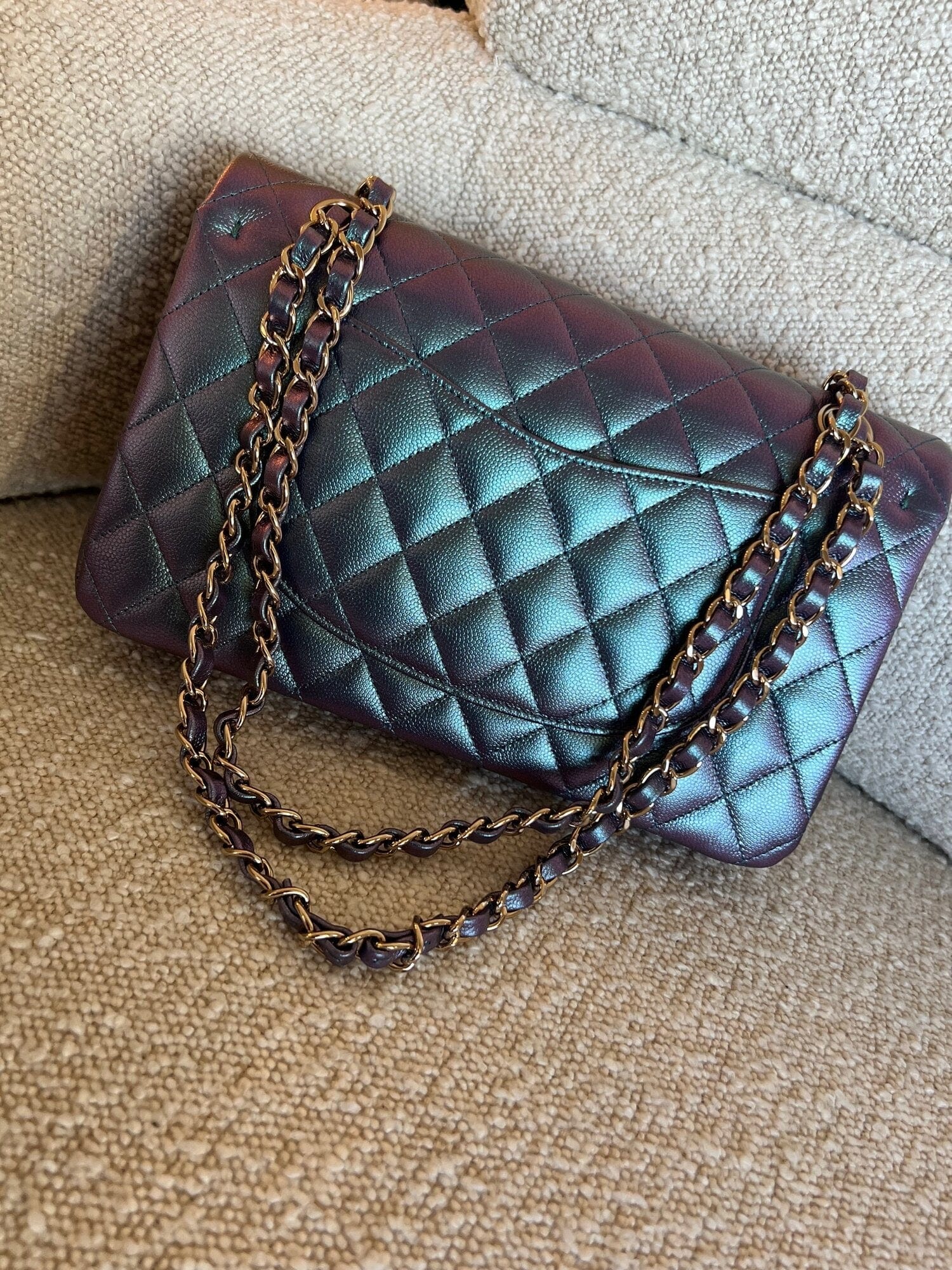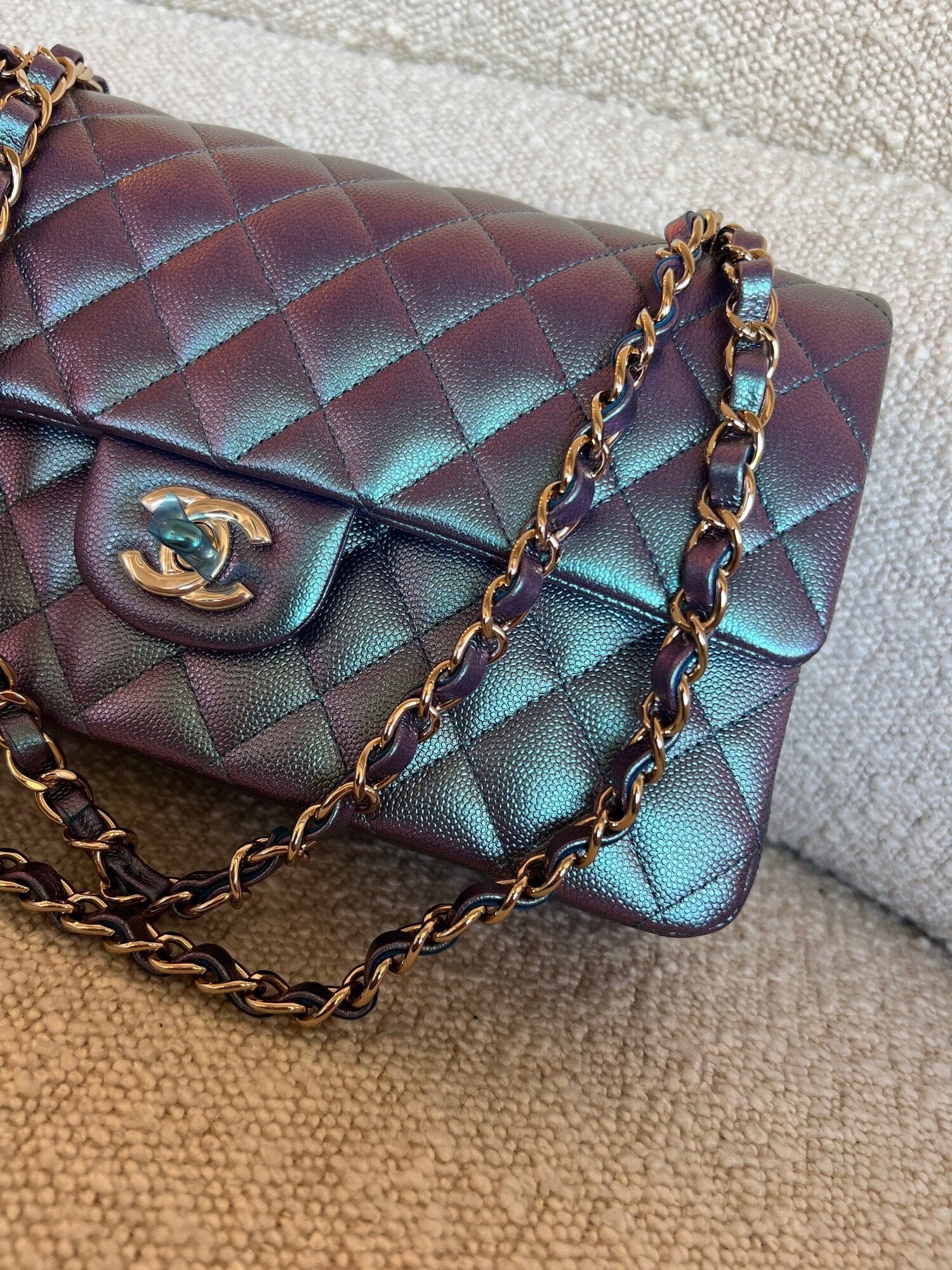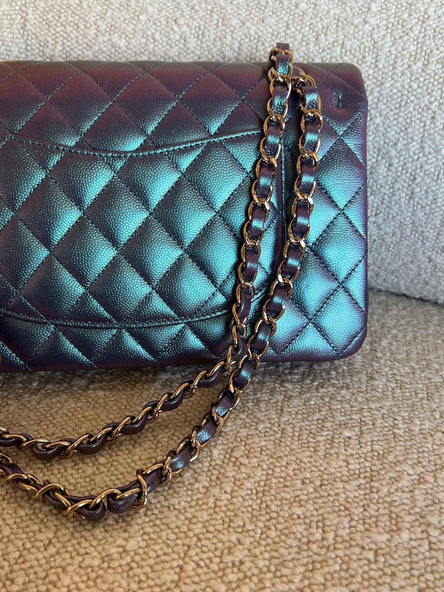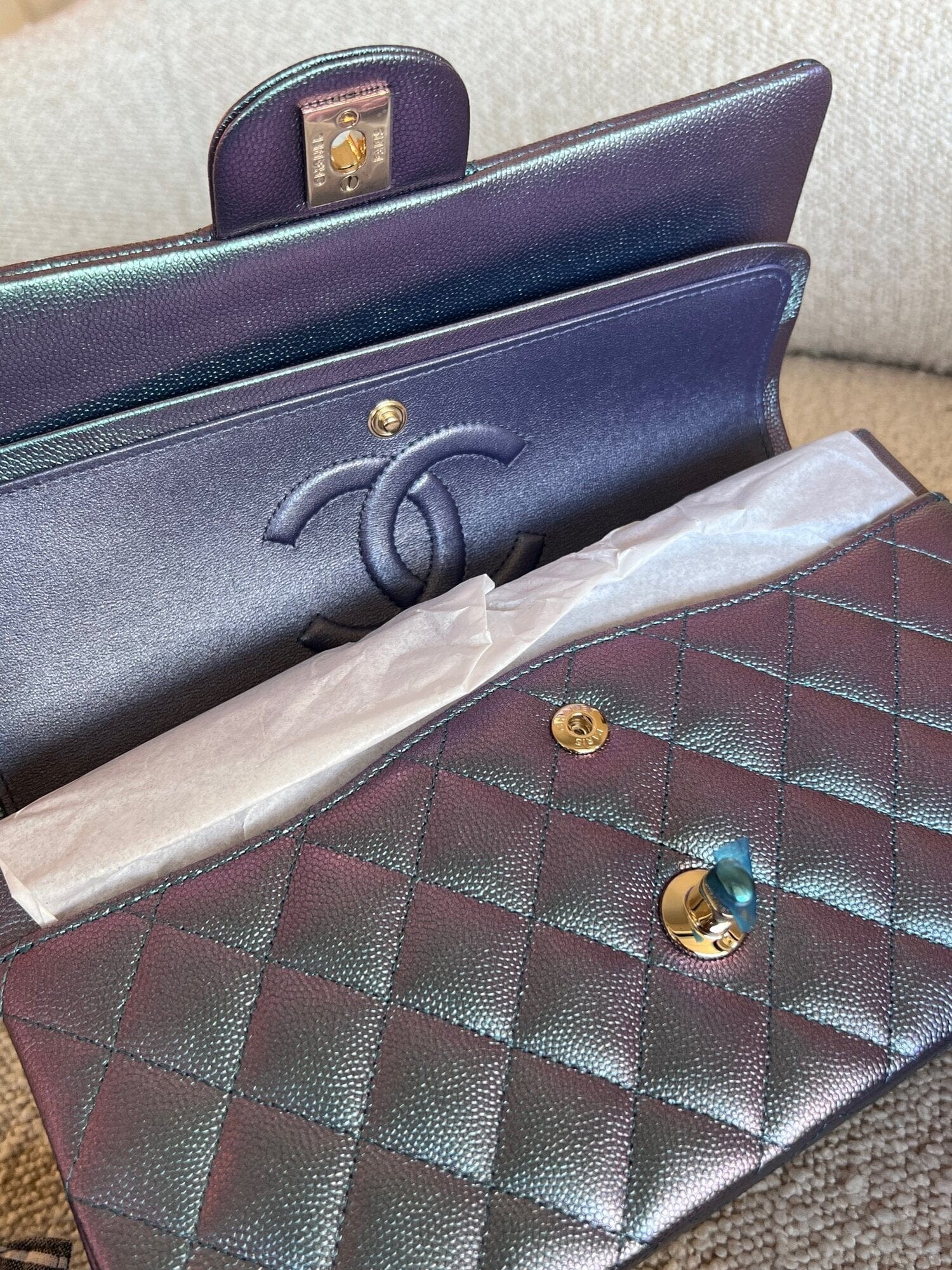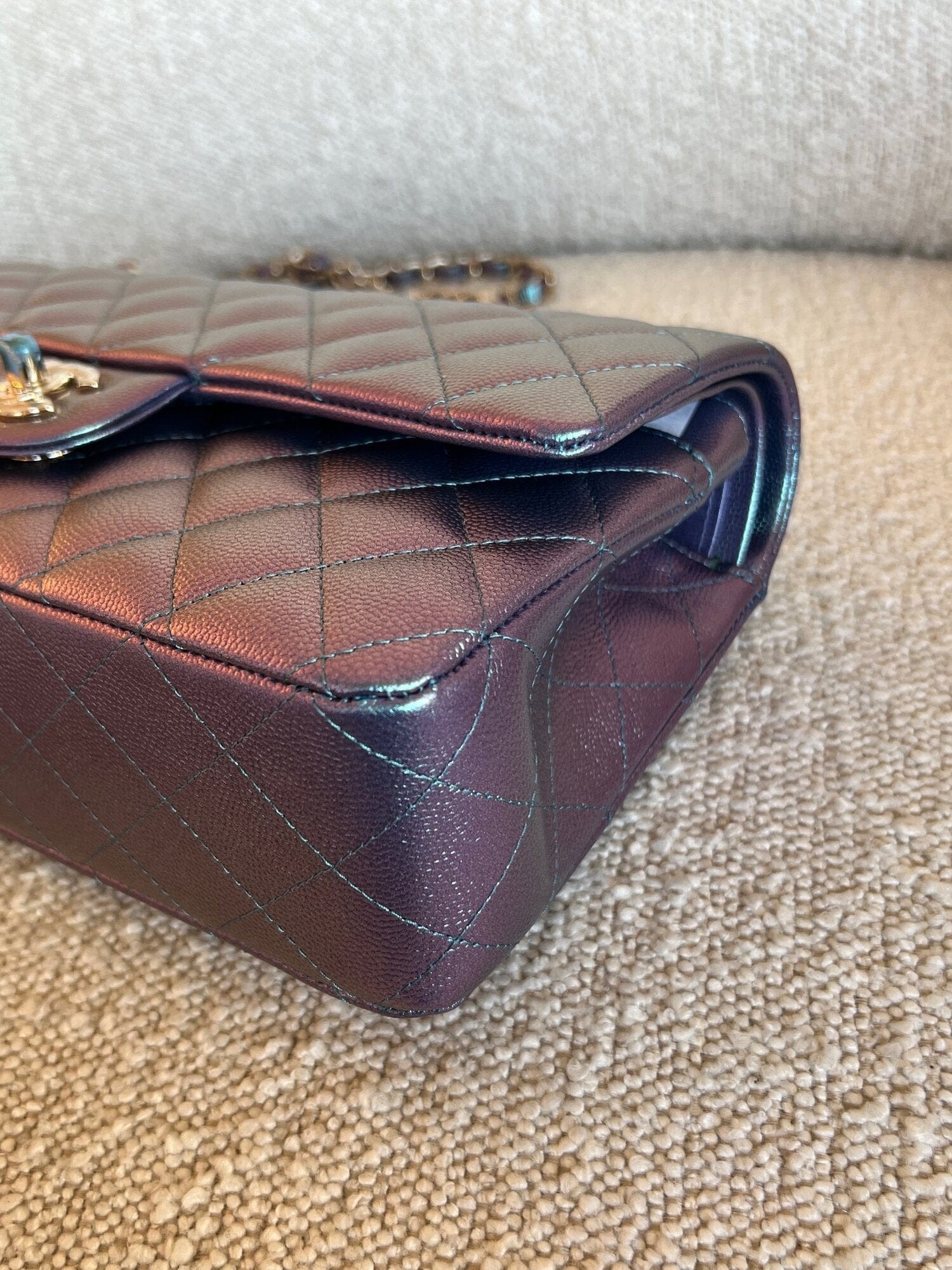 22P Iridescent Purple Caviar Quilted Medium Double Flap