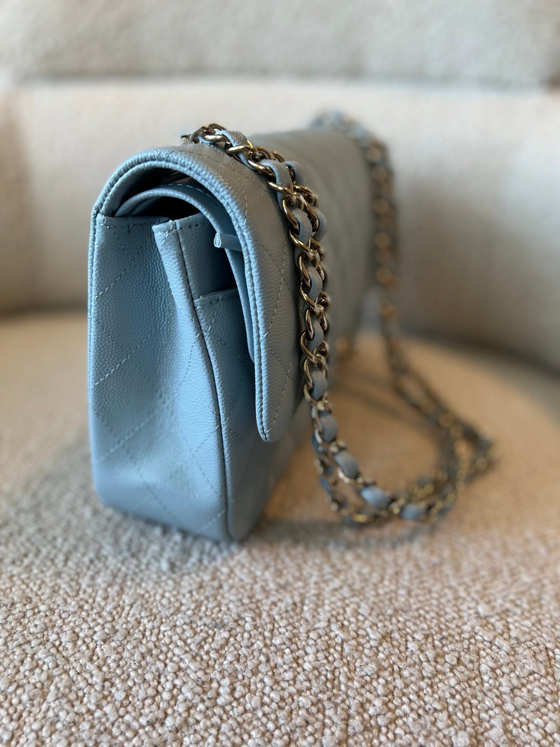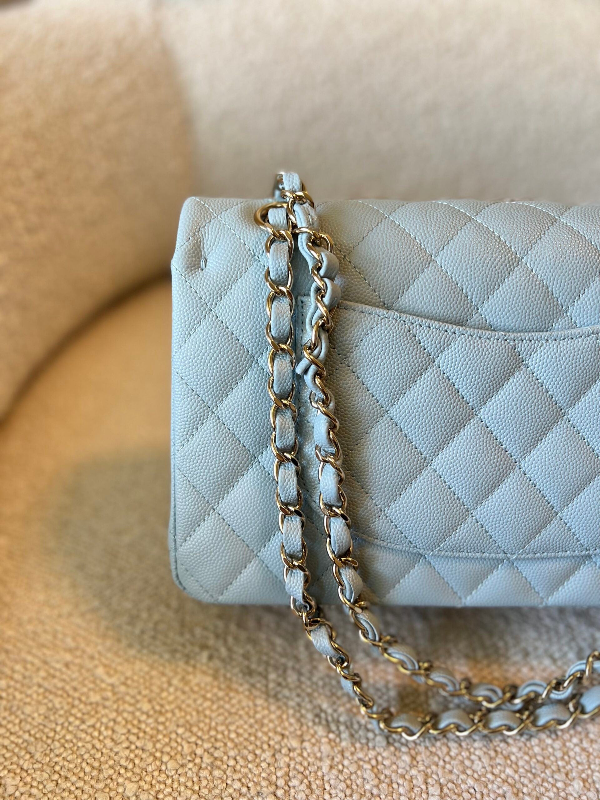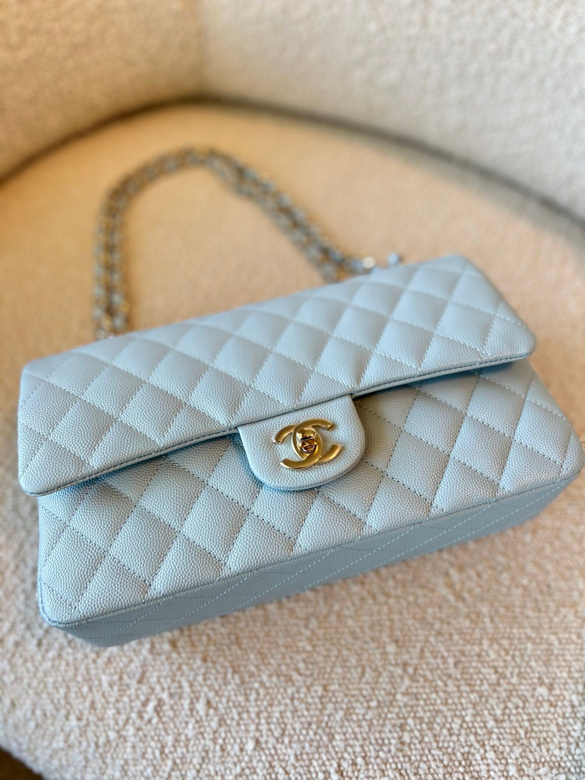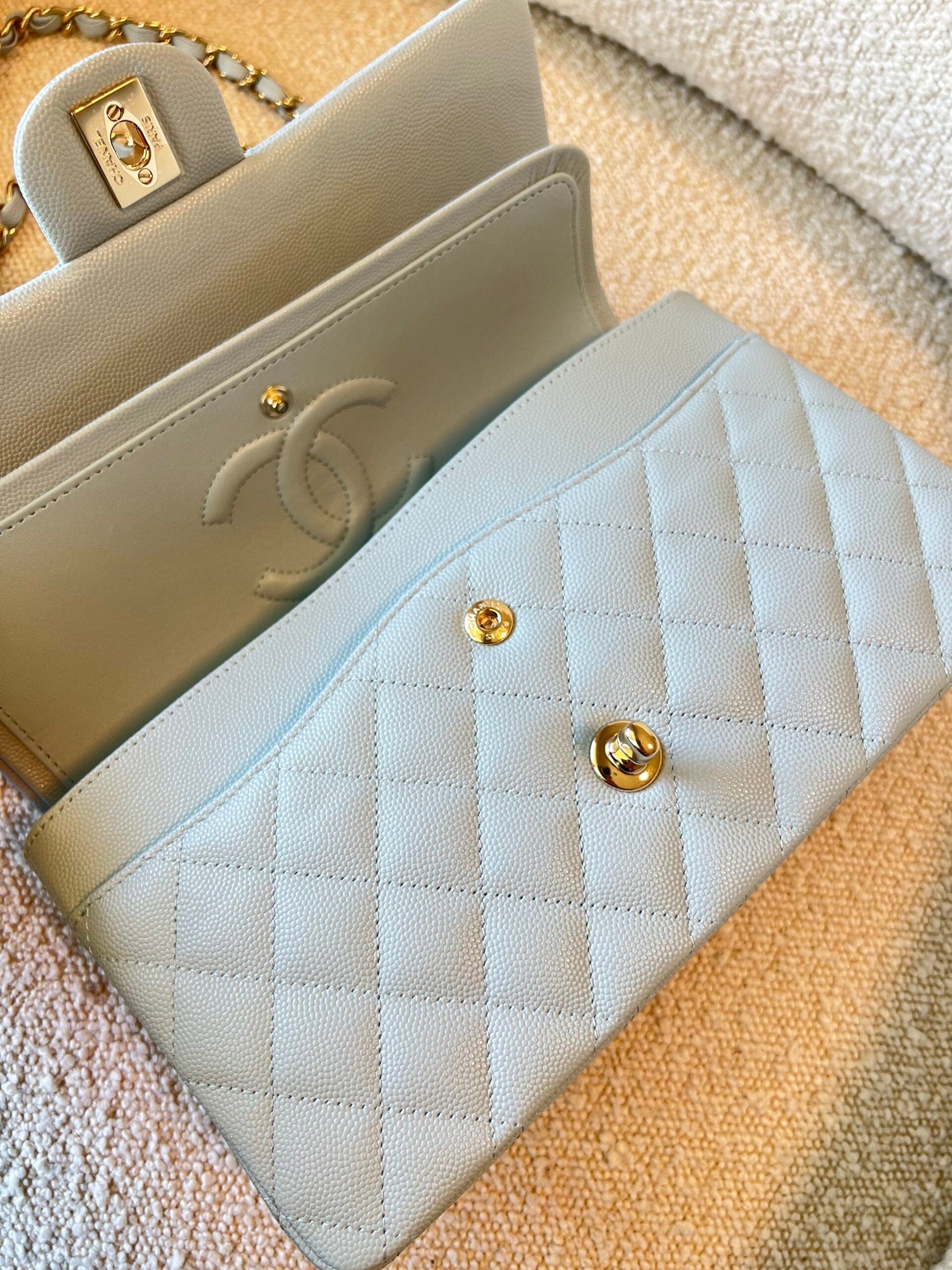 22P Light Blue Caviar Quilted Classic Flap Medium LGHW
