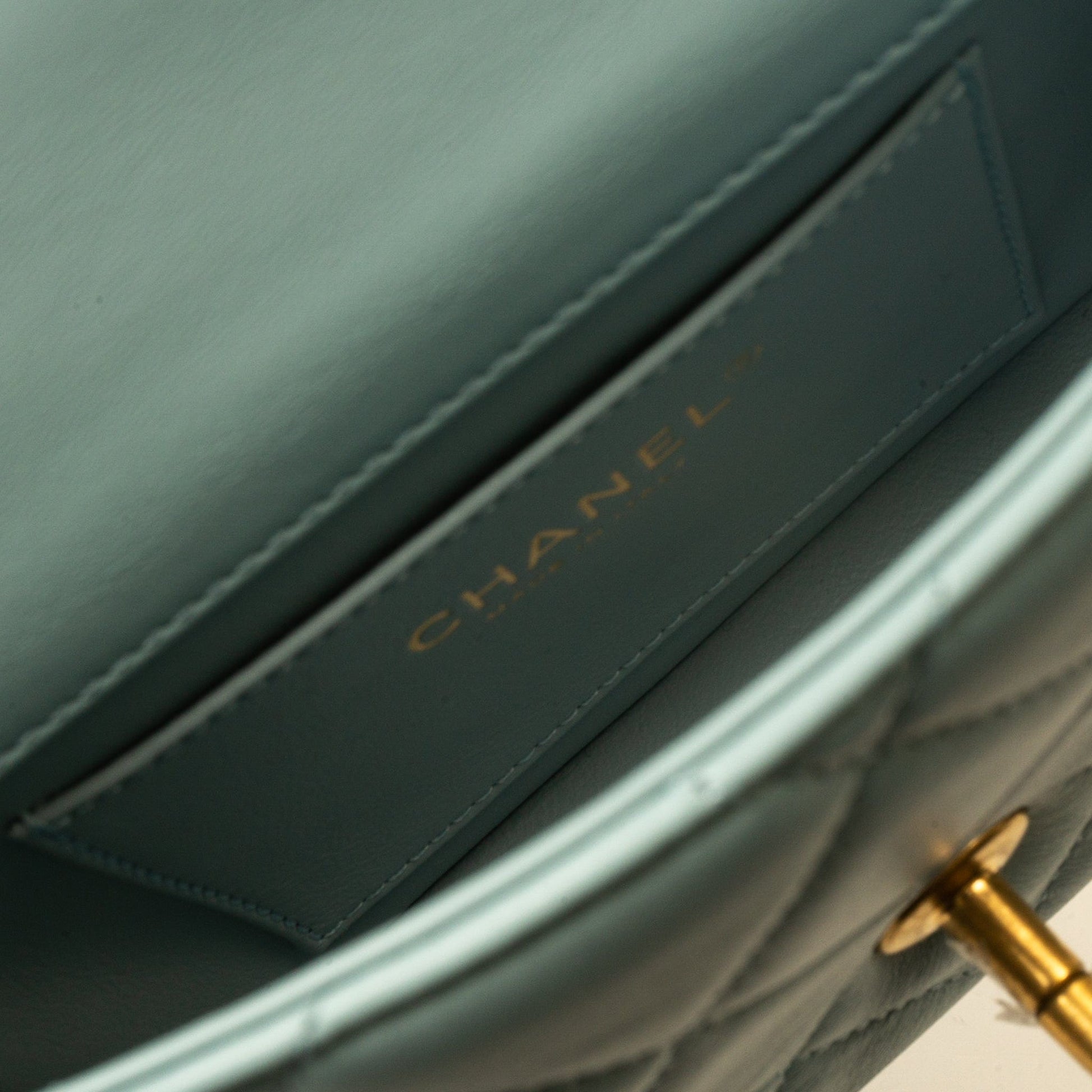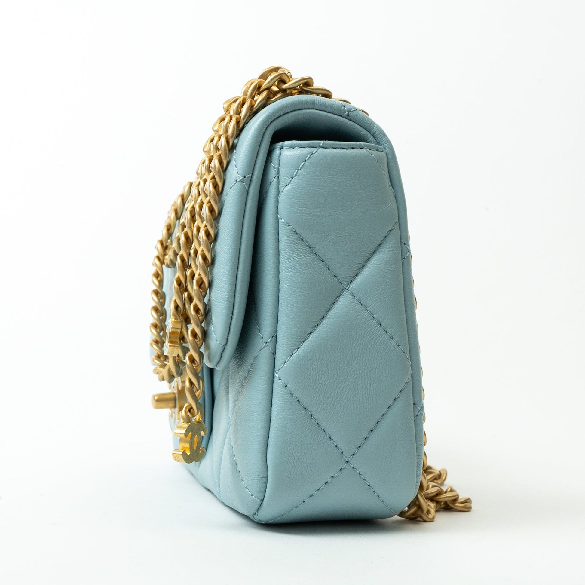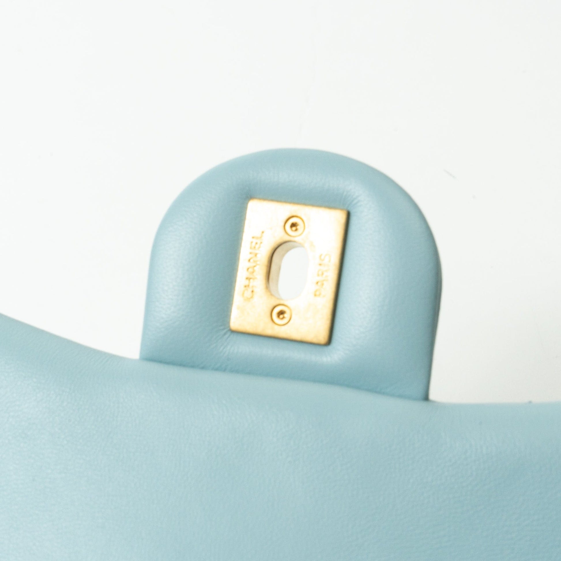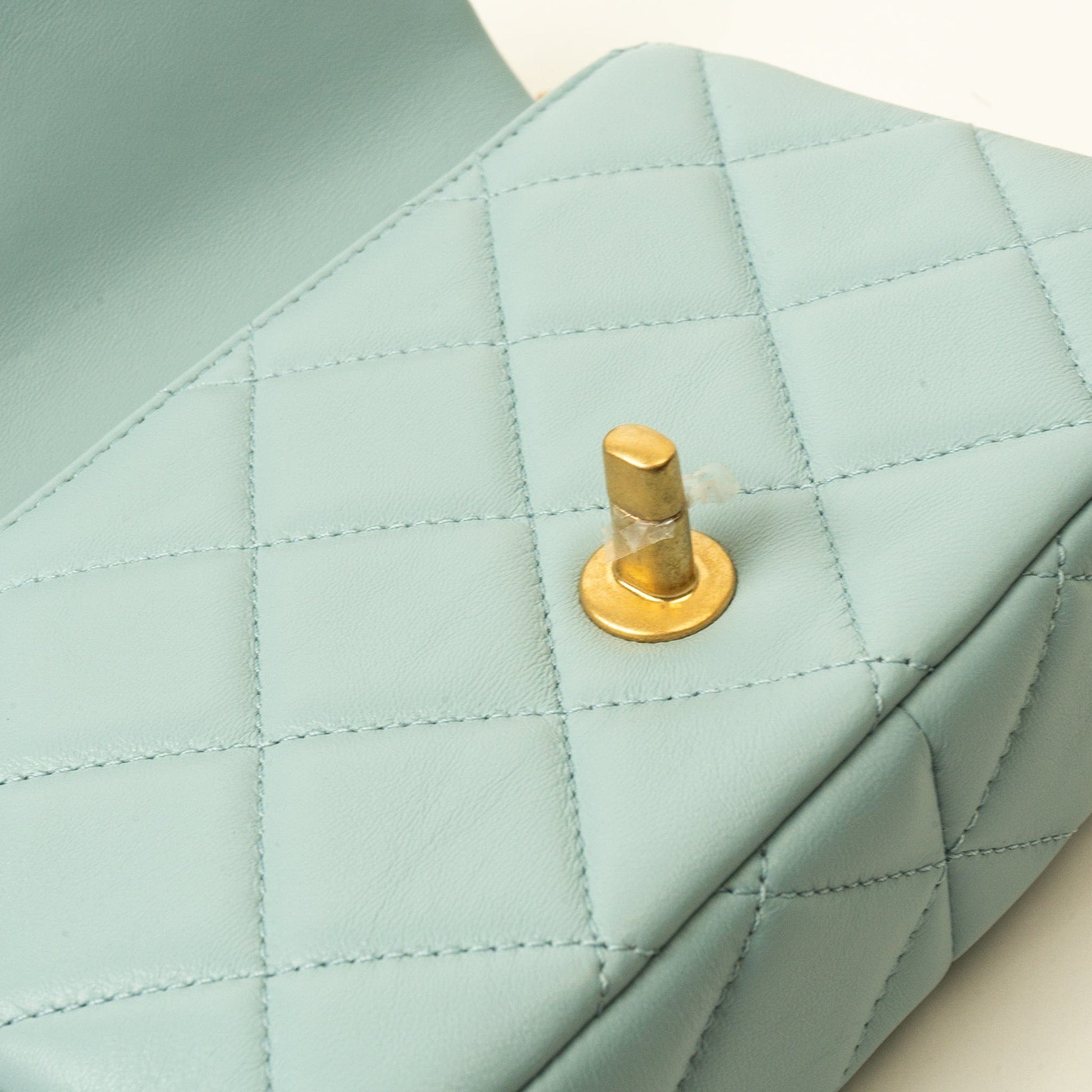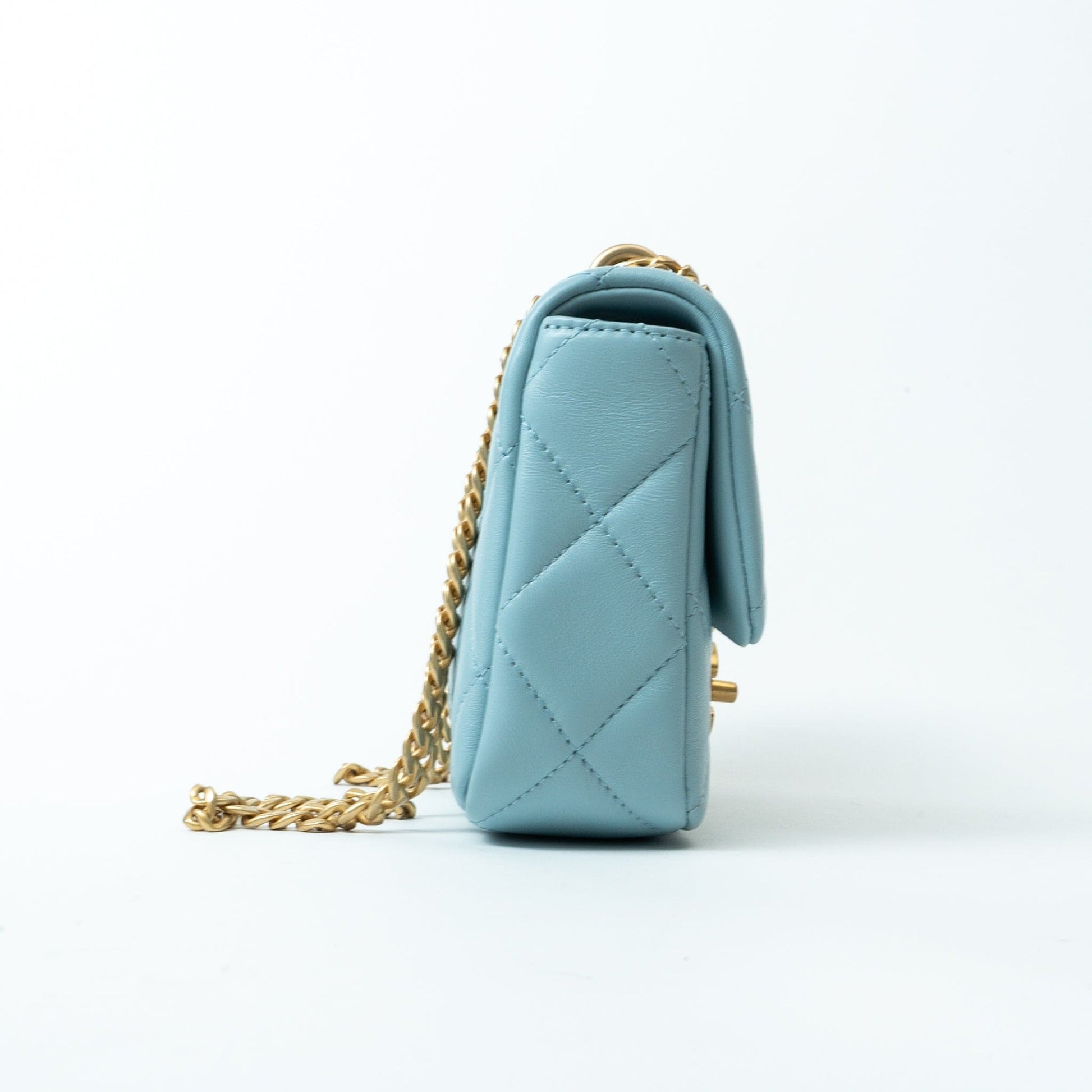 22P Light Blue Mini Square Enamel Lambskin pending CC AGHW
