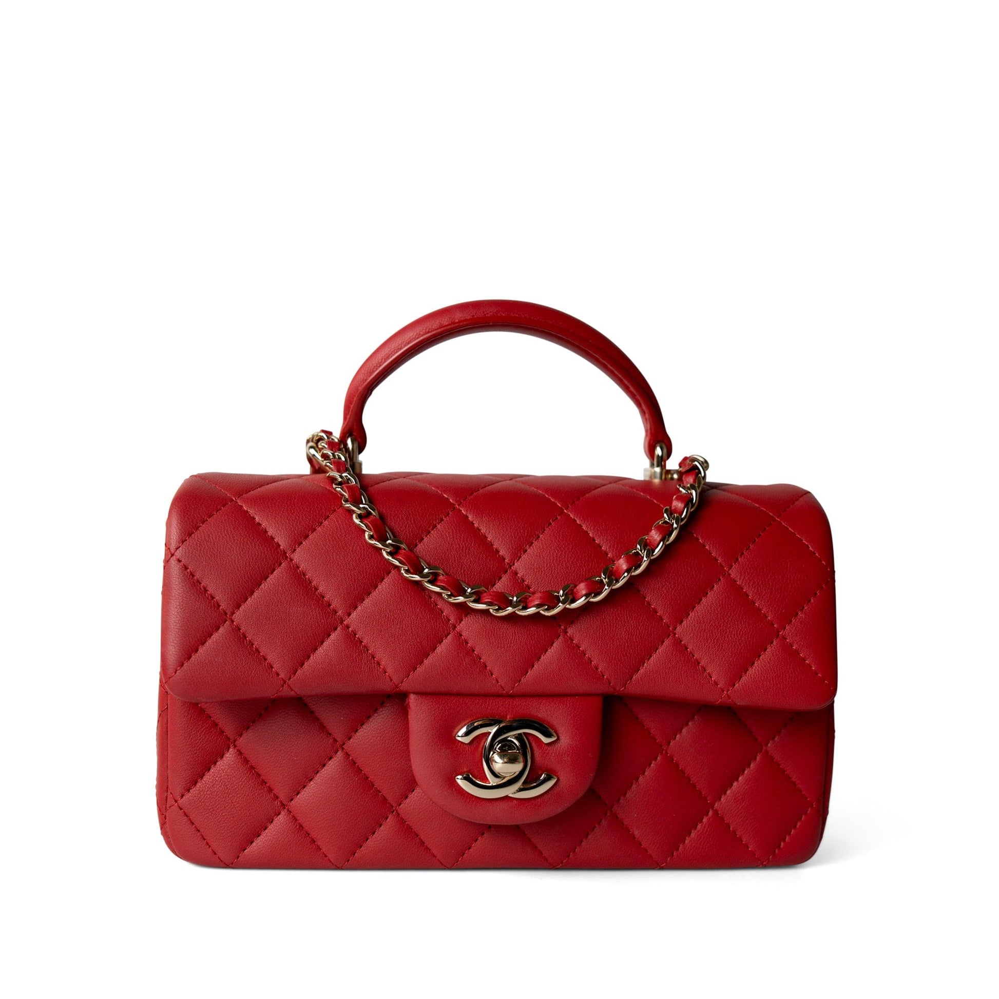 22P Red Lambskin Mini Top Handle Light Gold Hardware