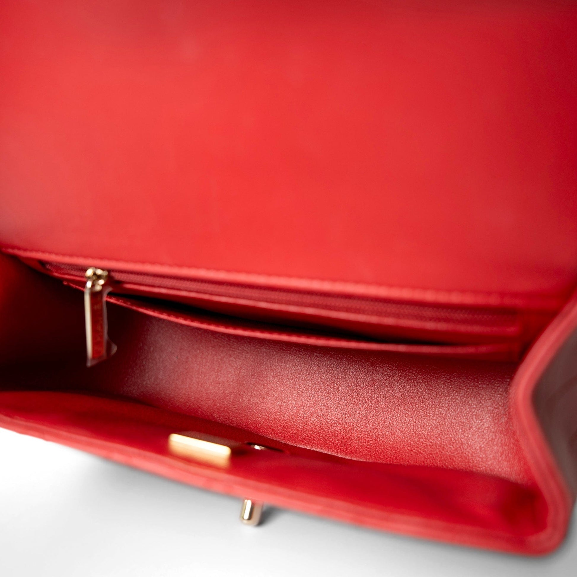 22P Red Lambskin Mini Top Handle Light Gold Hardware