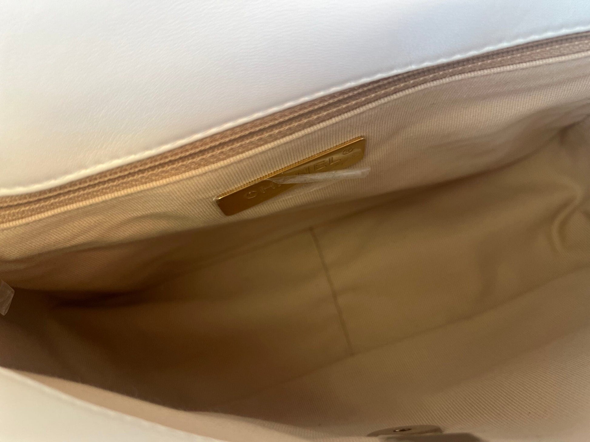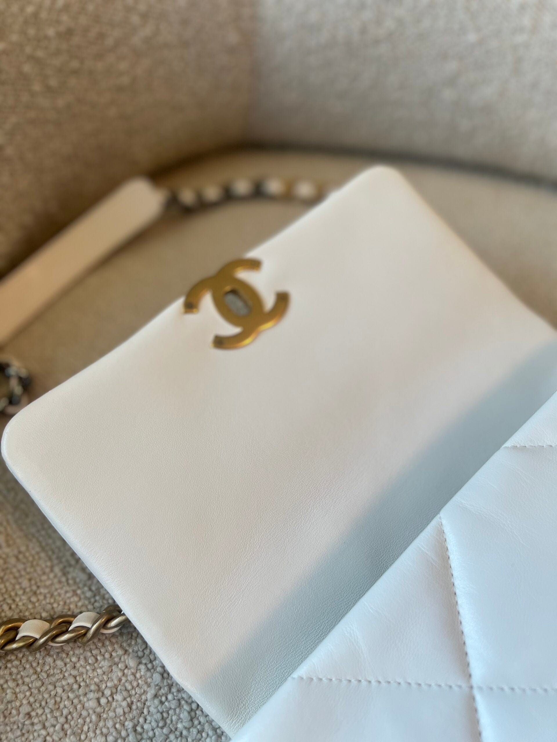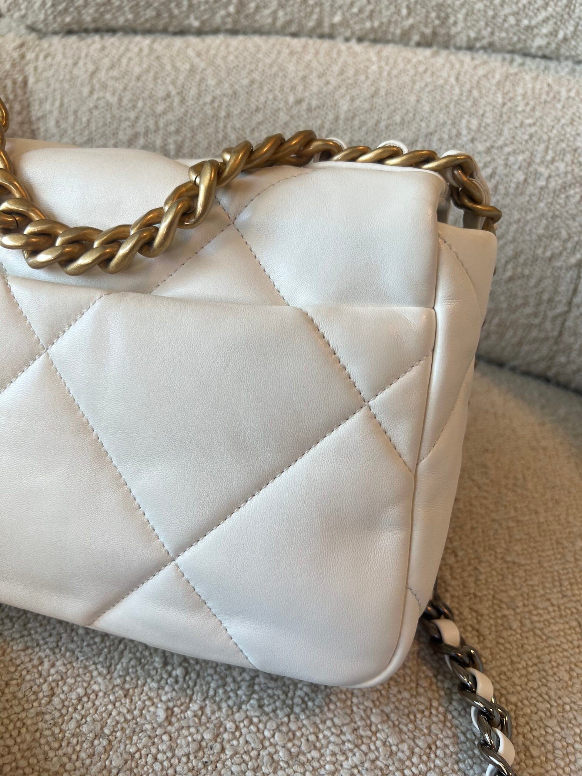 22P White Lambskin Quilted 19 Flap Small Mixed Hardware