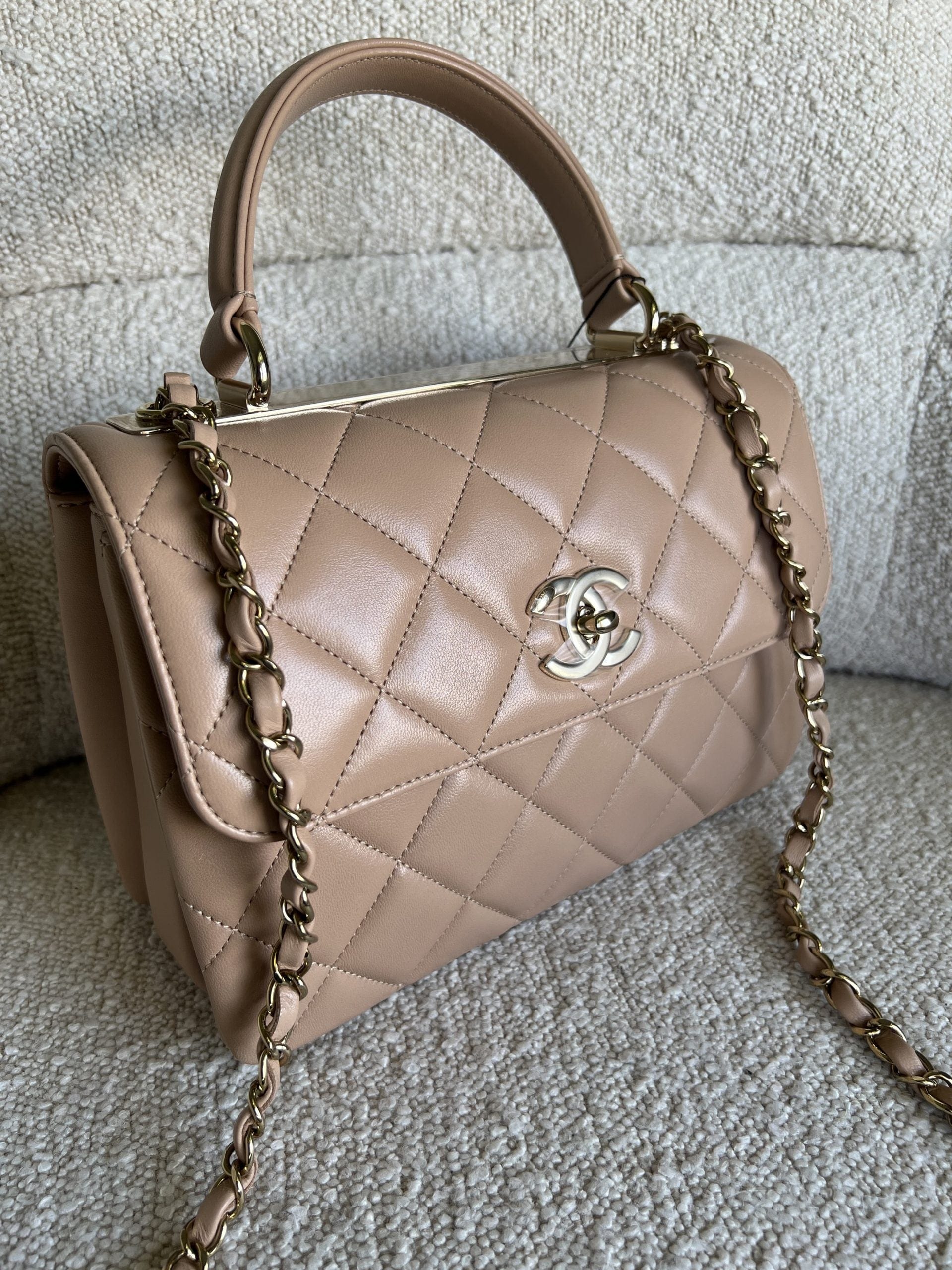 22S Beige Lambskin Quilted Trendy CC LGHW