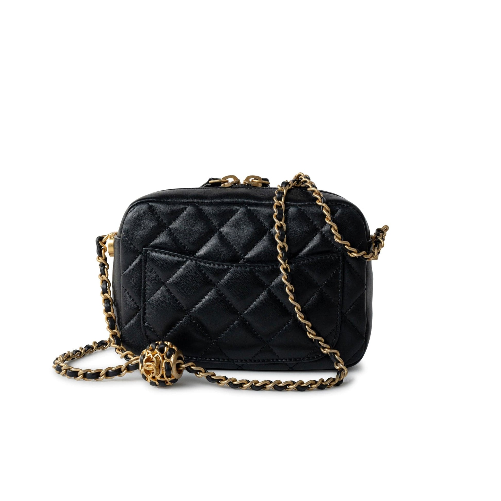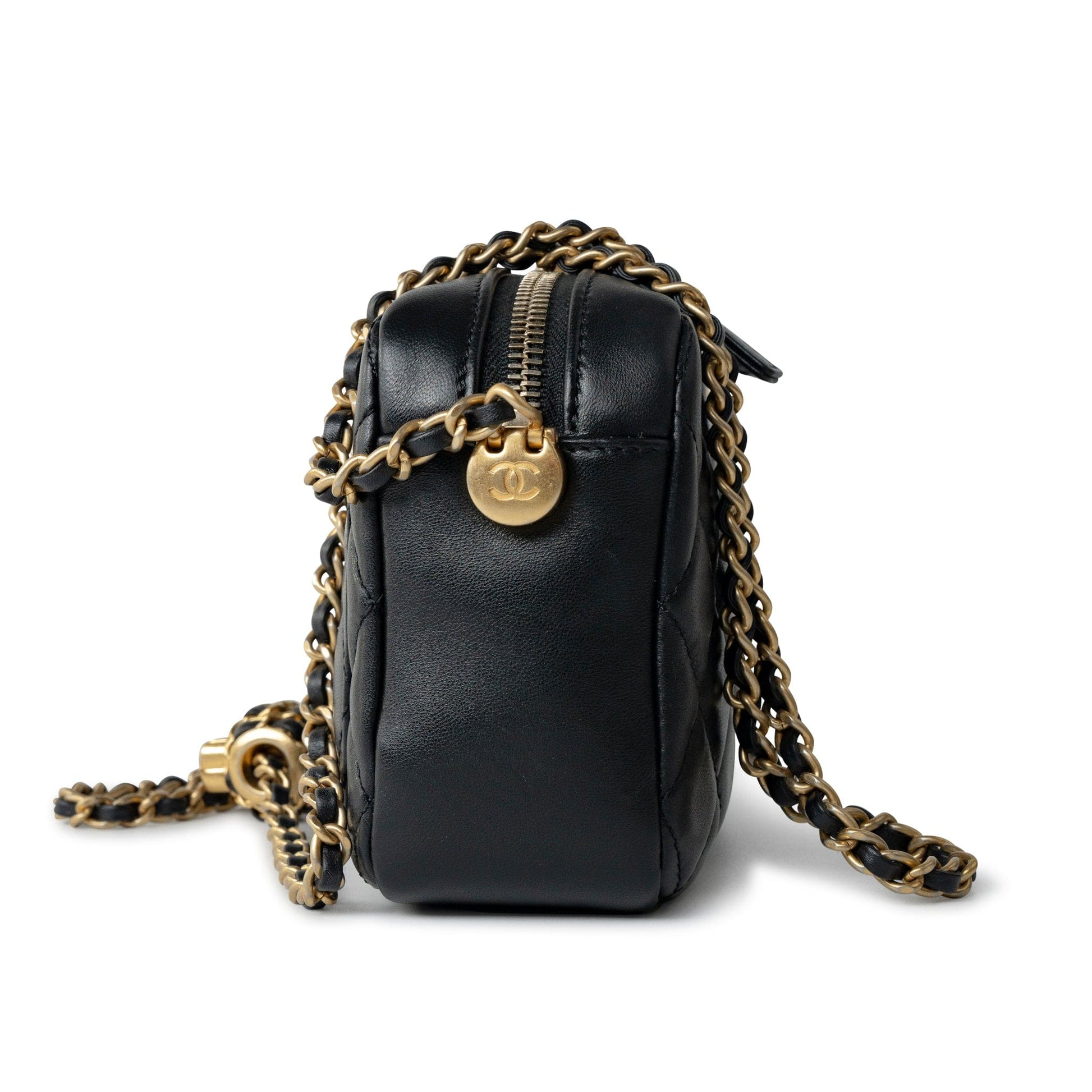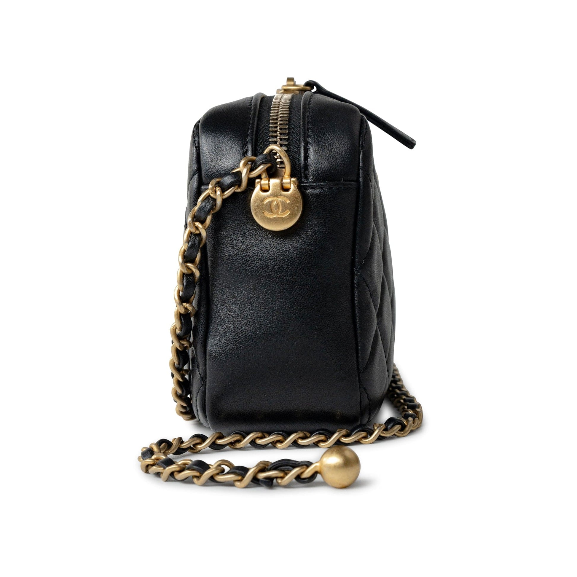22S Black Lambskin Quilted Camera Case Aged Gold Hardware / Gold Interior