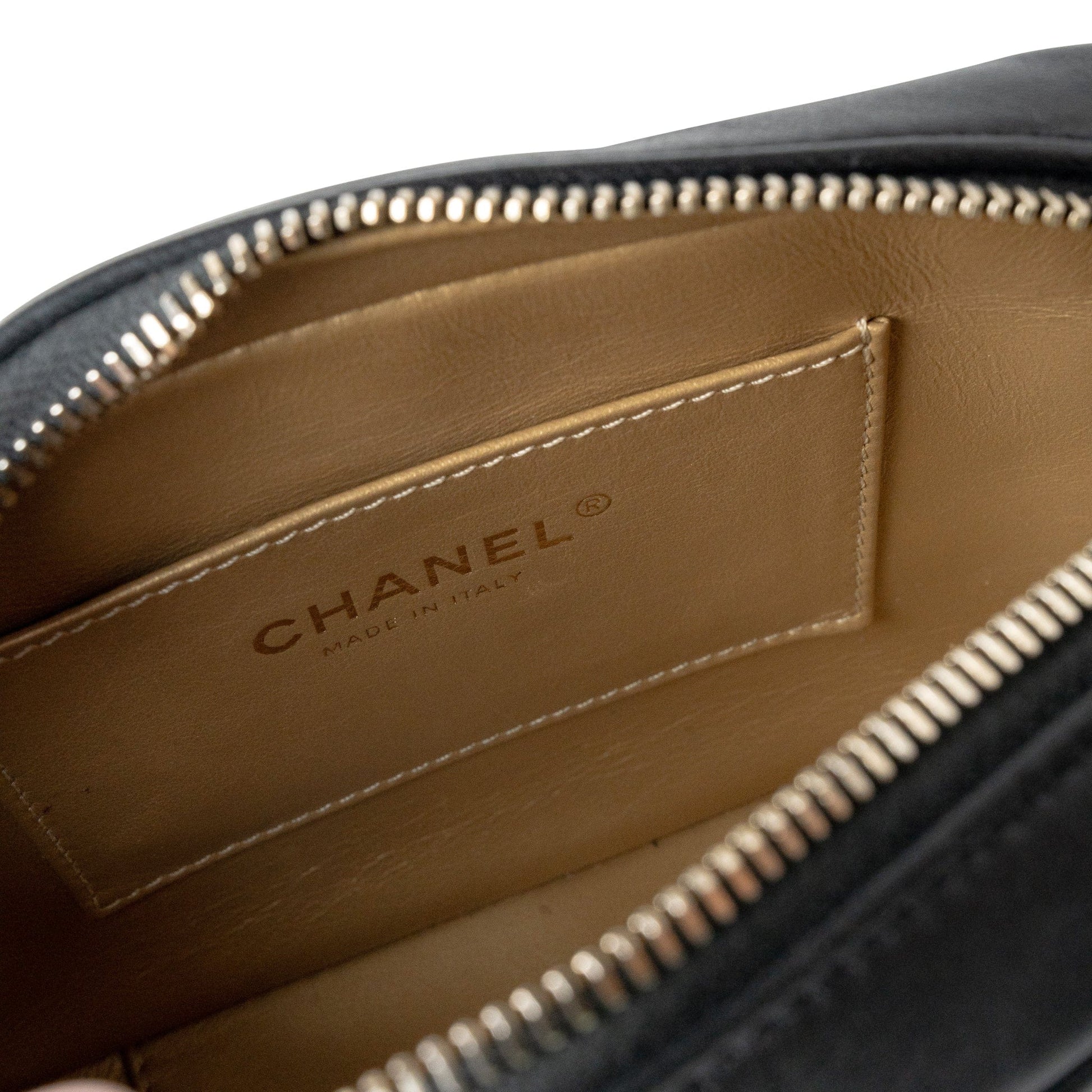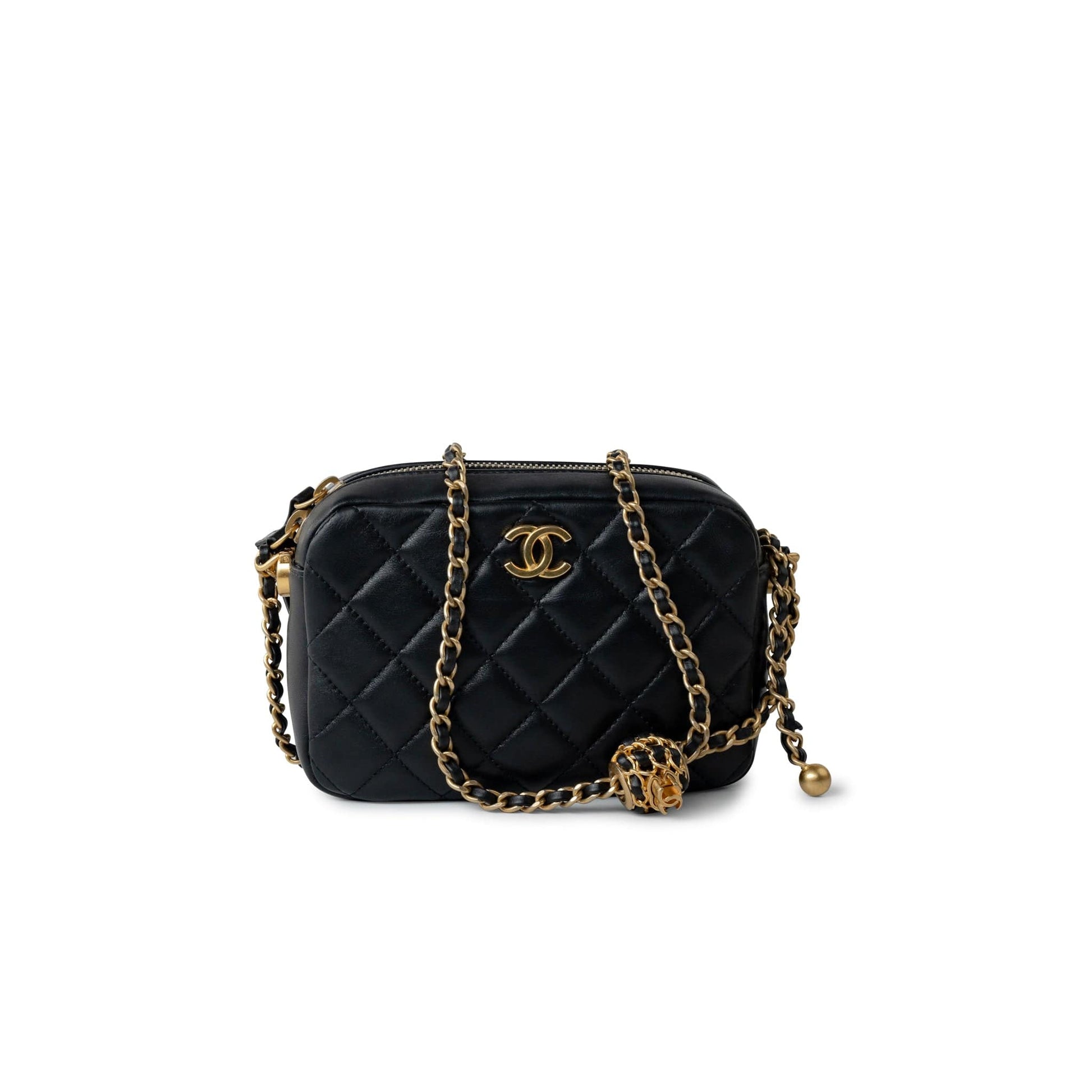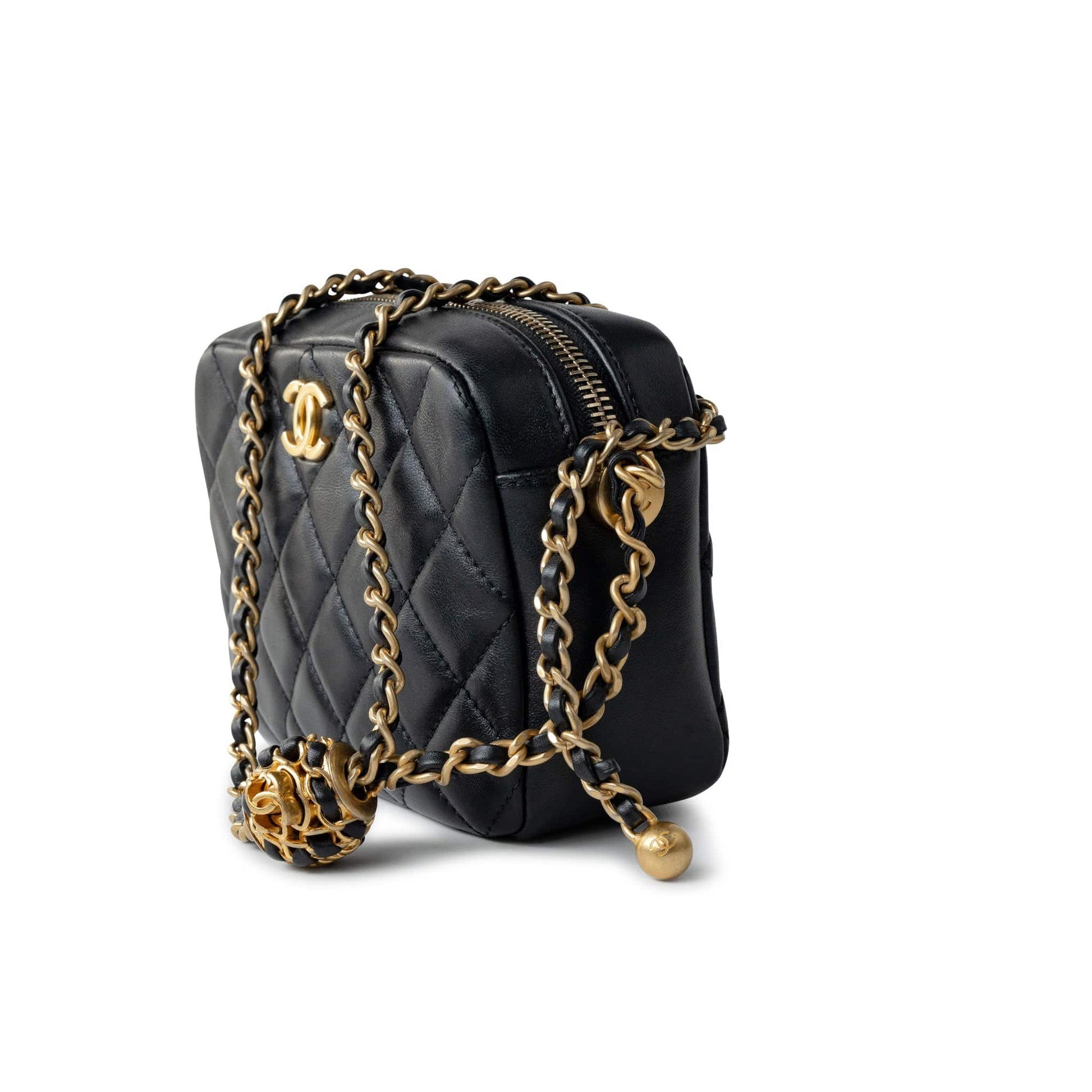 22S Black Lambskin Quilted Camera Case Aged Gold Hardware / Gold Interior