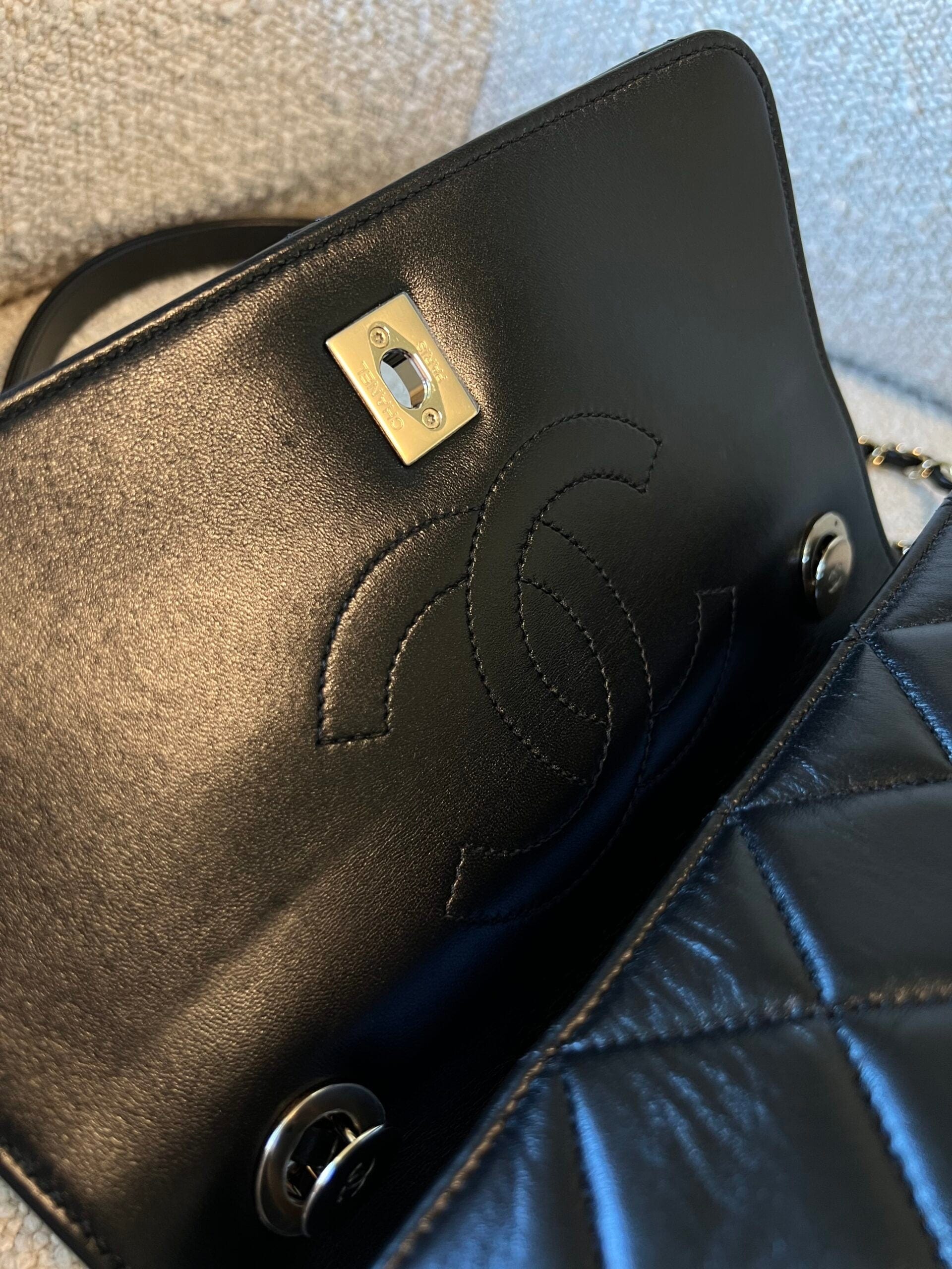 22S Black Lambskin Quilted Trendy CC Small LGHW